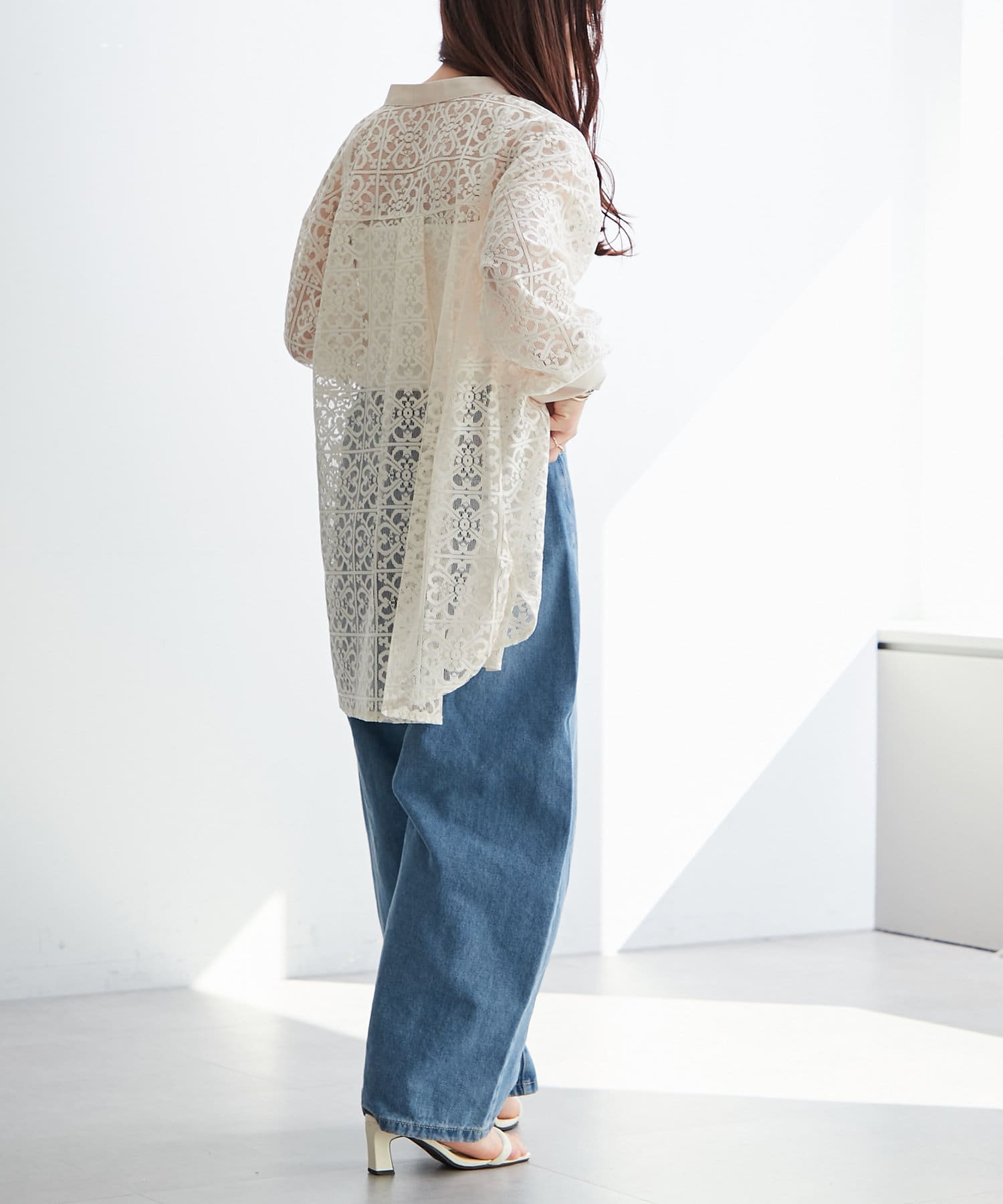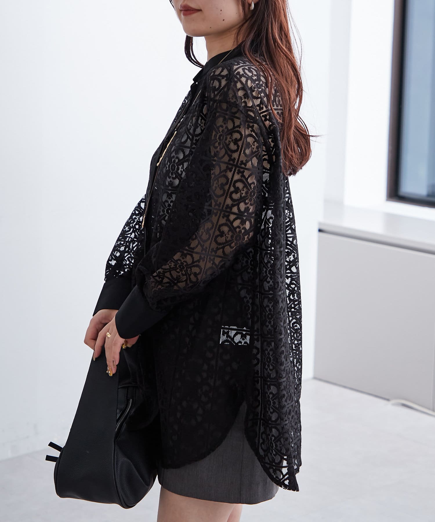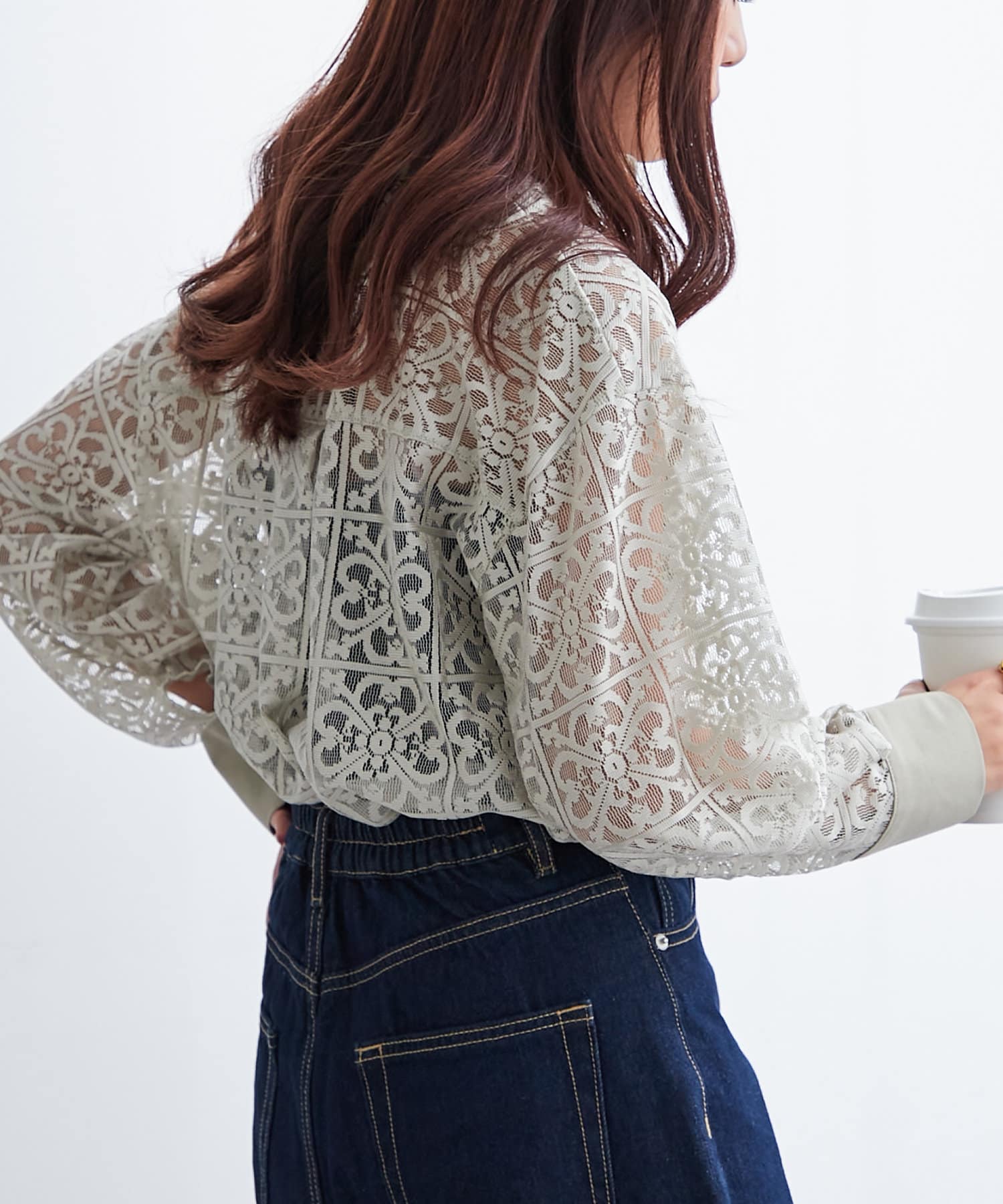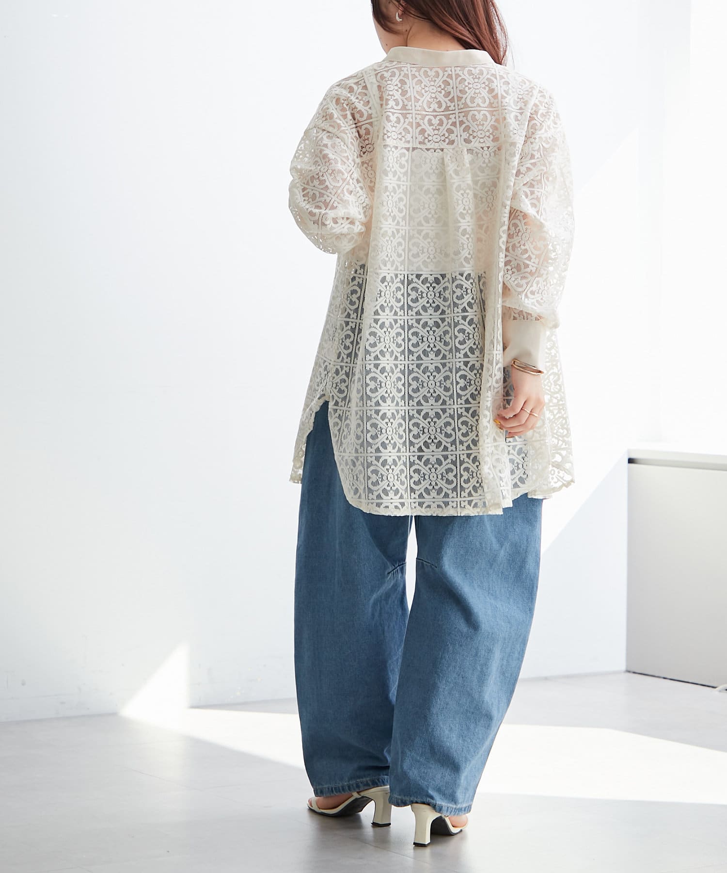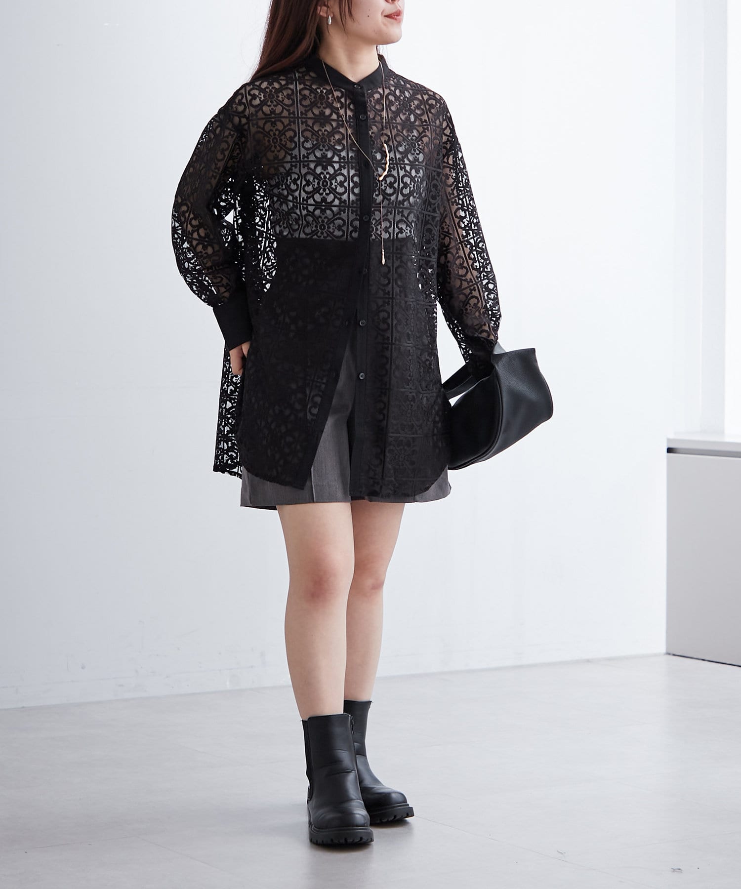 スタンドカラーレースシャツ