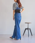 ・タイトなサイズ感のTシャツと合わせてレディライクな着こなし〇