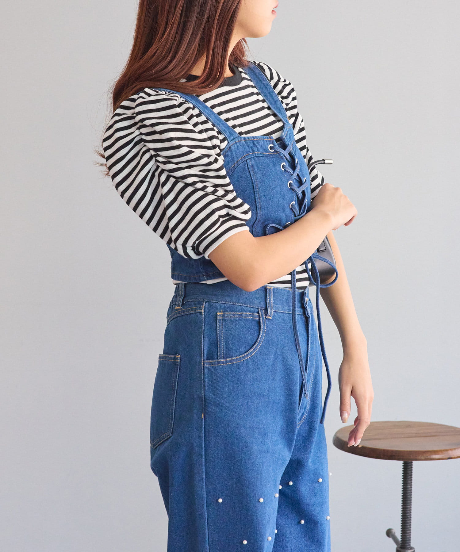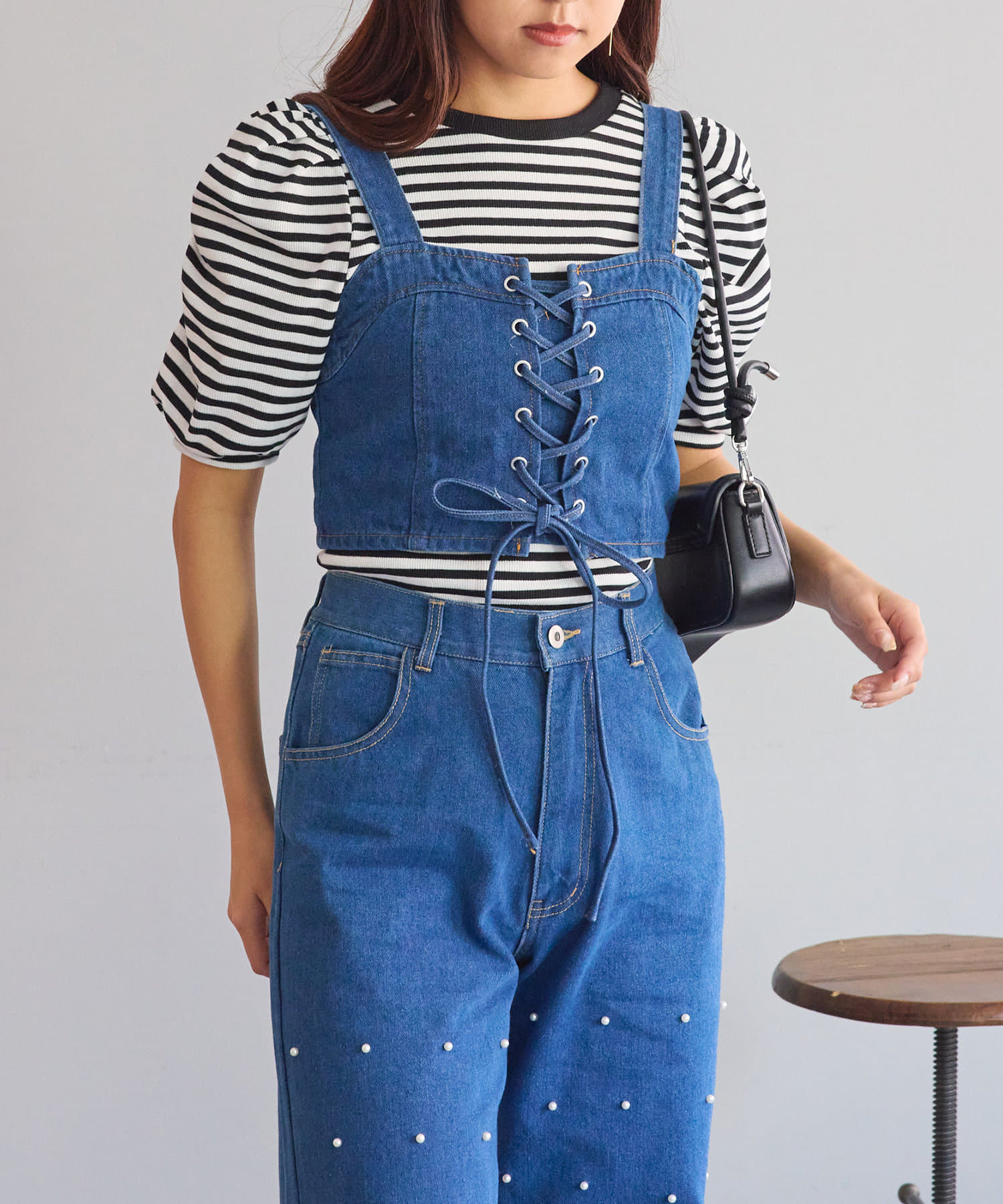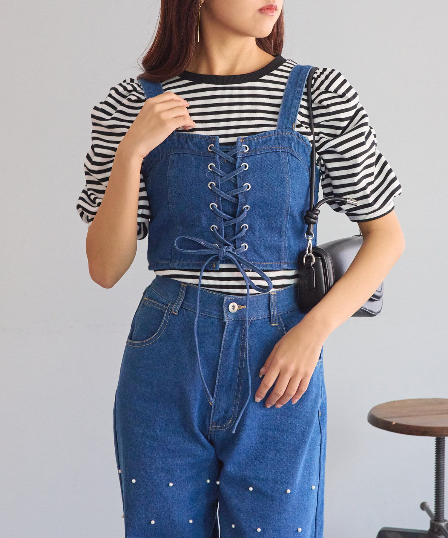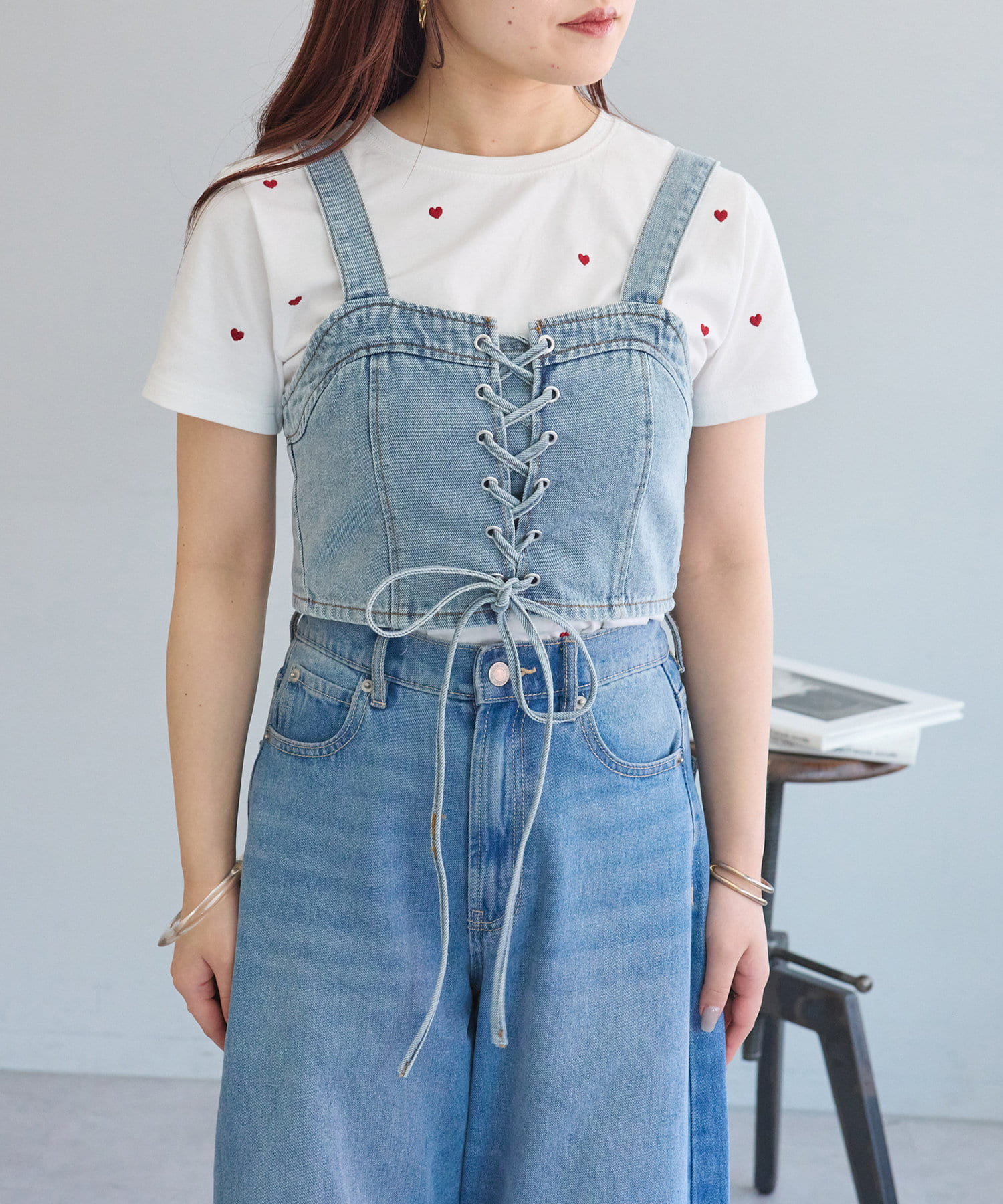 ・レースアップがコーデの主役になるデニムビスチェ