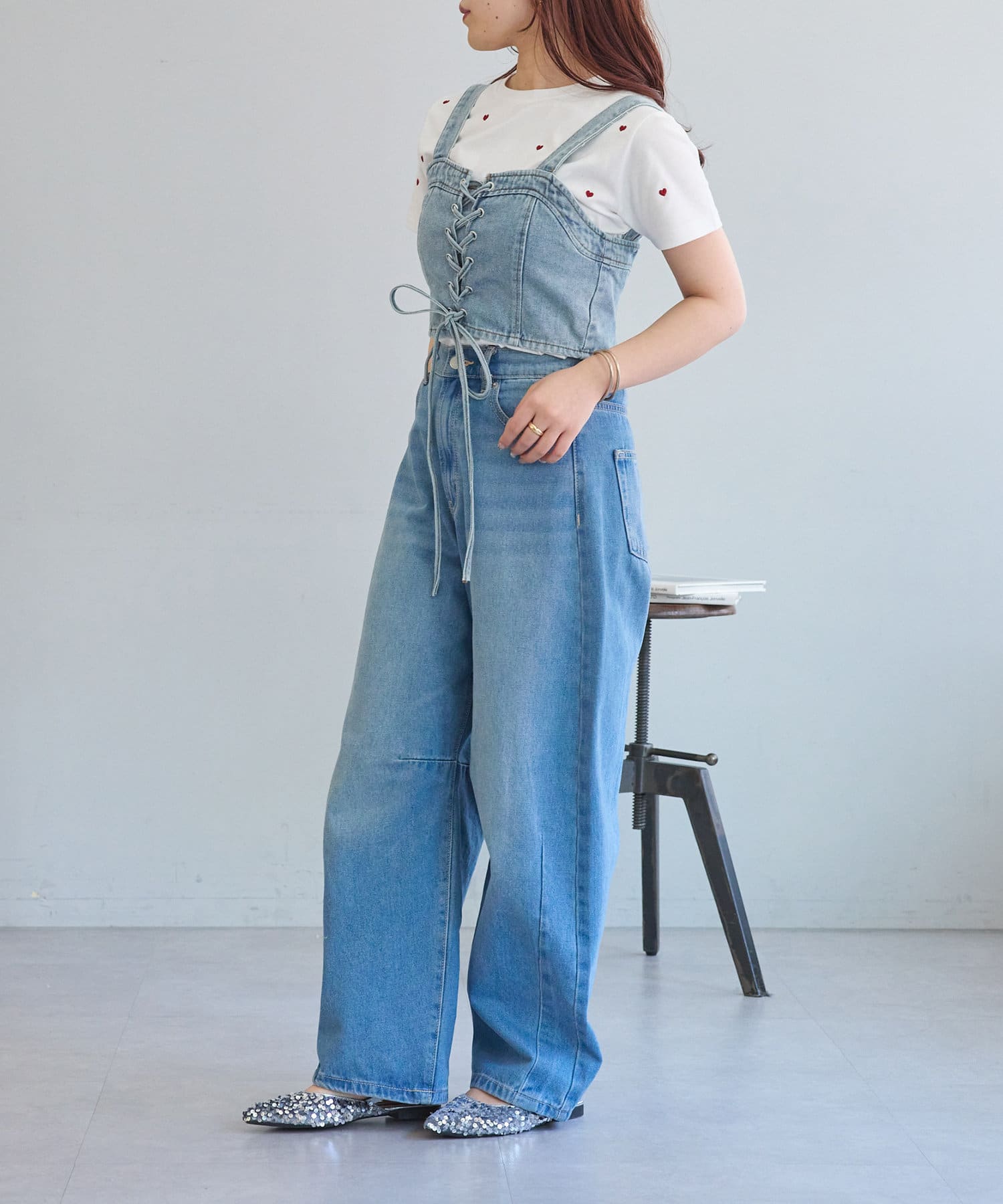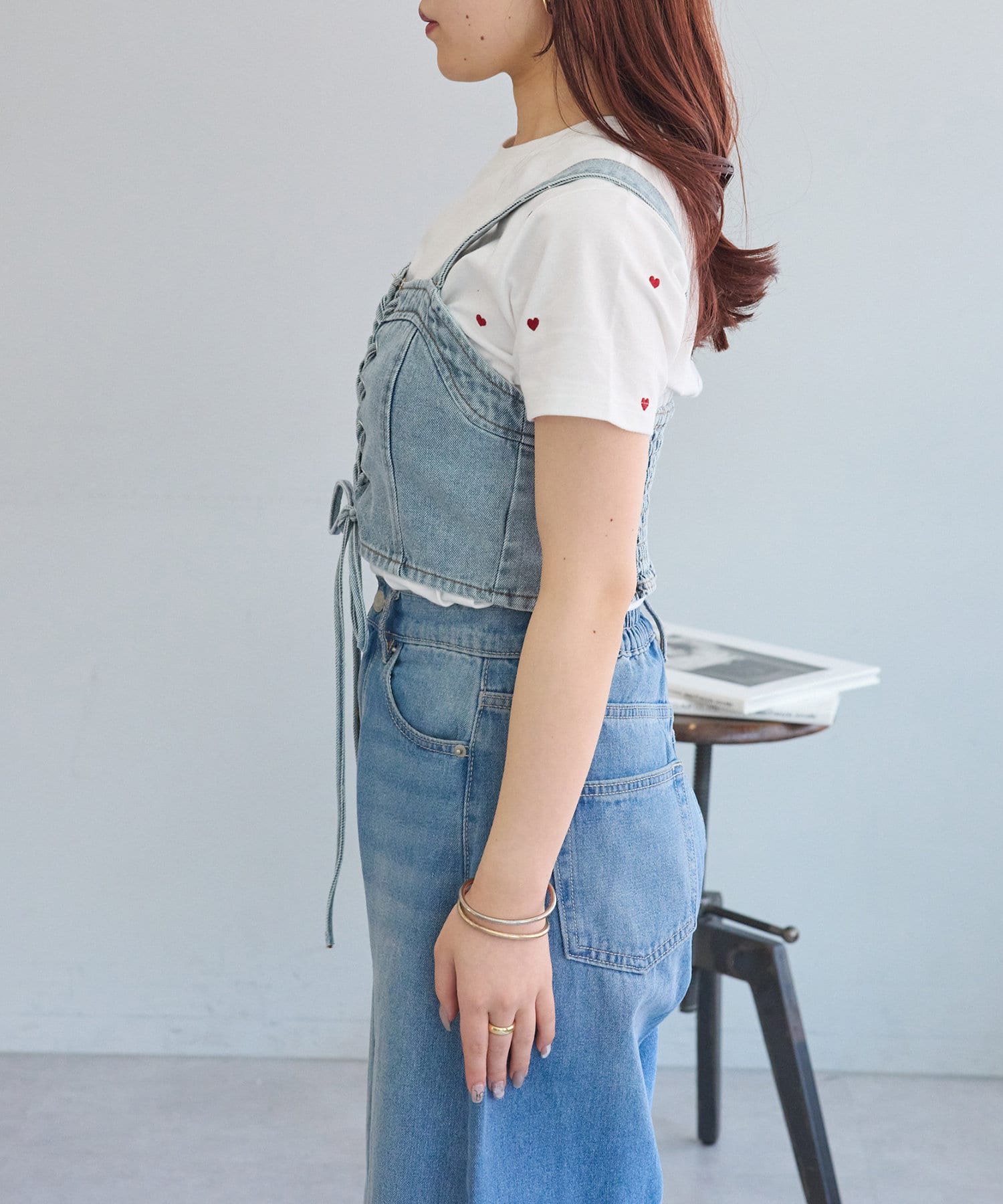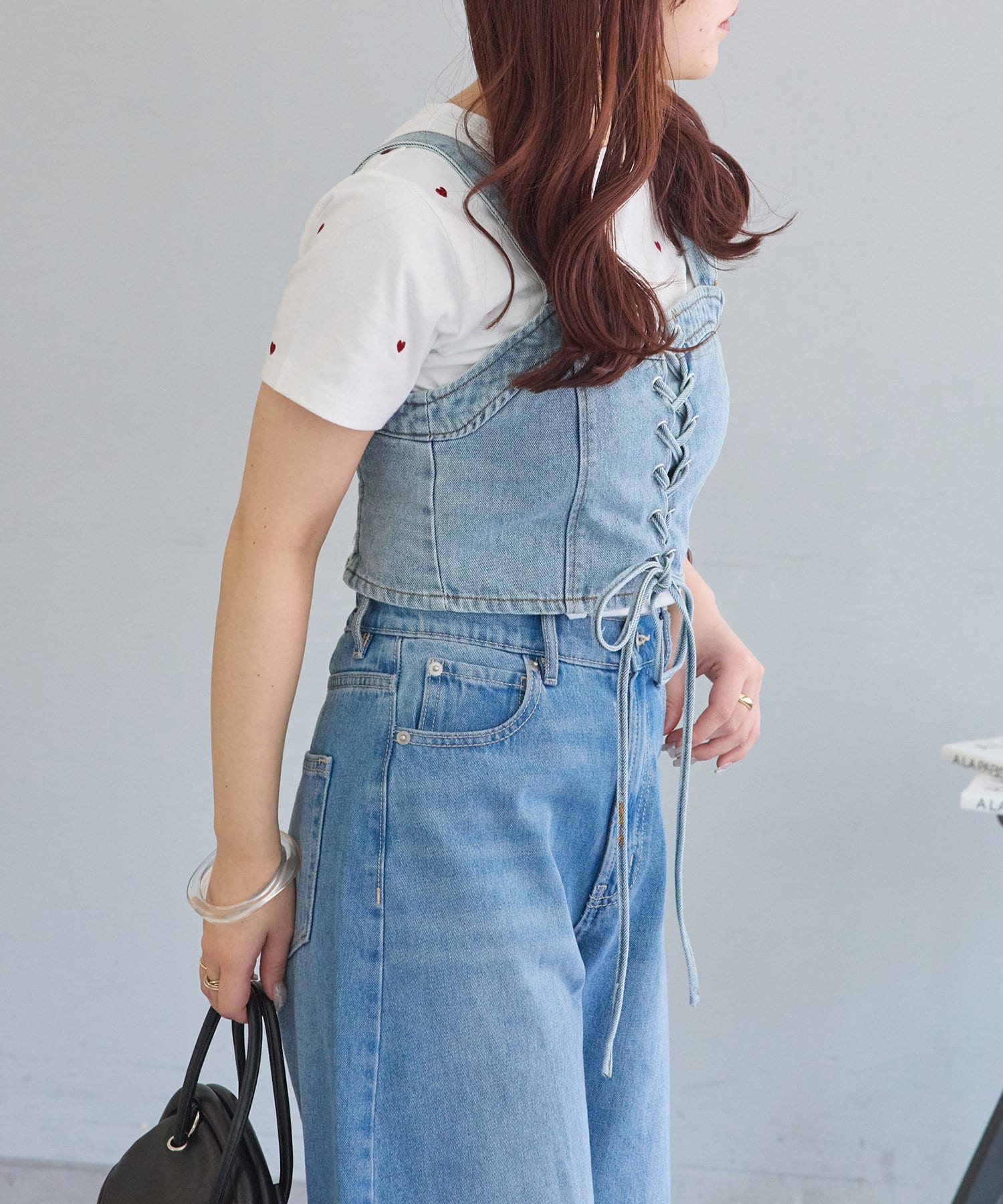 ・レースアップがコーデの主役になるデニムビスチェ