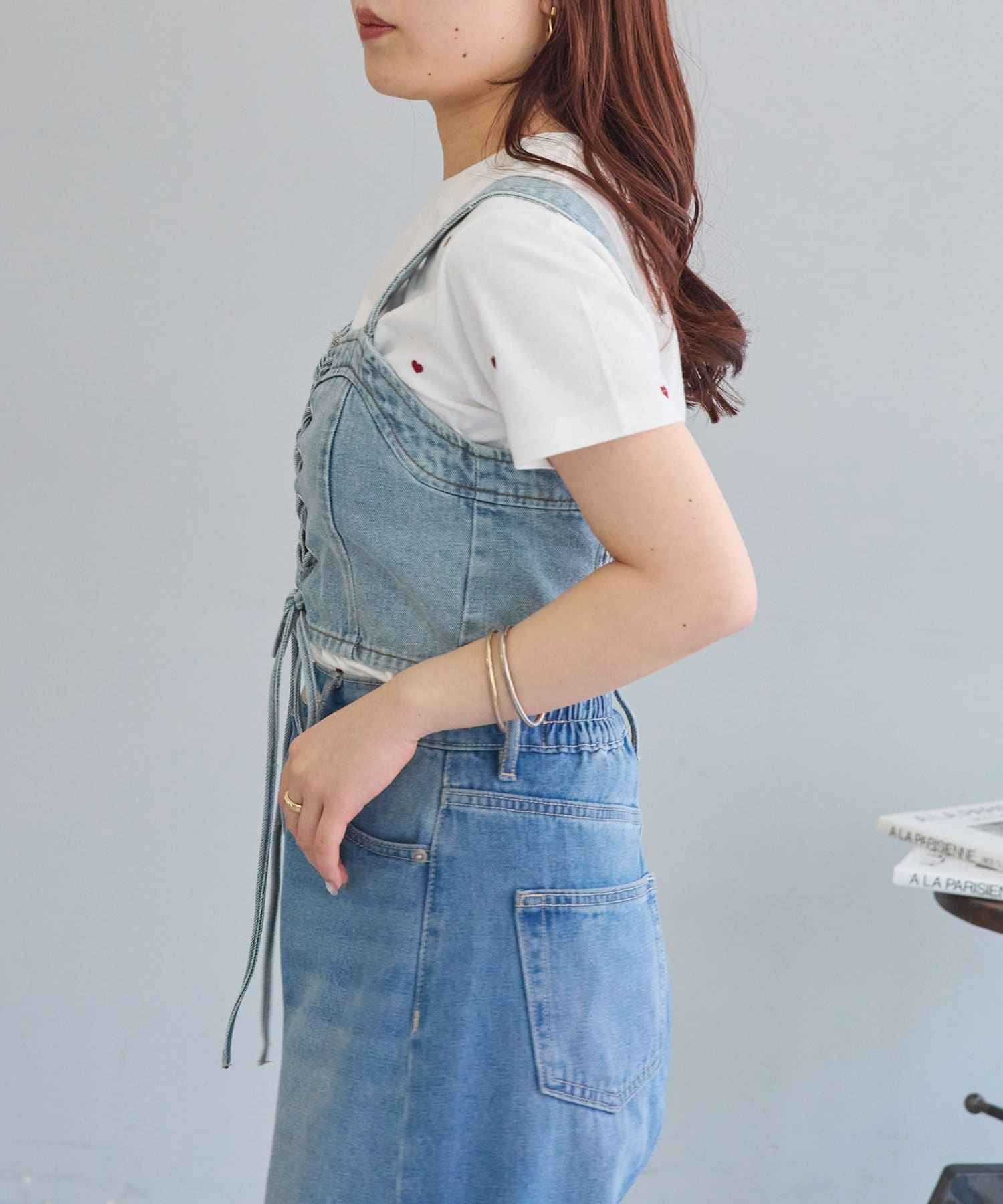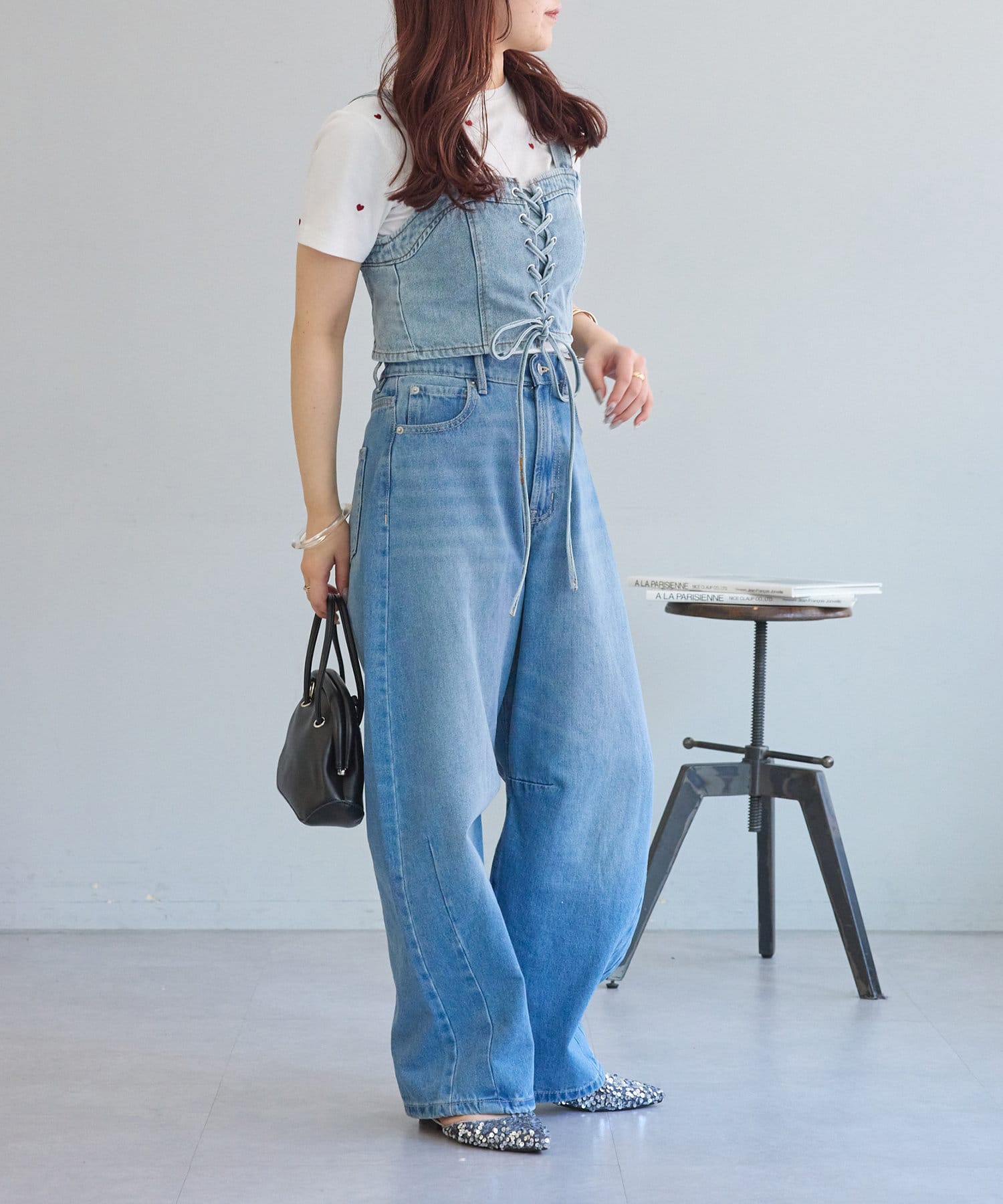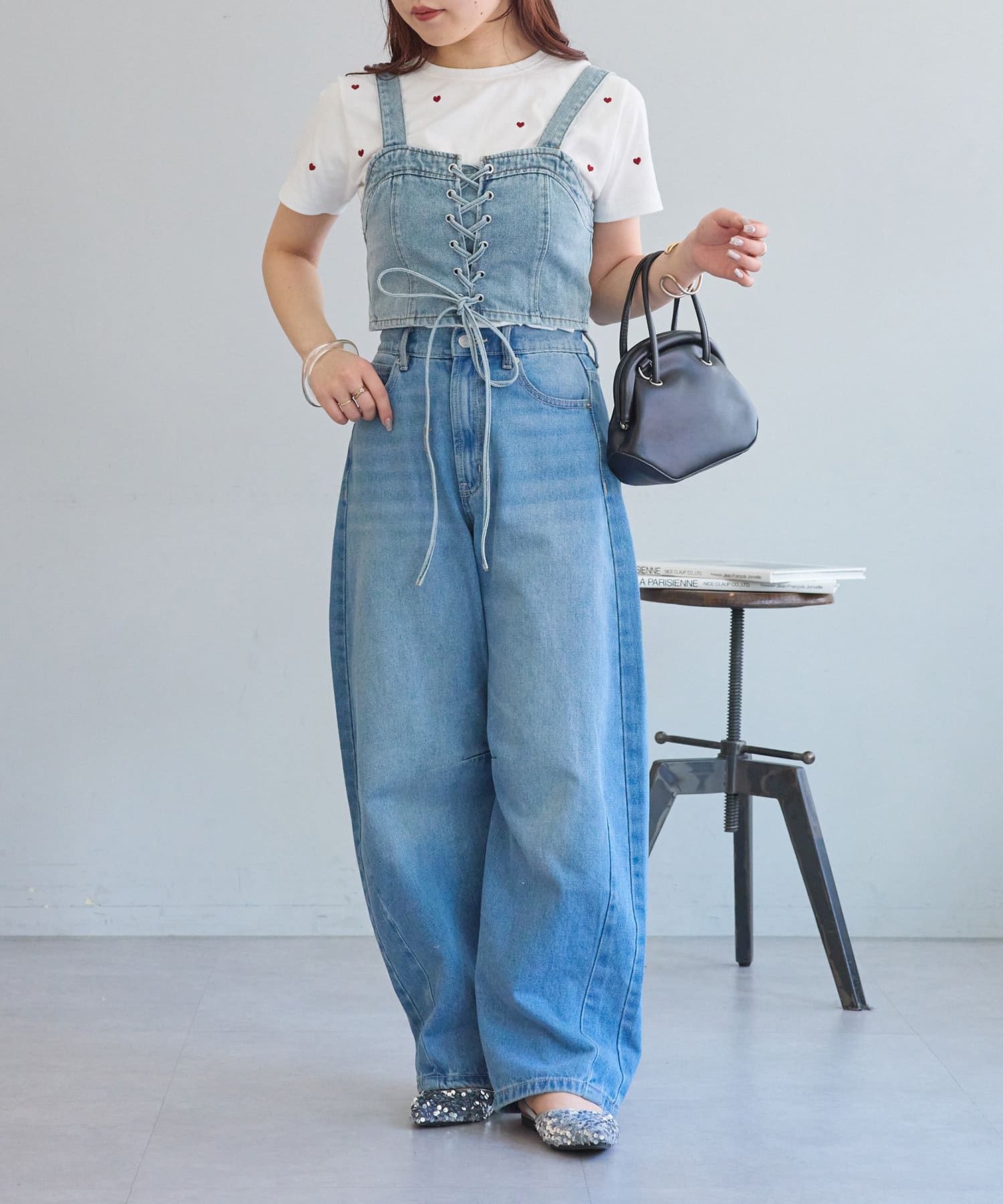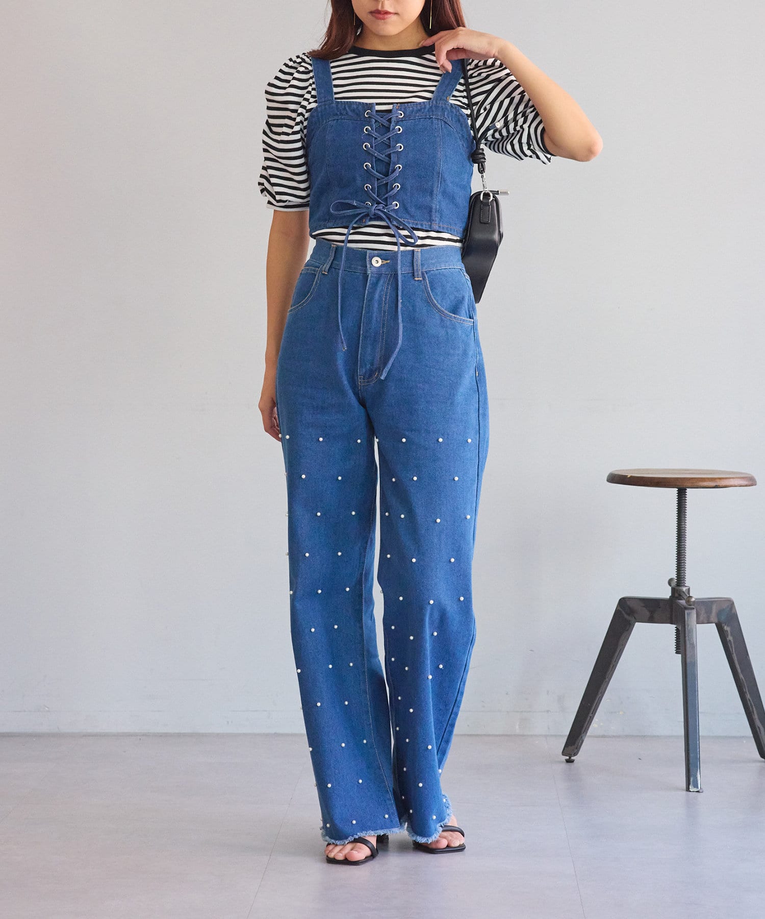 ・レースアップがコーデの主役になるデニムビスチェ