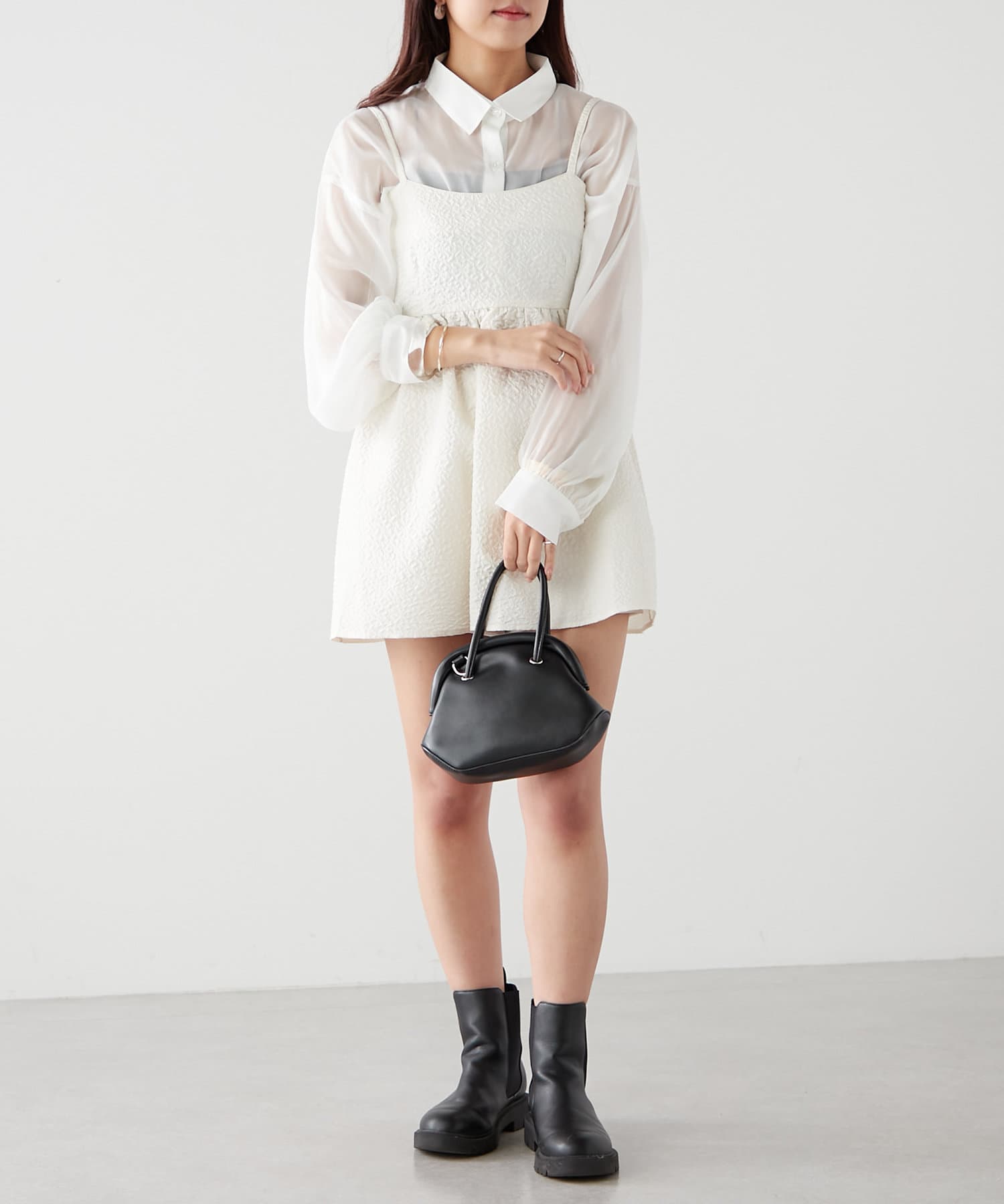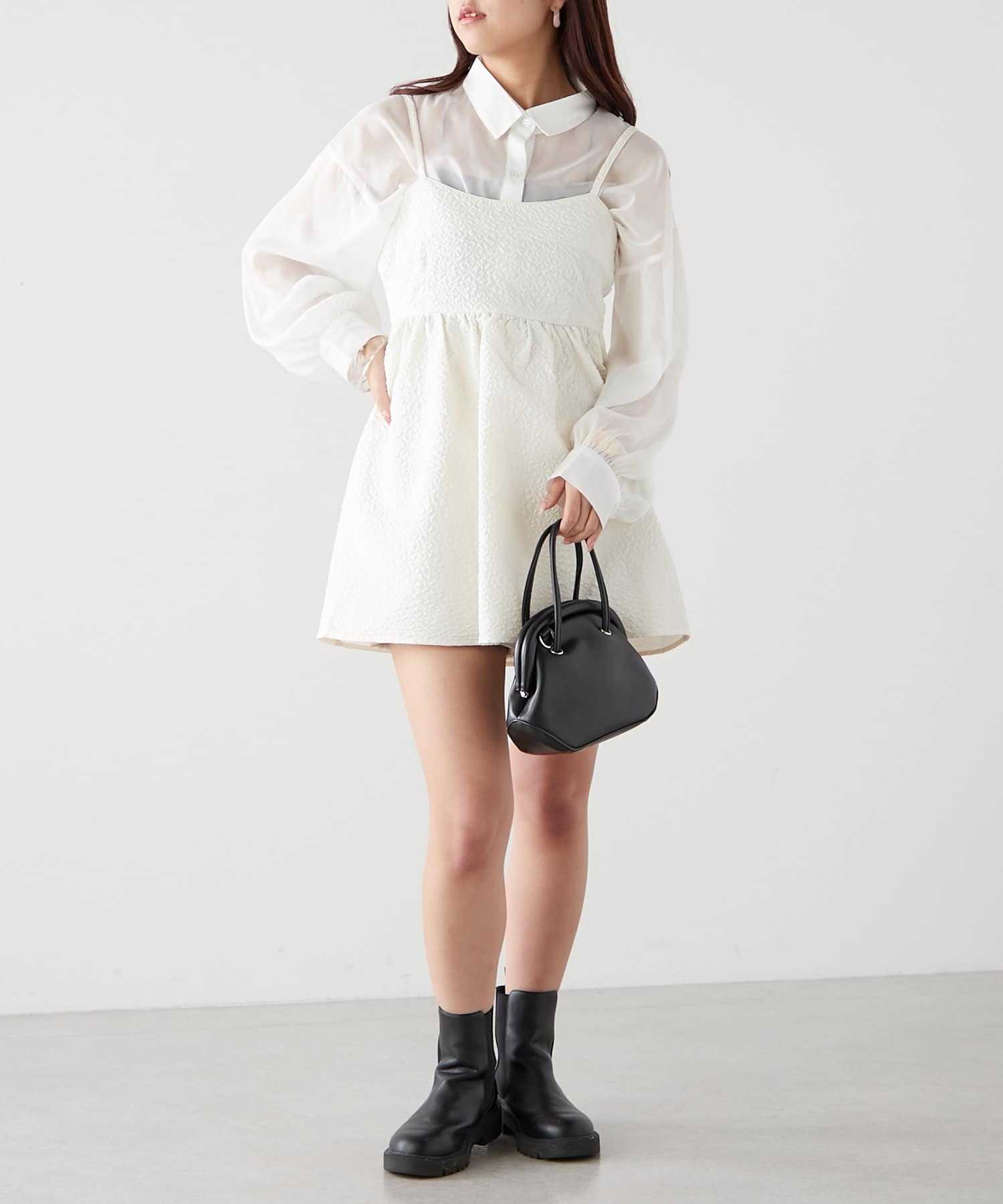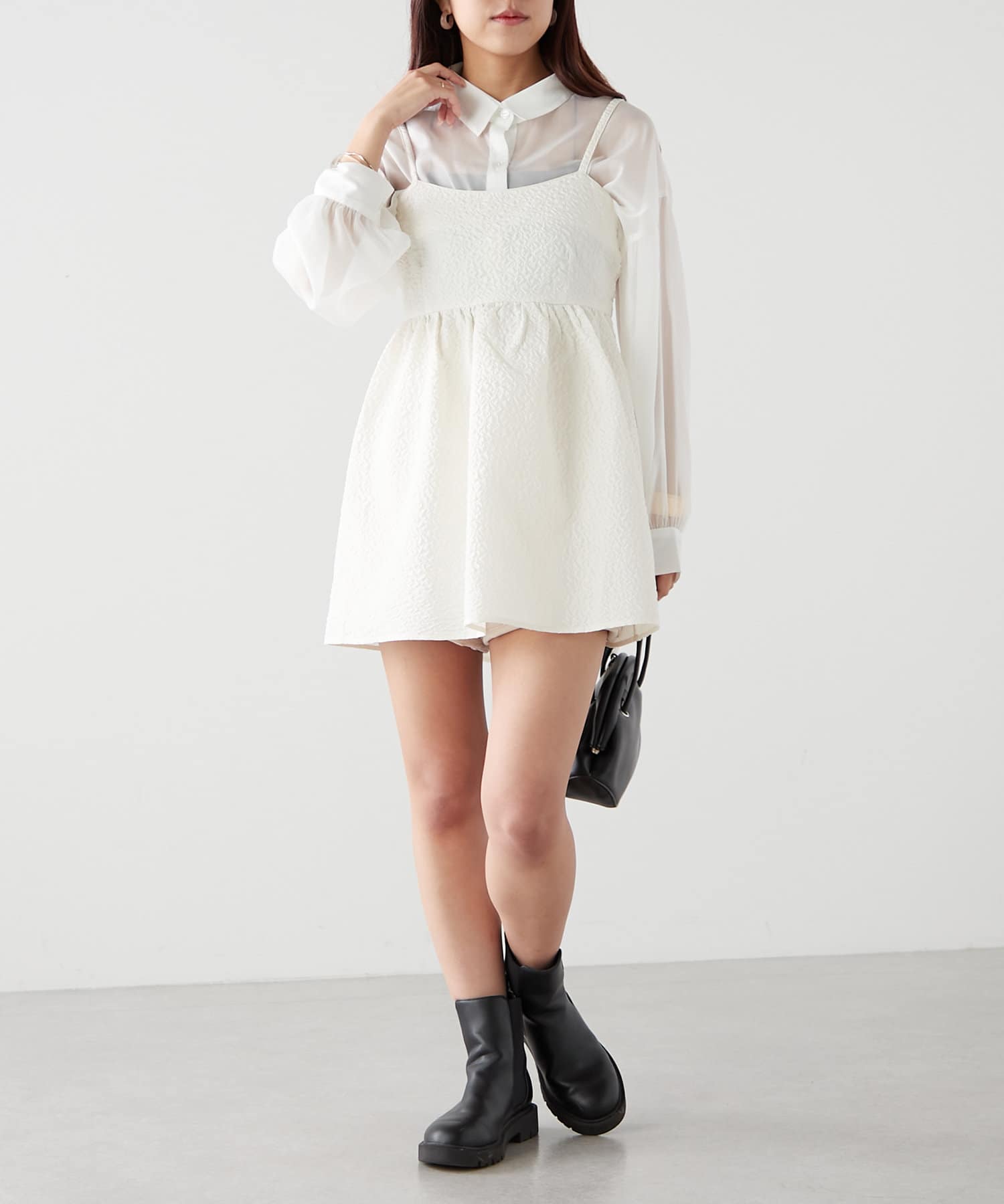 ・シアートップスやブラウスの上からレイヤードした、甘めコーデにもぴったり◎