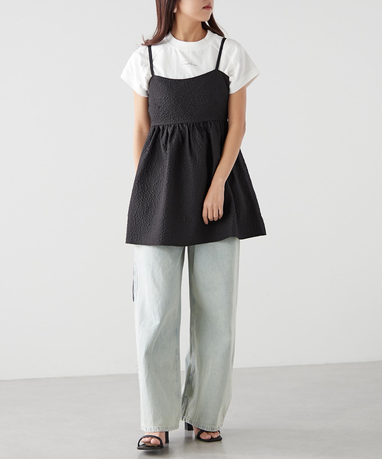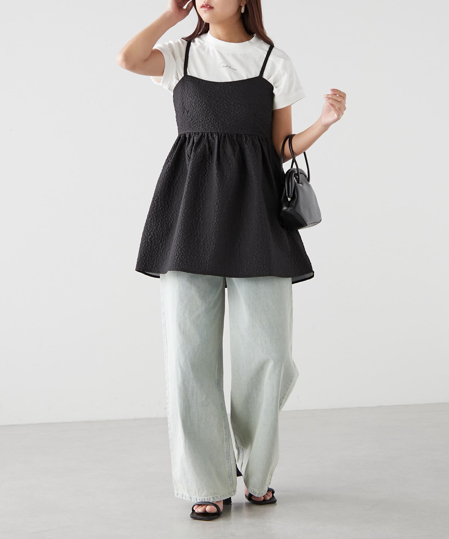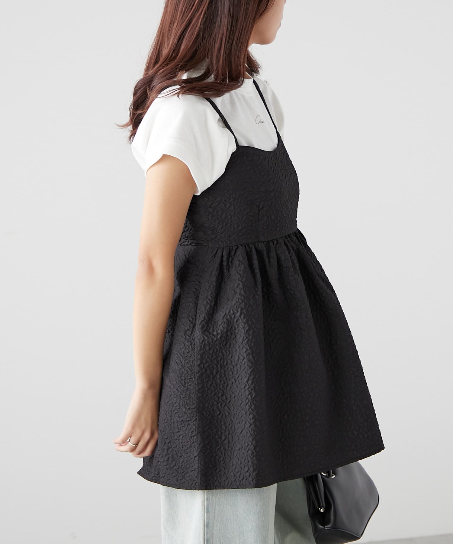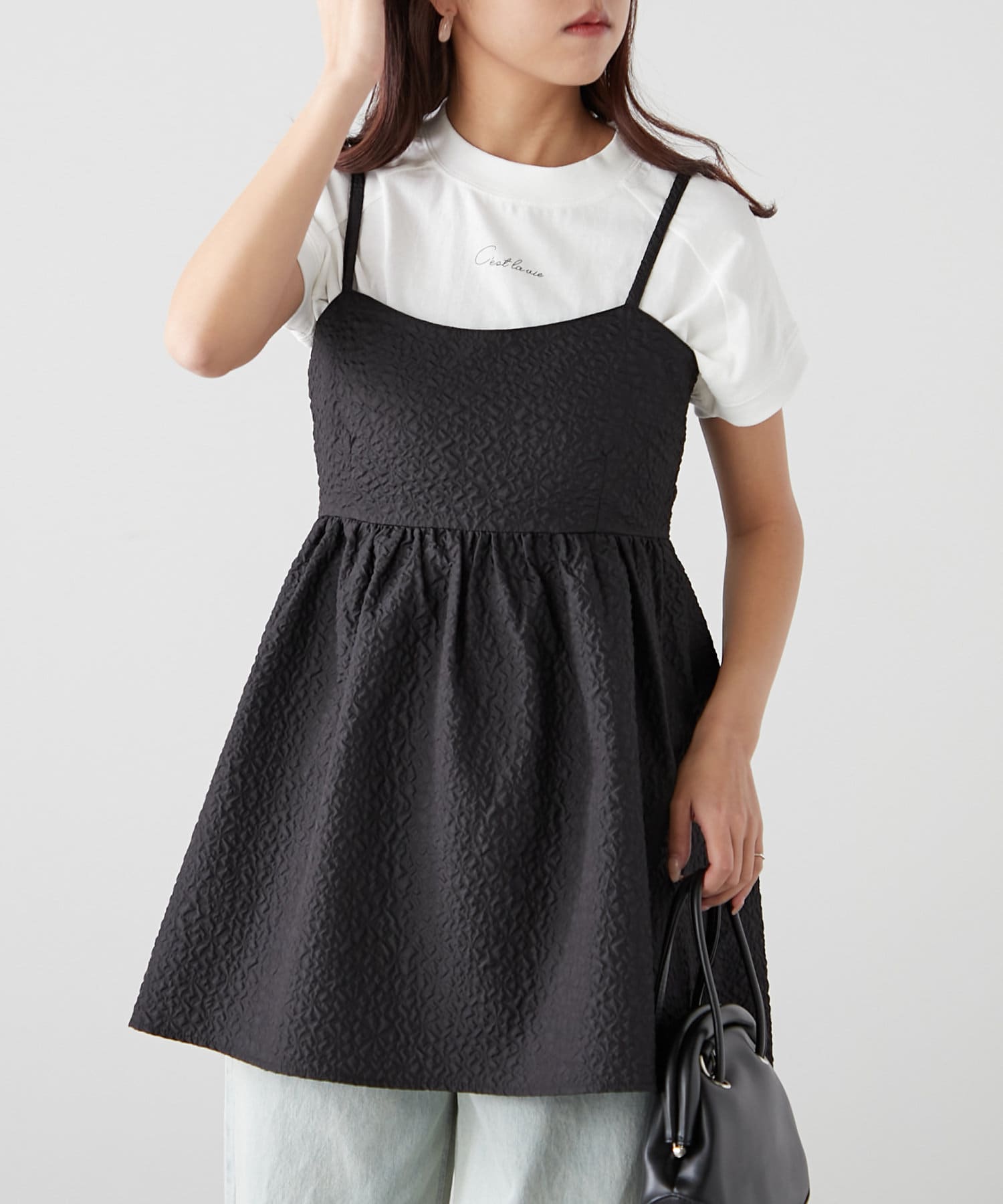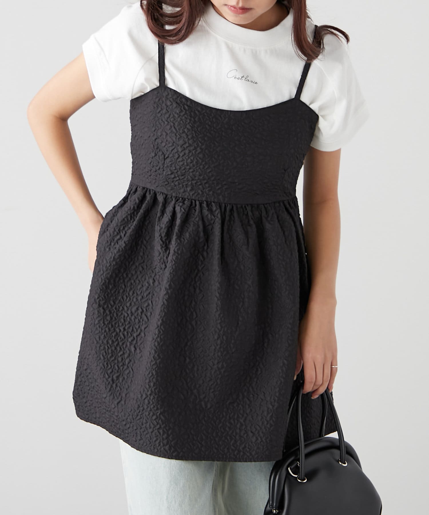 ・凹凸のあるポコポコ素材とバックリボンデザインが大人可愛いキャミチュニック。