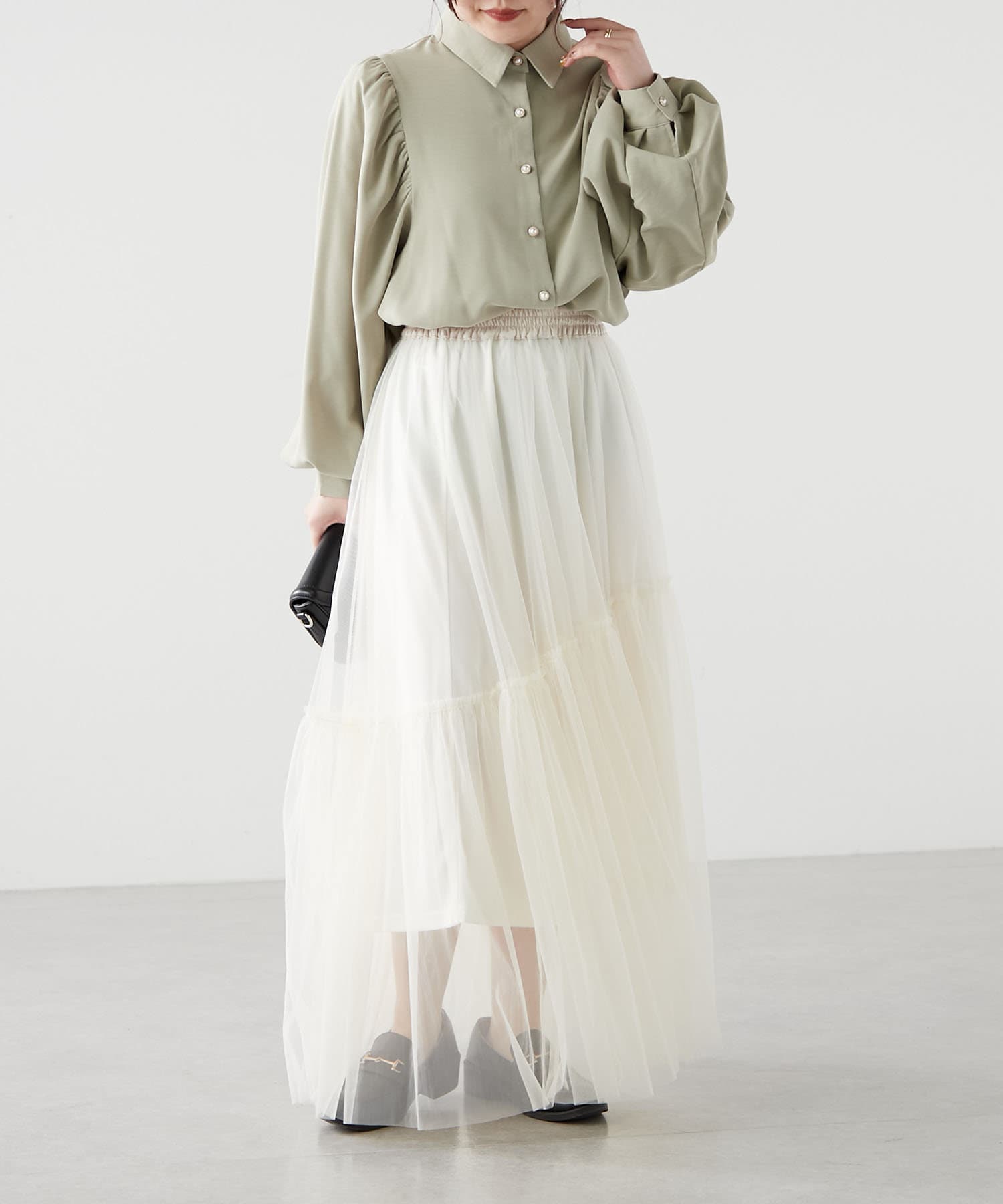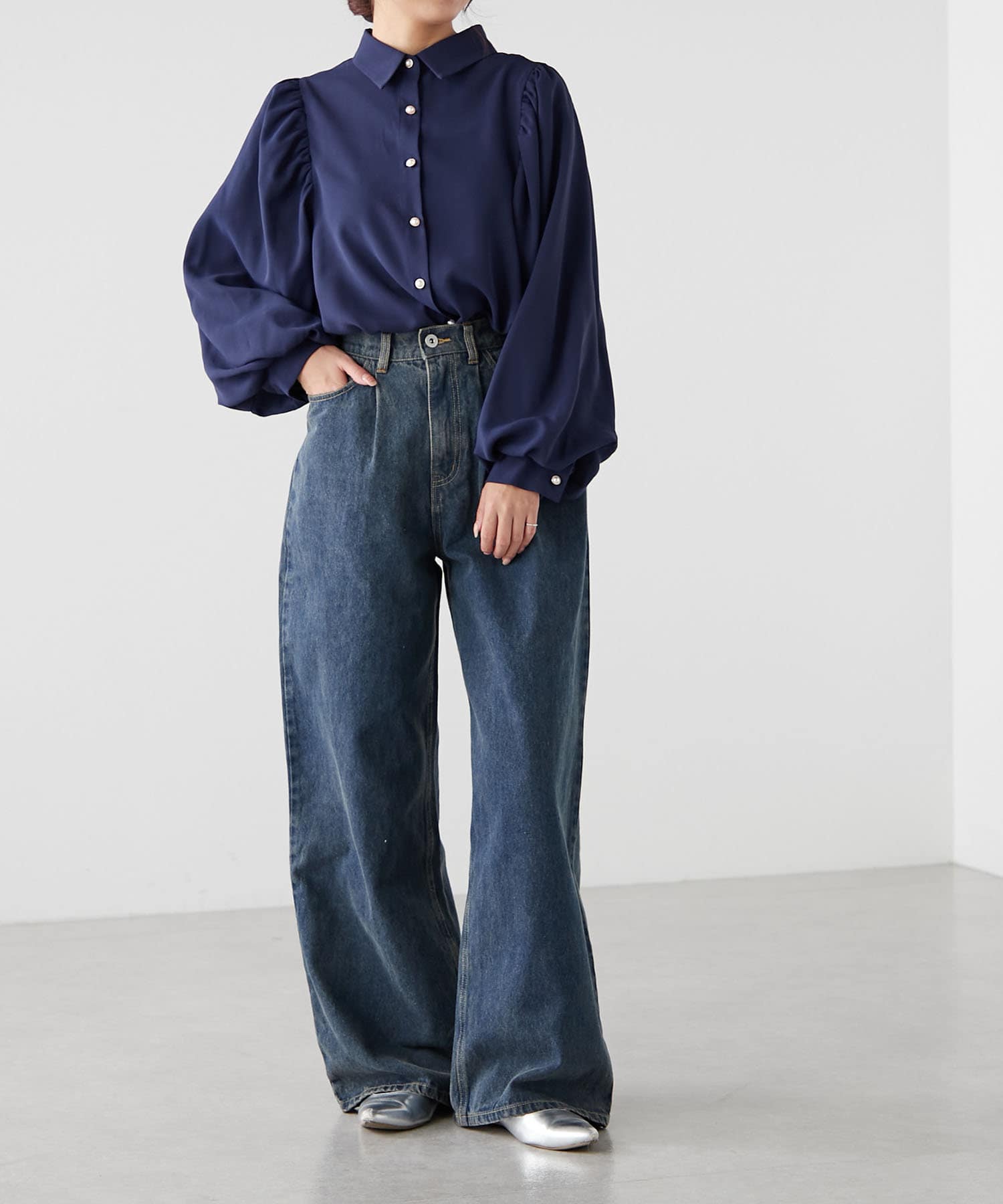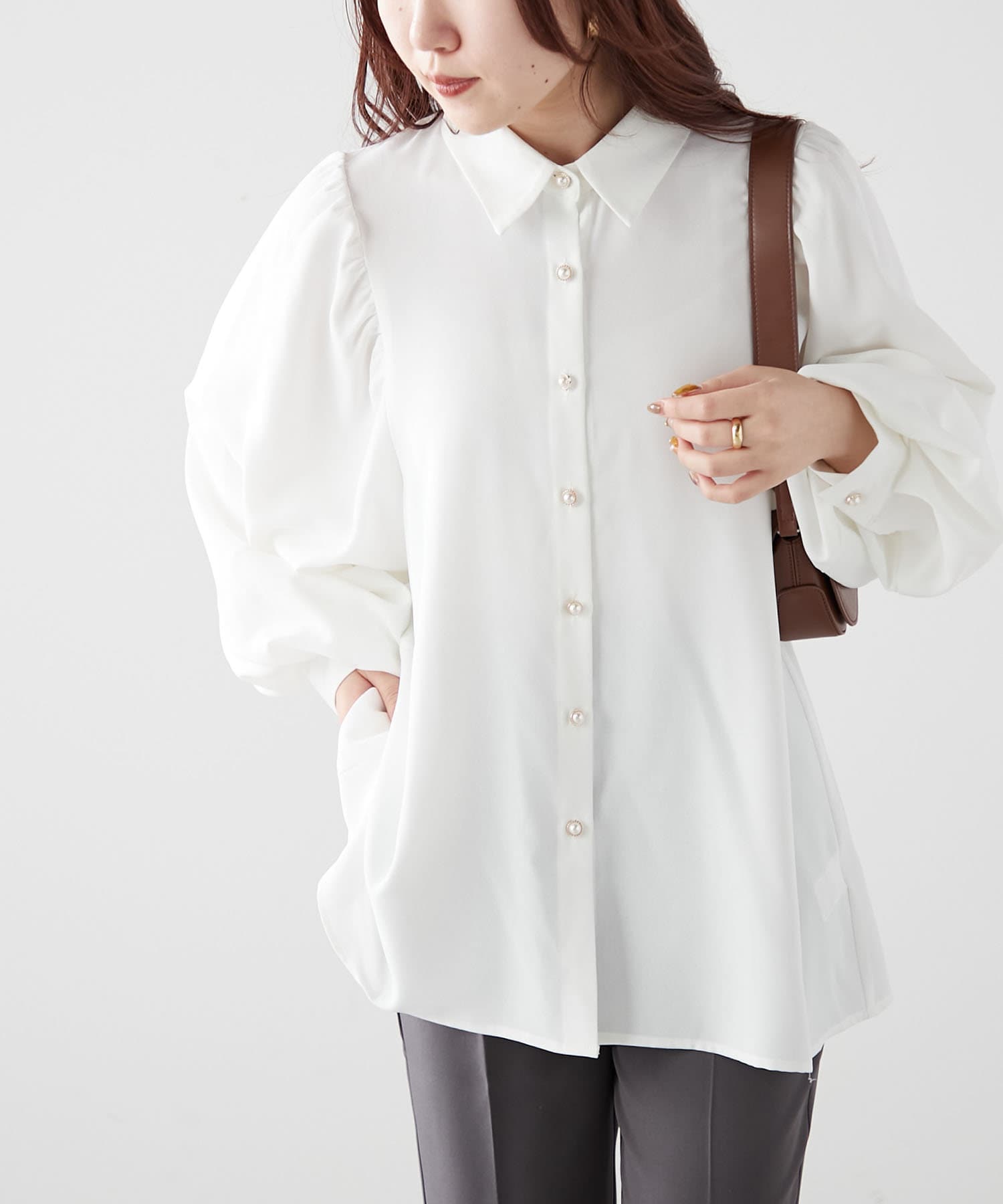 ・袖にボリュームを持たせ、華奢見えが叶うブラウス