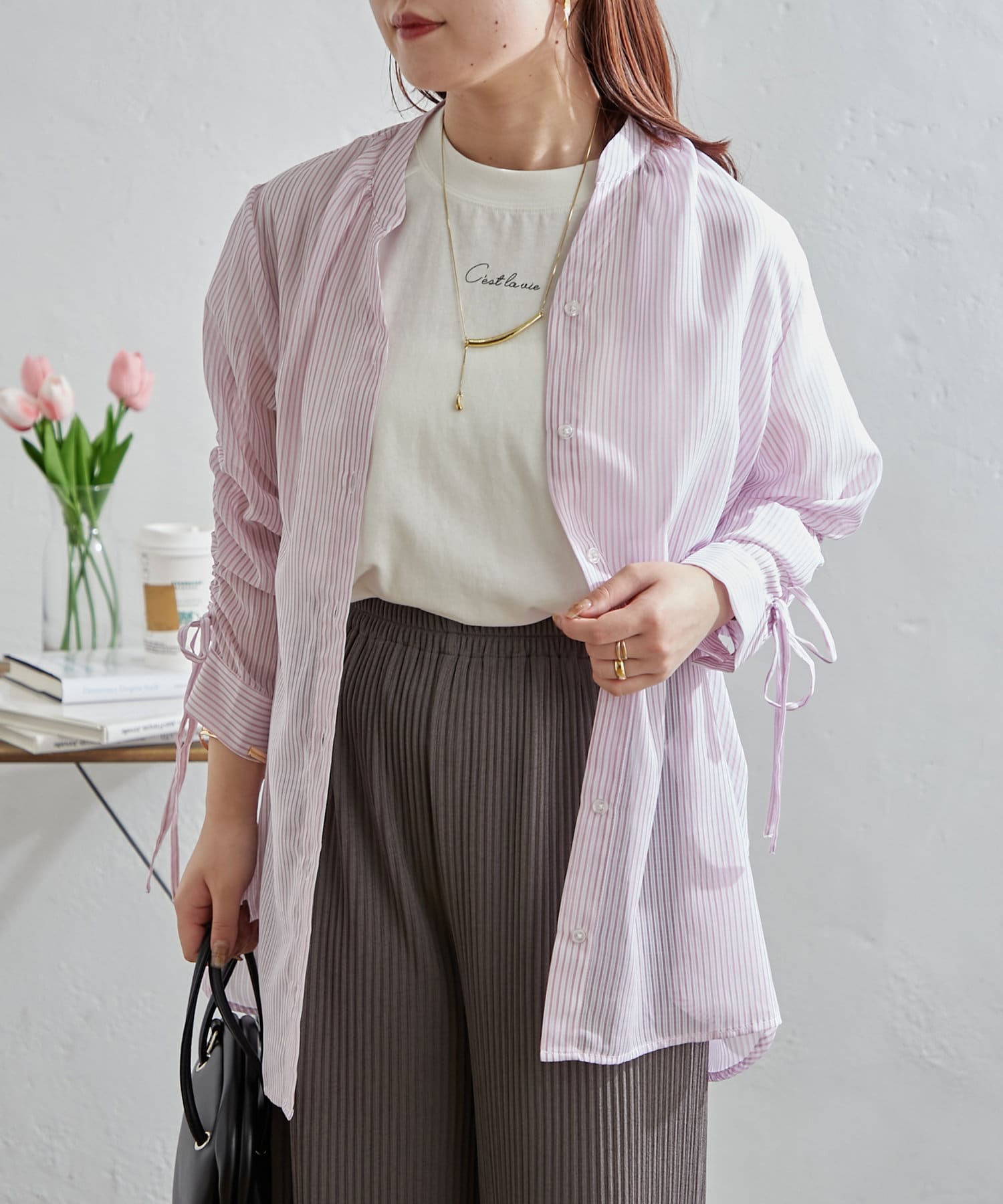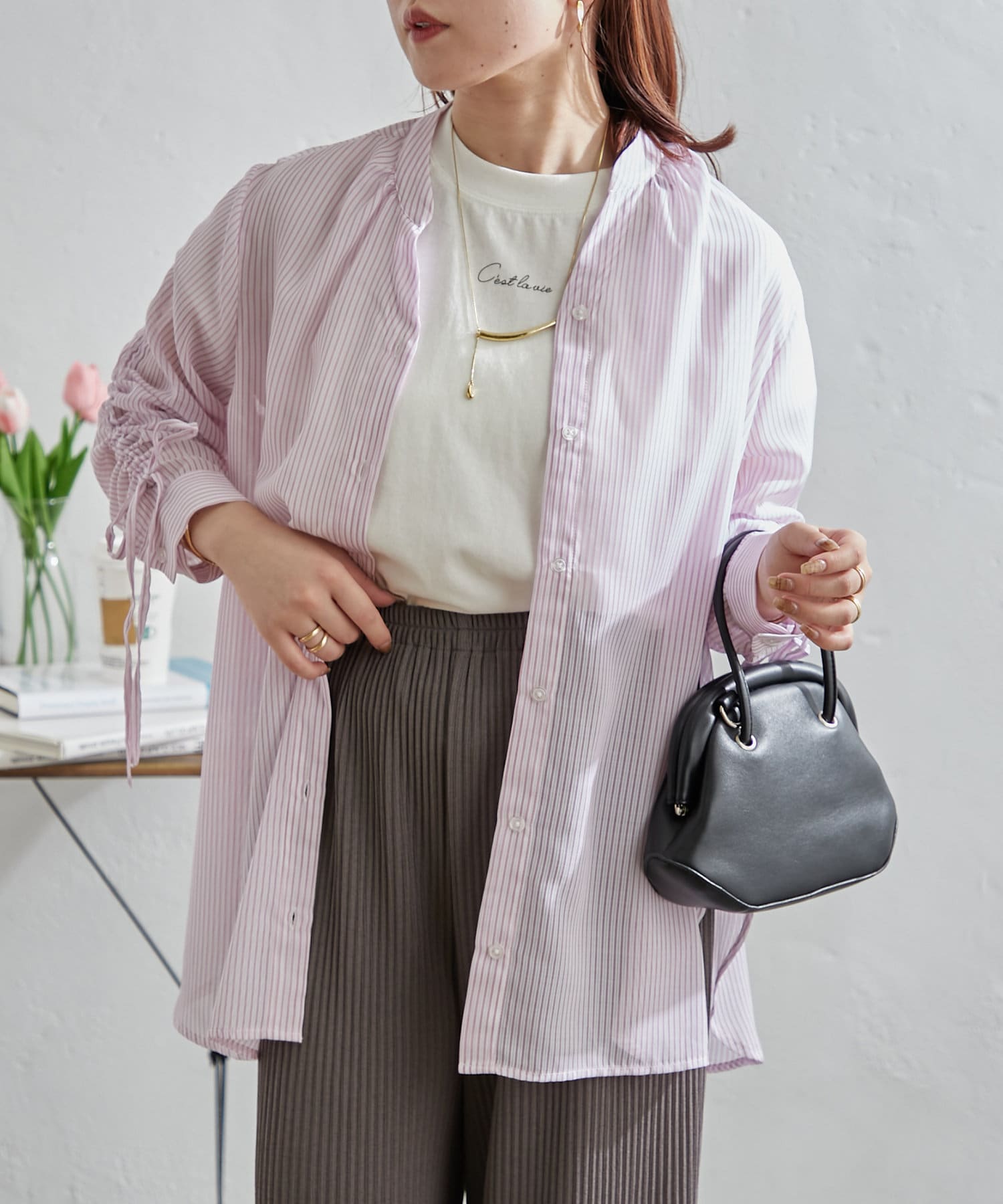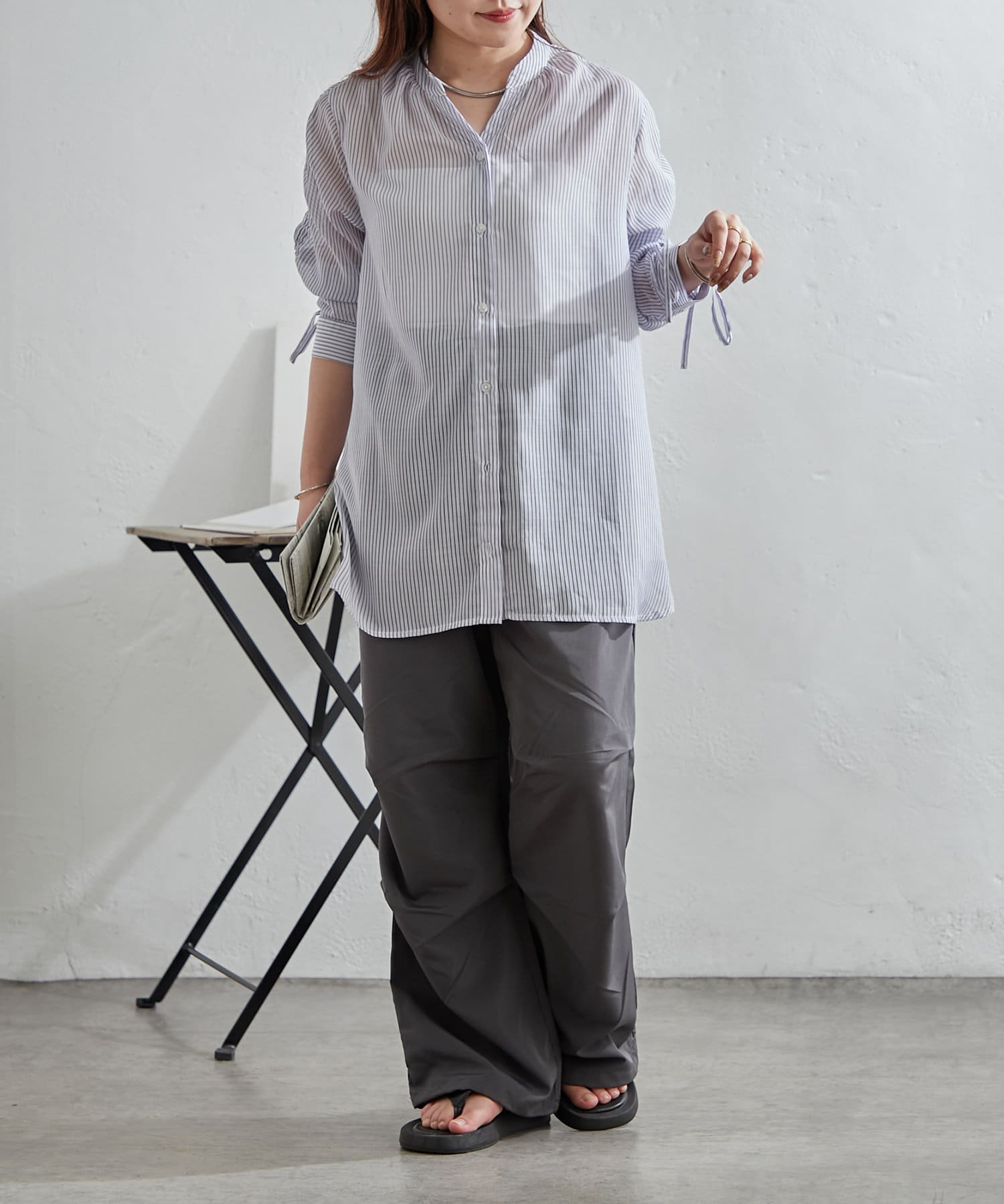 ・袖ドロストで形に変化をつけて楽しめるシャツ