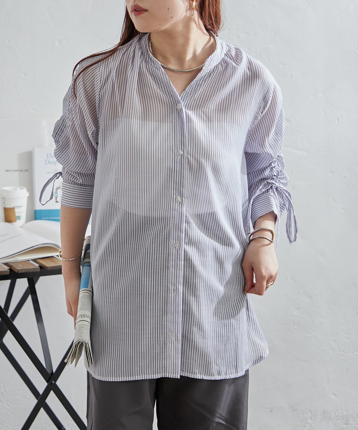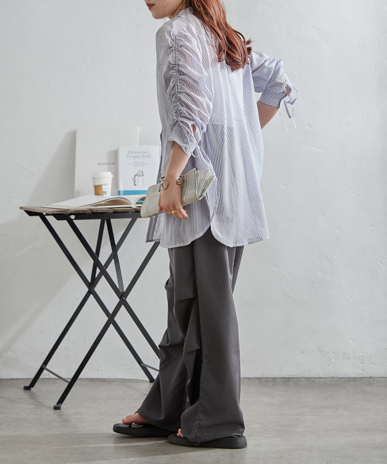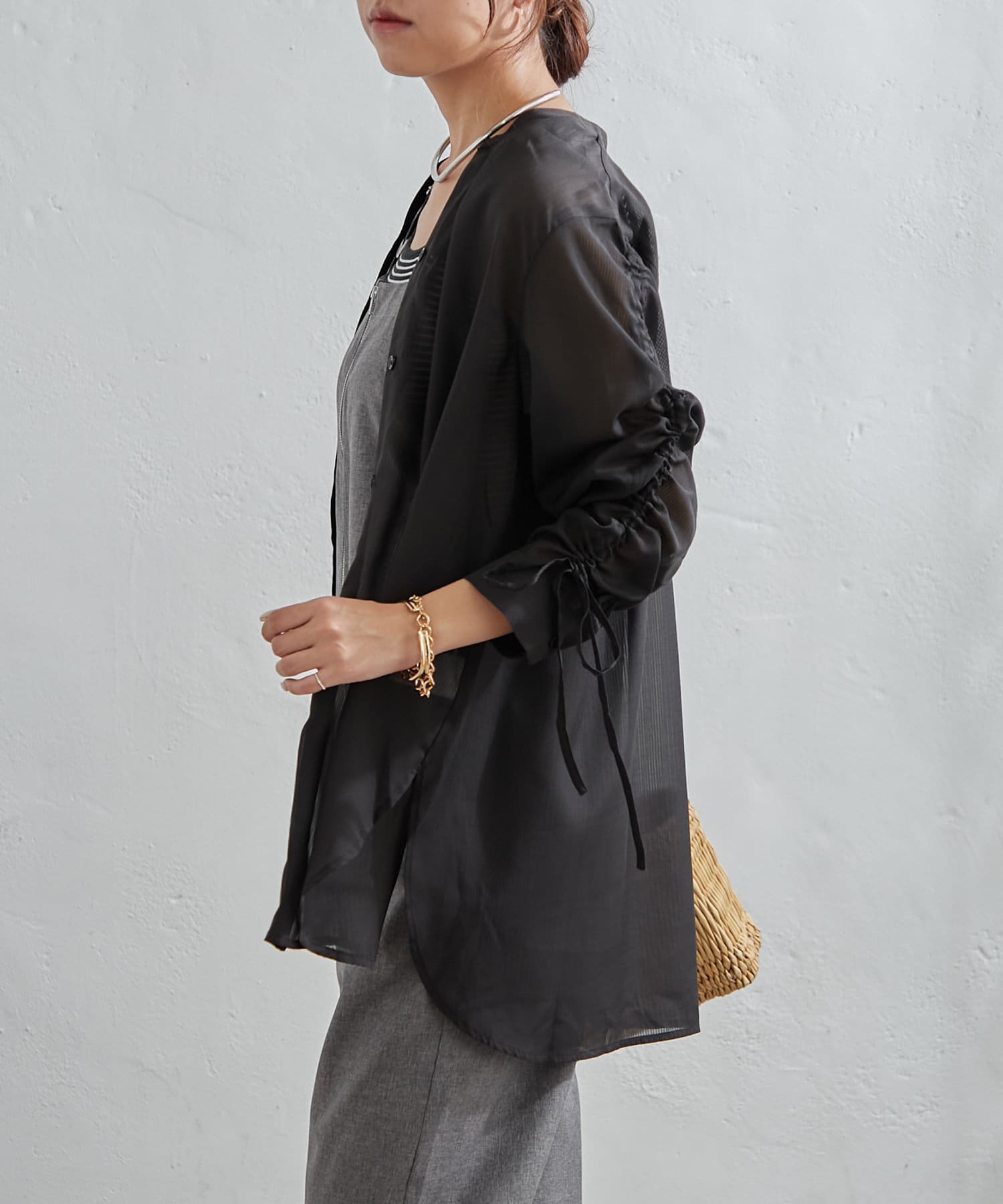 TOP > Remind me and forever > レディース > トップス > シャツ/ブラウス(ボタン) > 袖ドロストシアーシャツ
