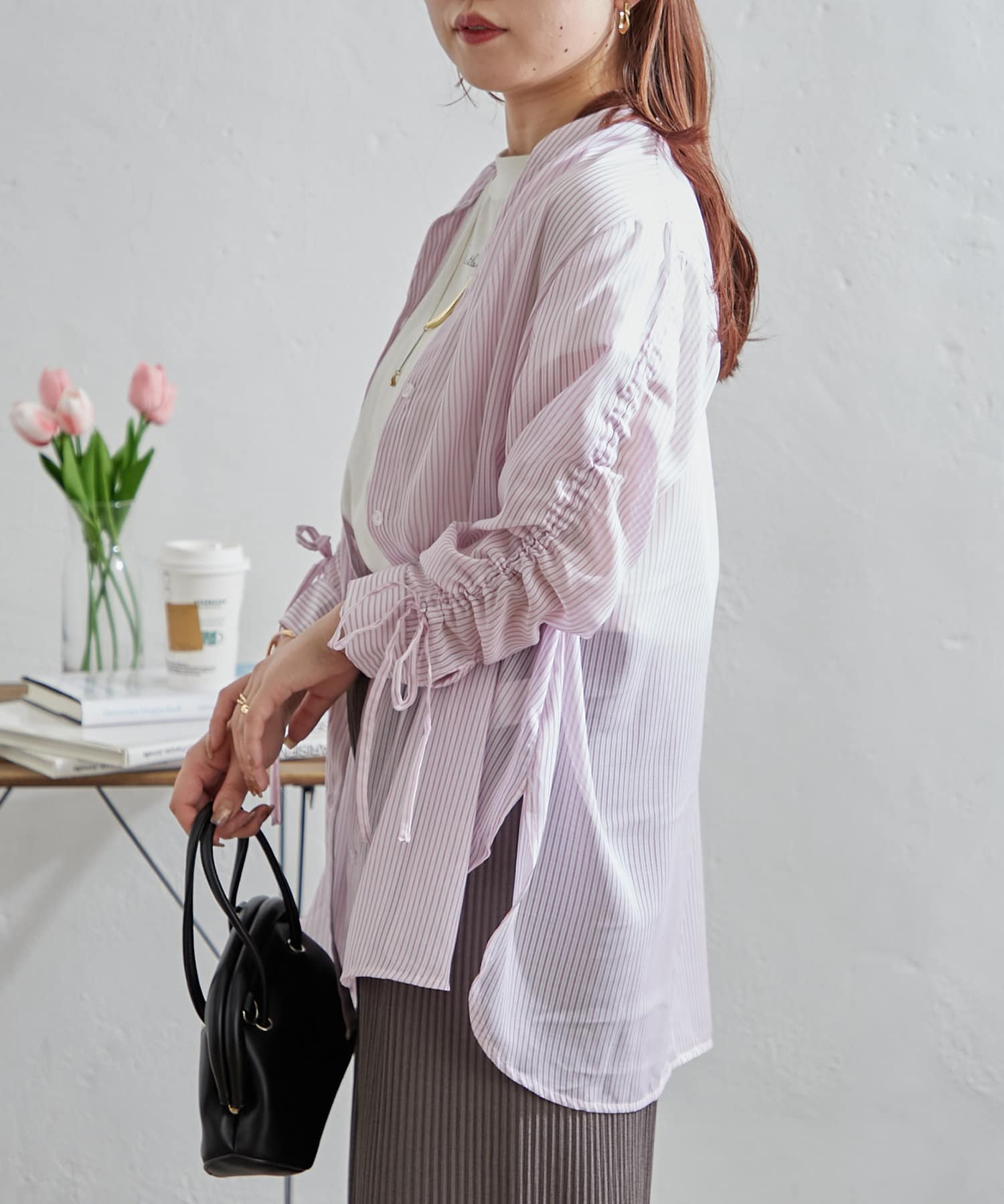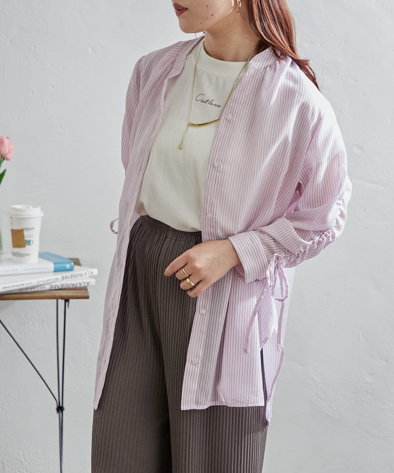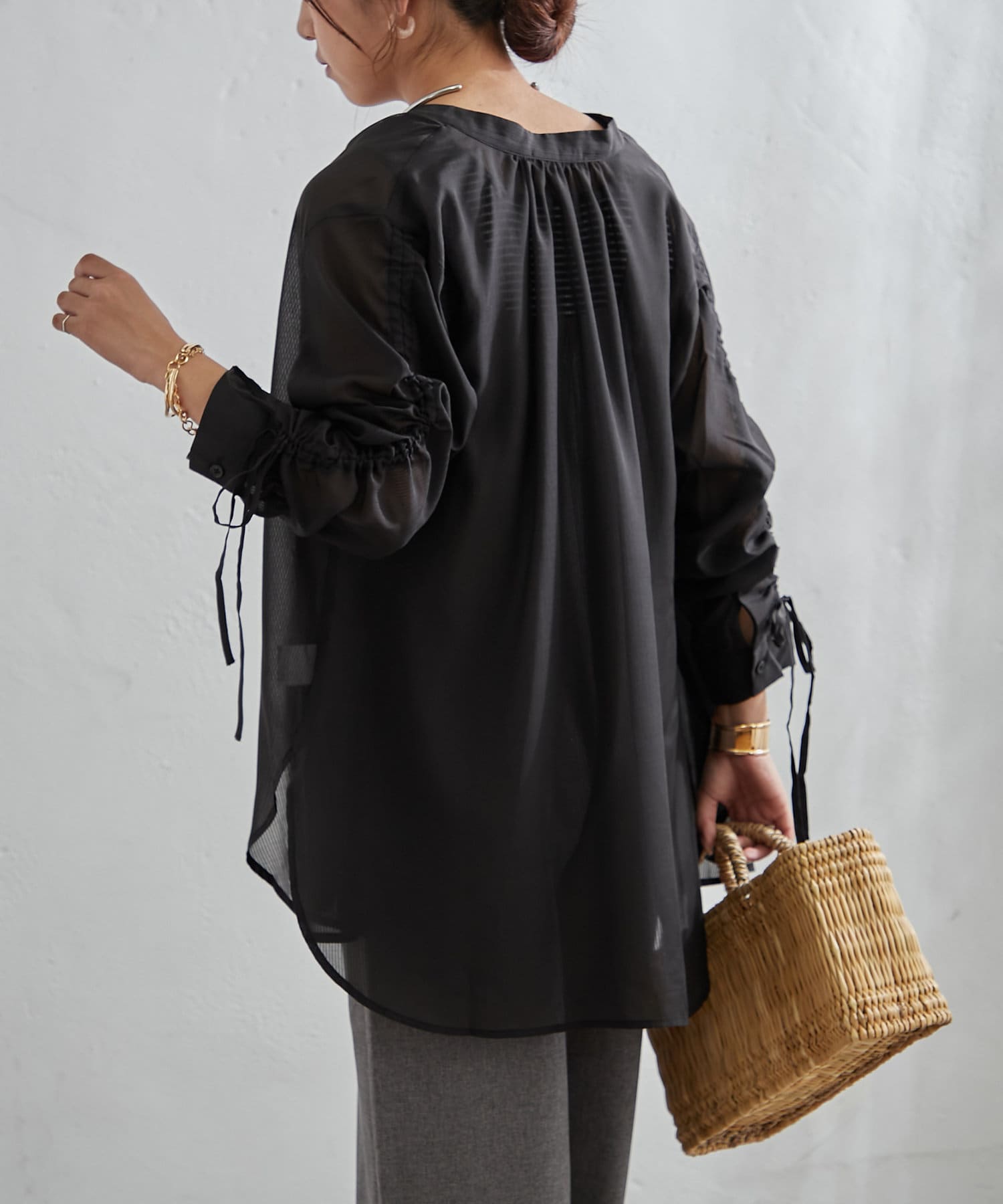 TOP > Remind me and forever > レディース > トップス > シャツ/ブラウス(ボタン) > 袖ドロストシアーシャツ
