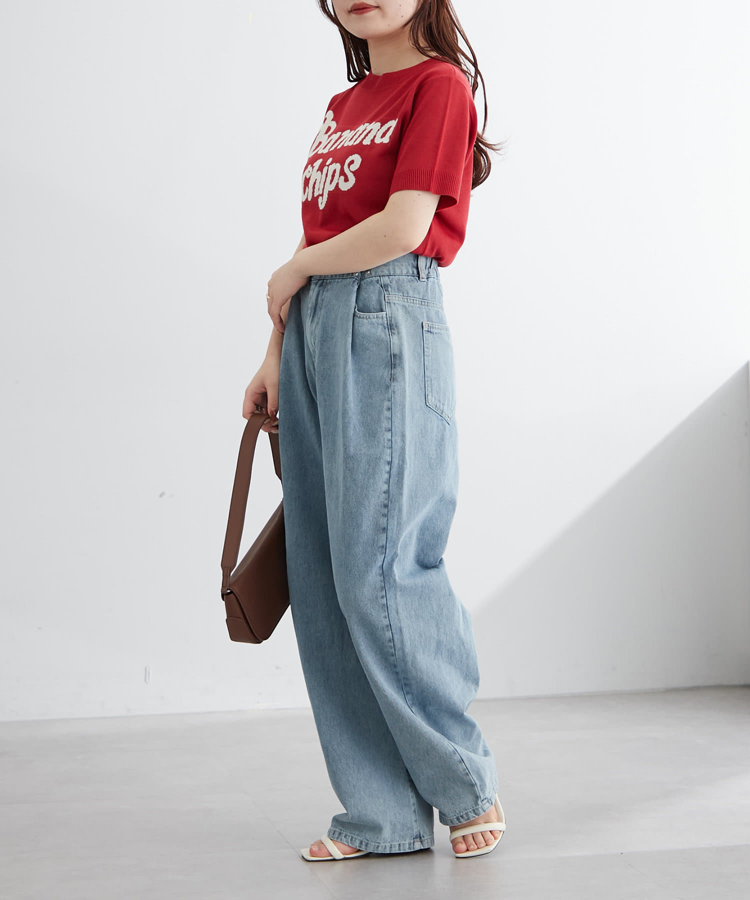 ・短めな丈感なので、ハイウエストボトムと合わせて脚長コーデを