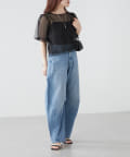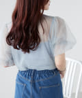 ・パフスリーブのチュールトップスとキャミソールのセットアイテム