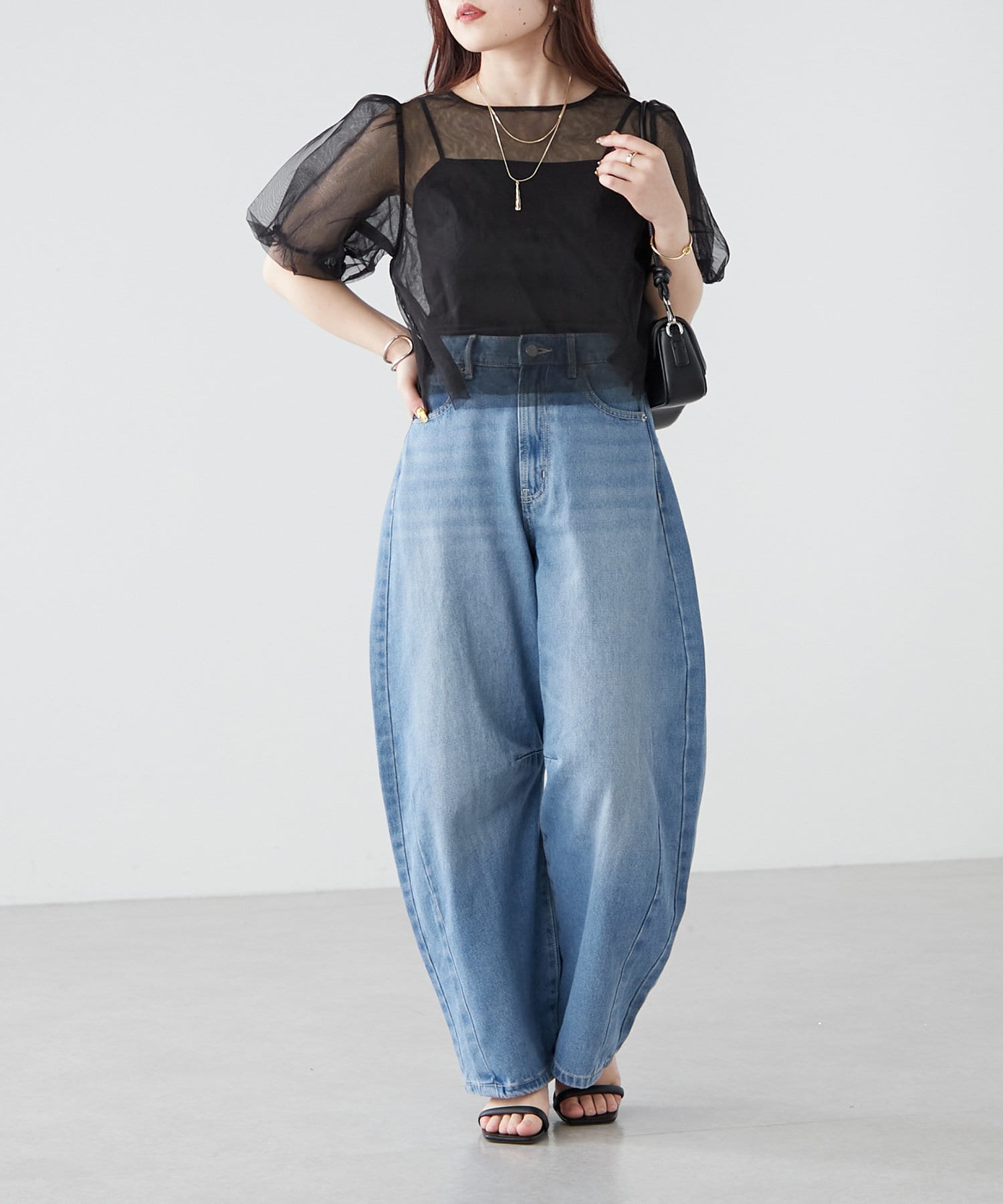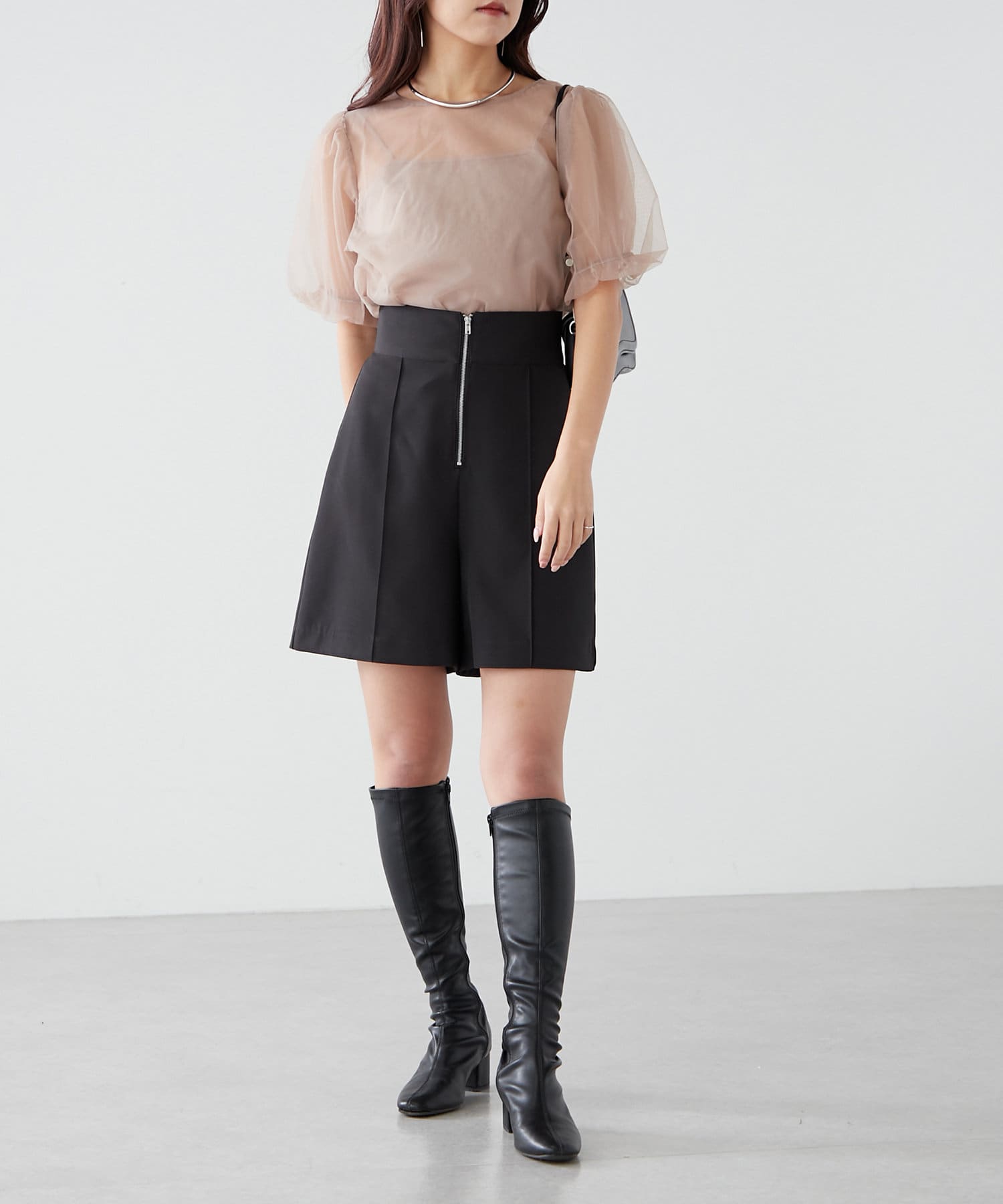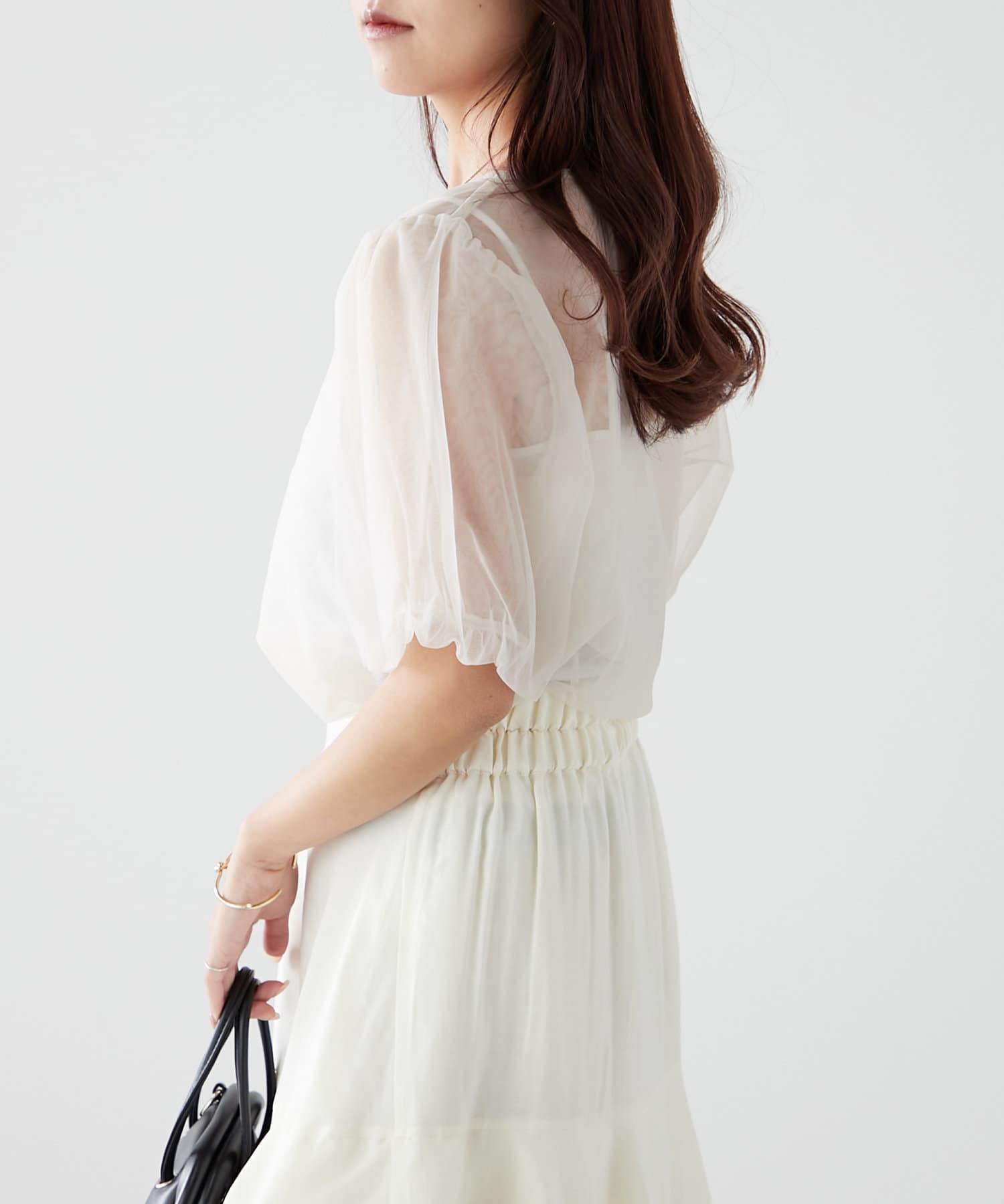 ・パフスリーブのチュールトップスとキャミソールのセットアイテム