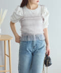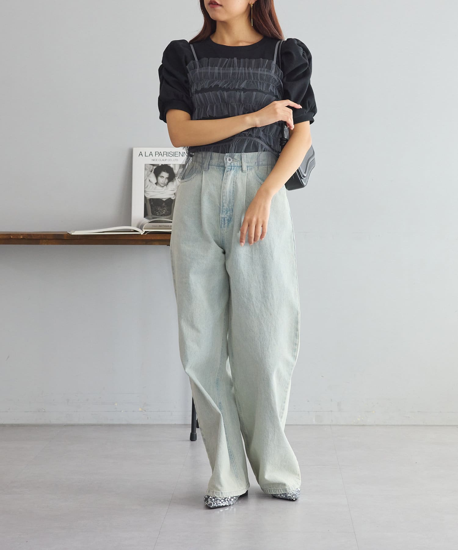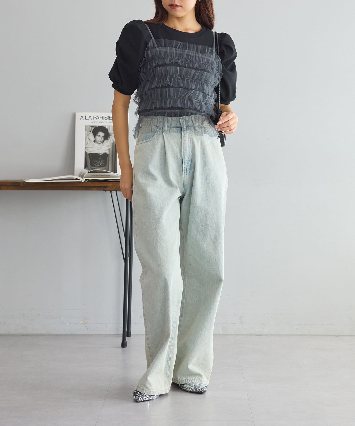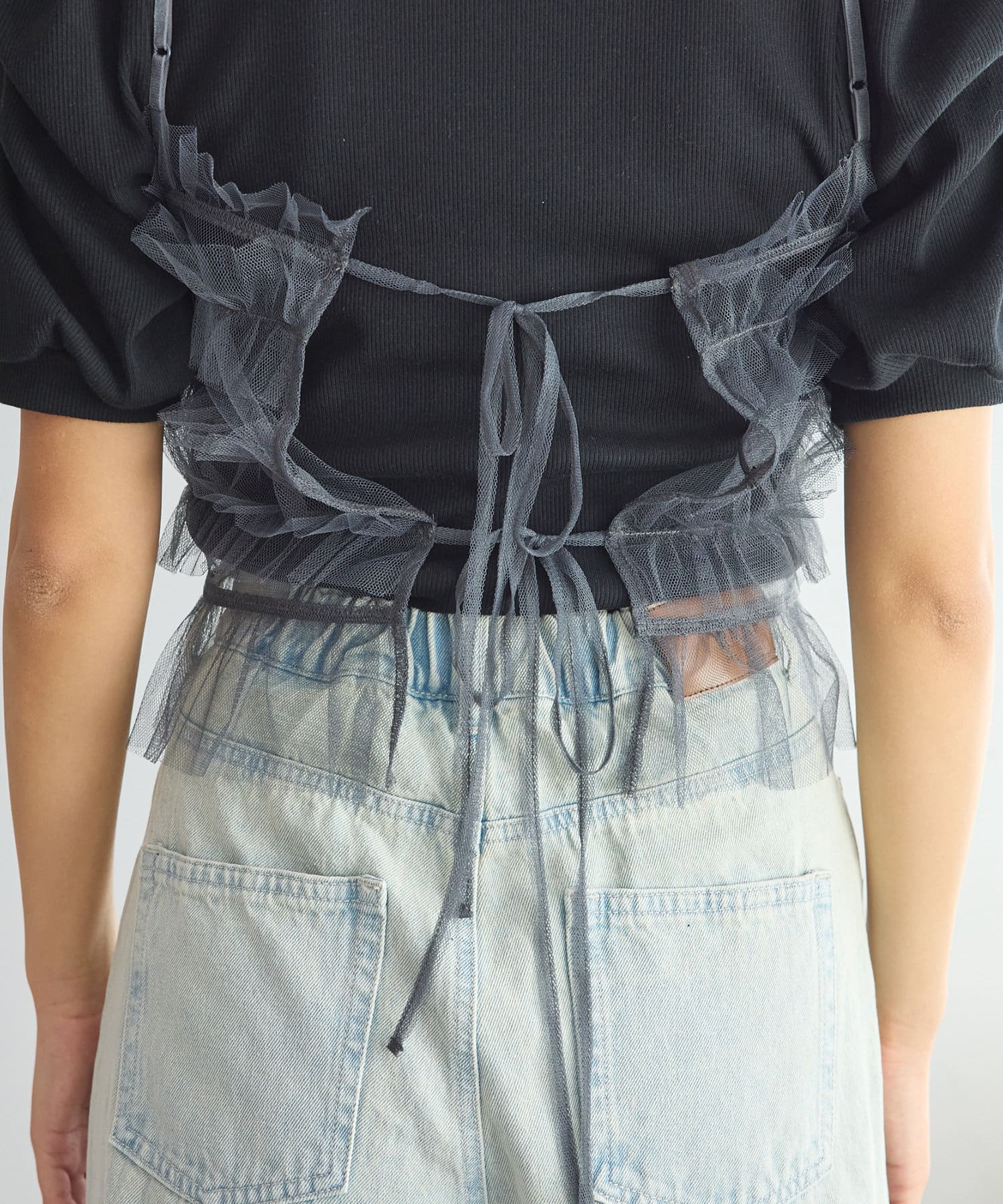 ・暑い時期にはタンクトップの上にチュールキャミをレイヤードしてさわやかな着こなしを〇