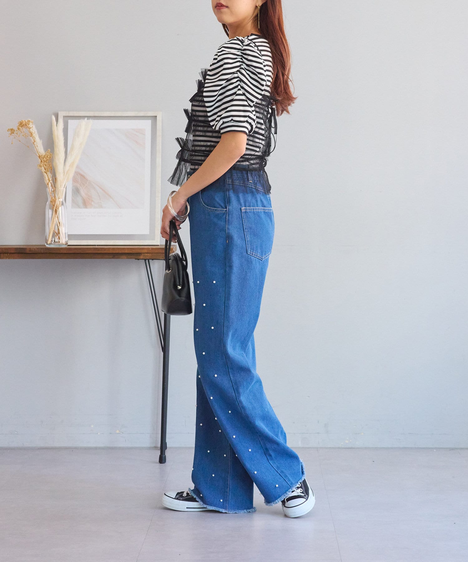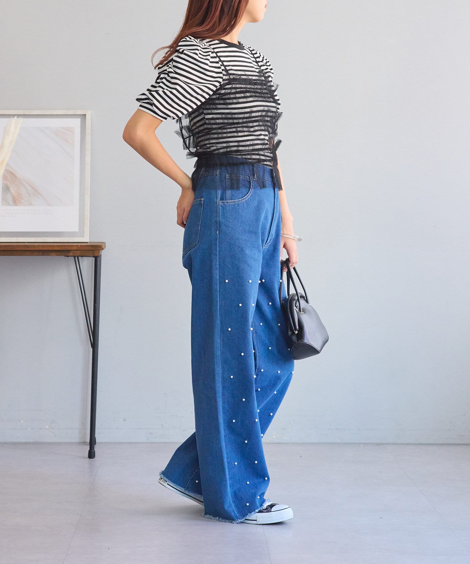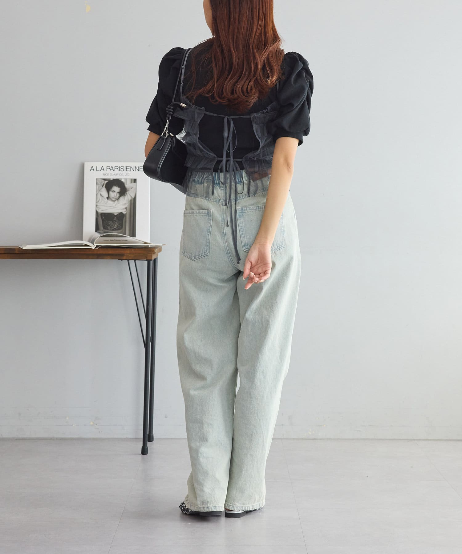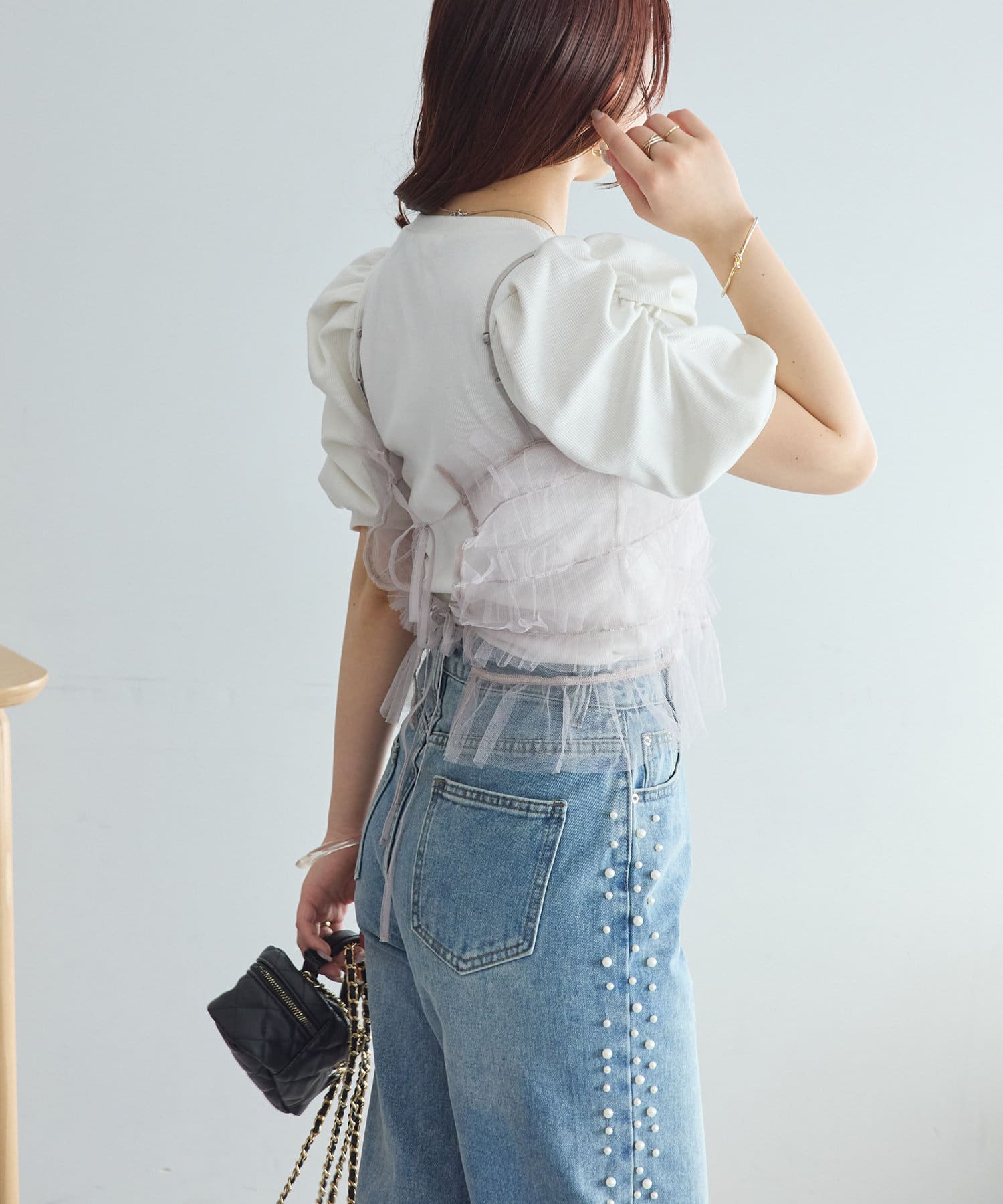 ・暑い時期にはタンクトップの上にチュールキャミをレイヤードしてさわやかな着こなしを〇