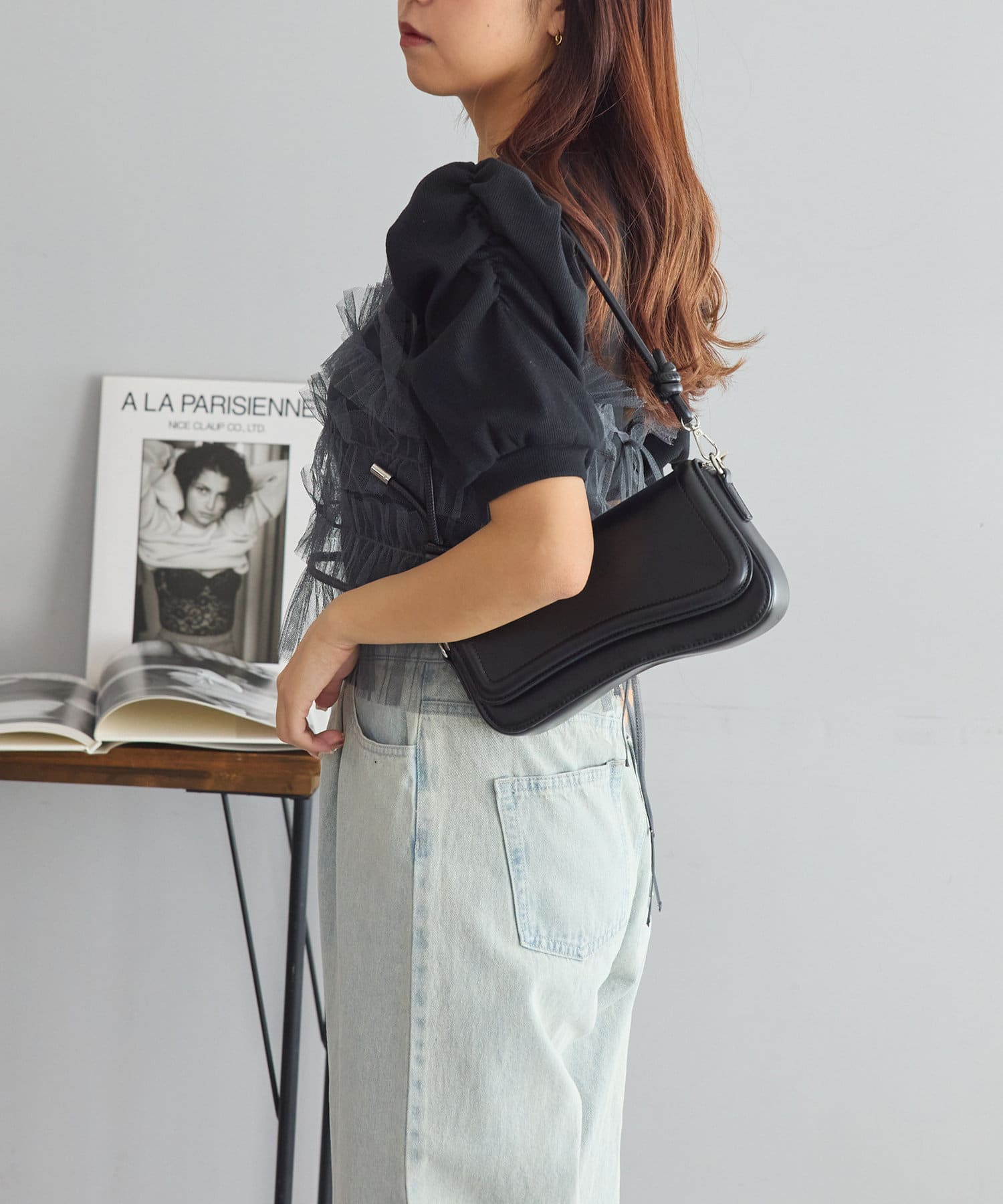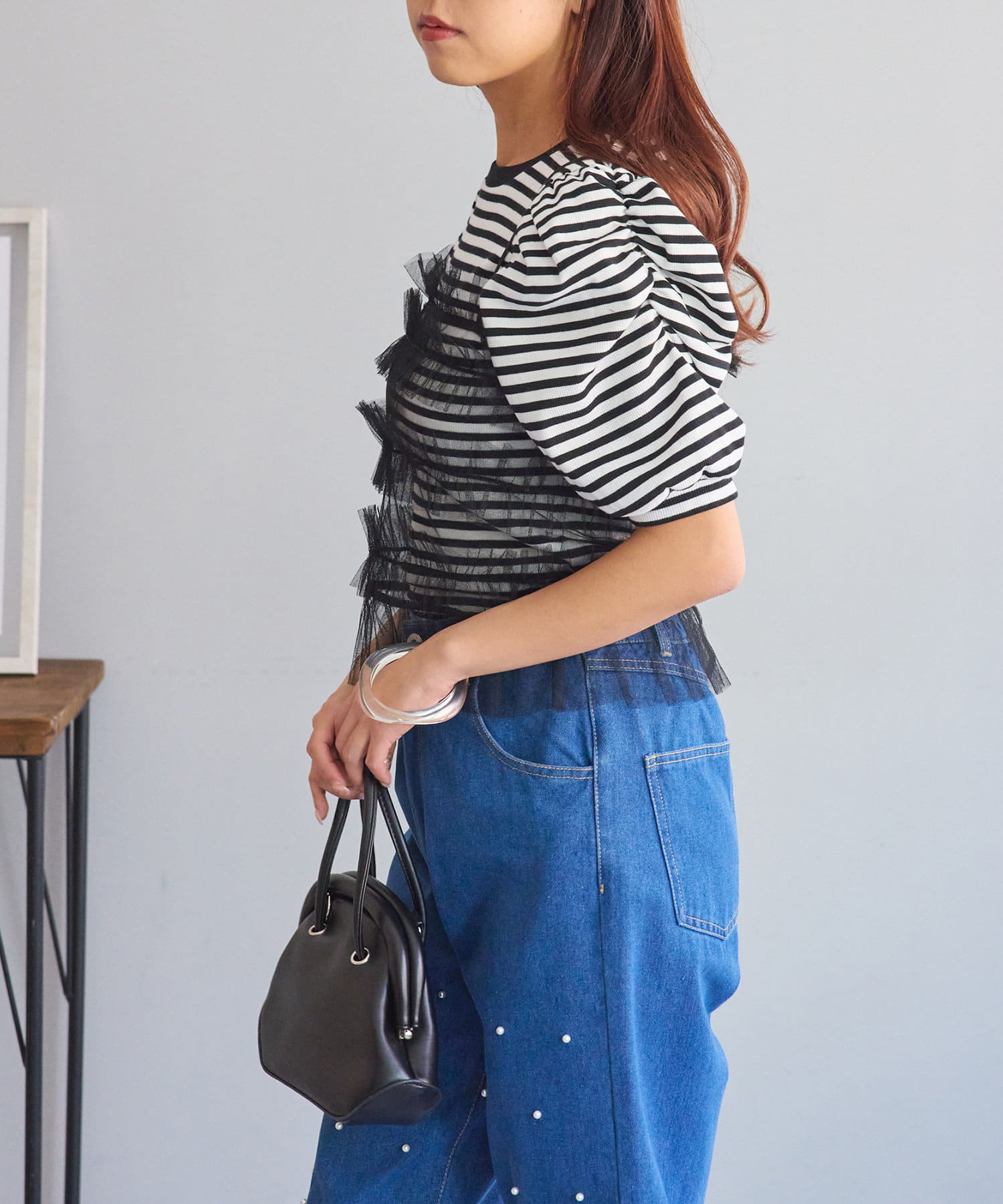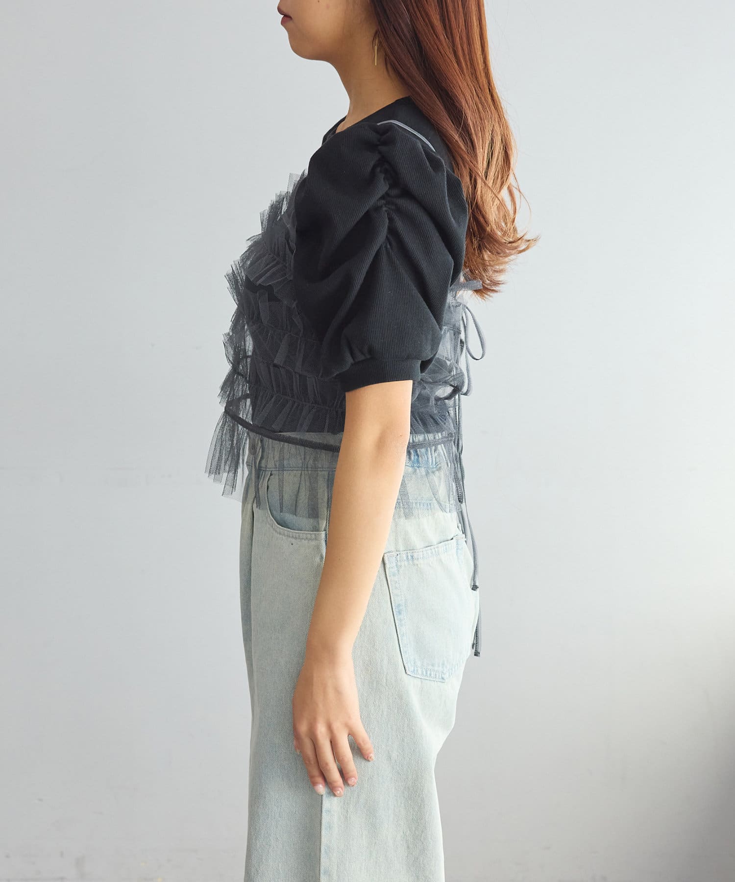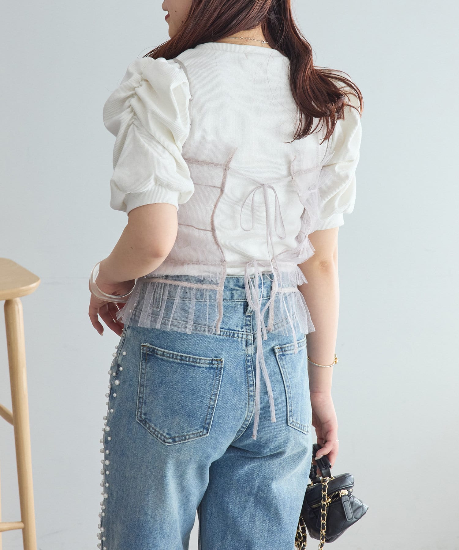 ・着まわしやすいシンプルなテレコトップスとトレンドのチュールキャミがセットに