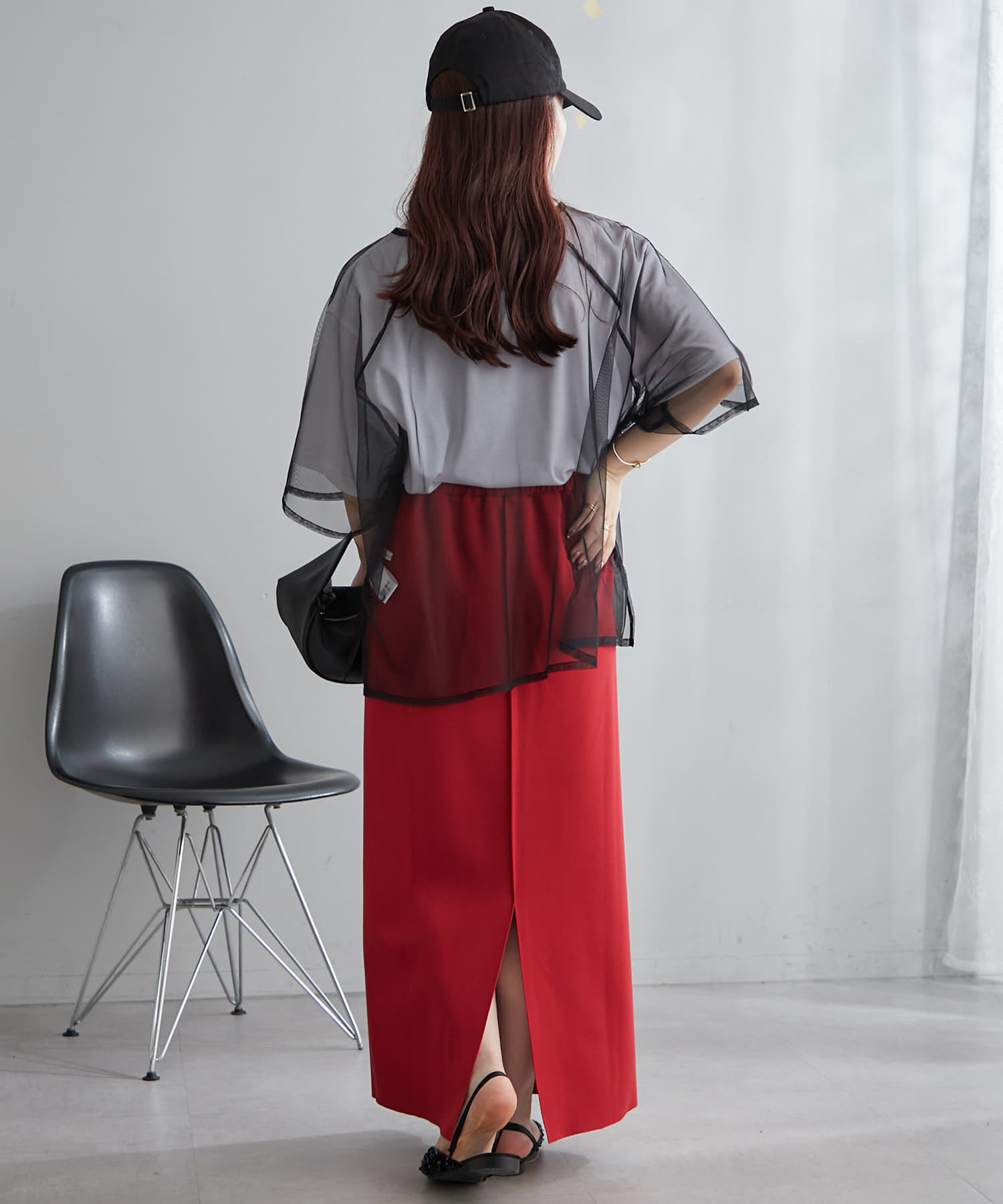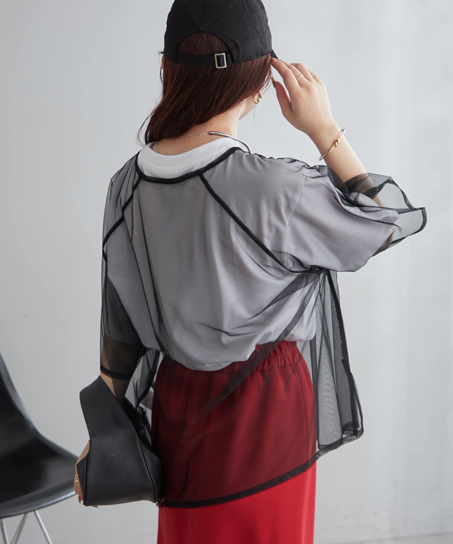 ・チュール素材はガーリーなアイテムとも相性が良くボリュームあるスカートと合わせるのもおすすめです。