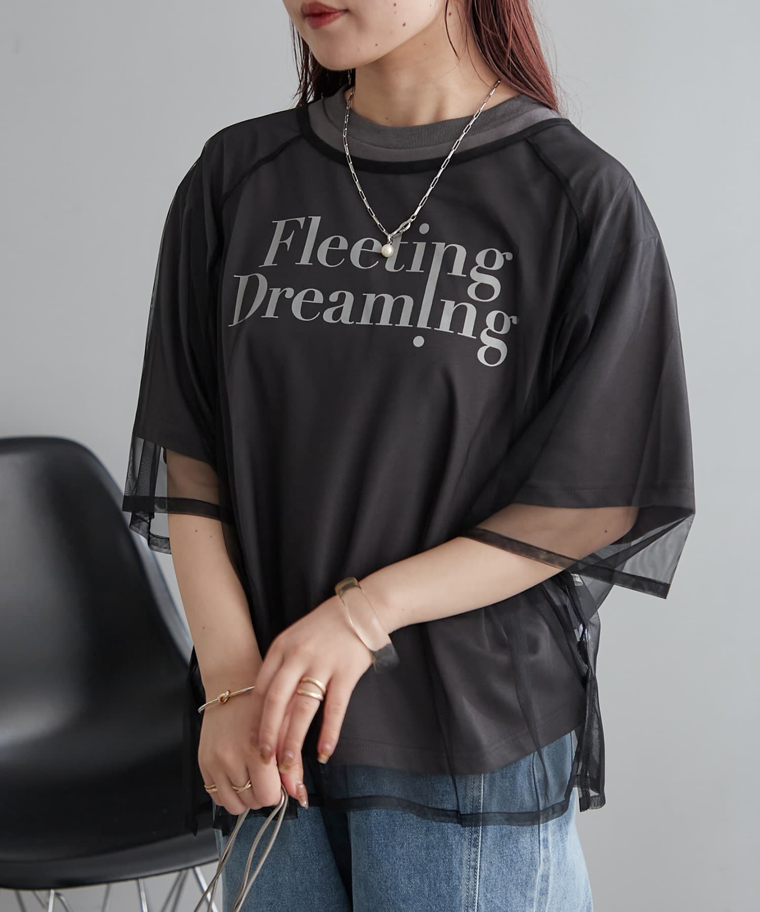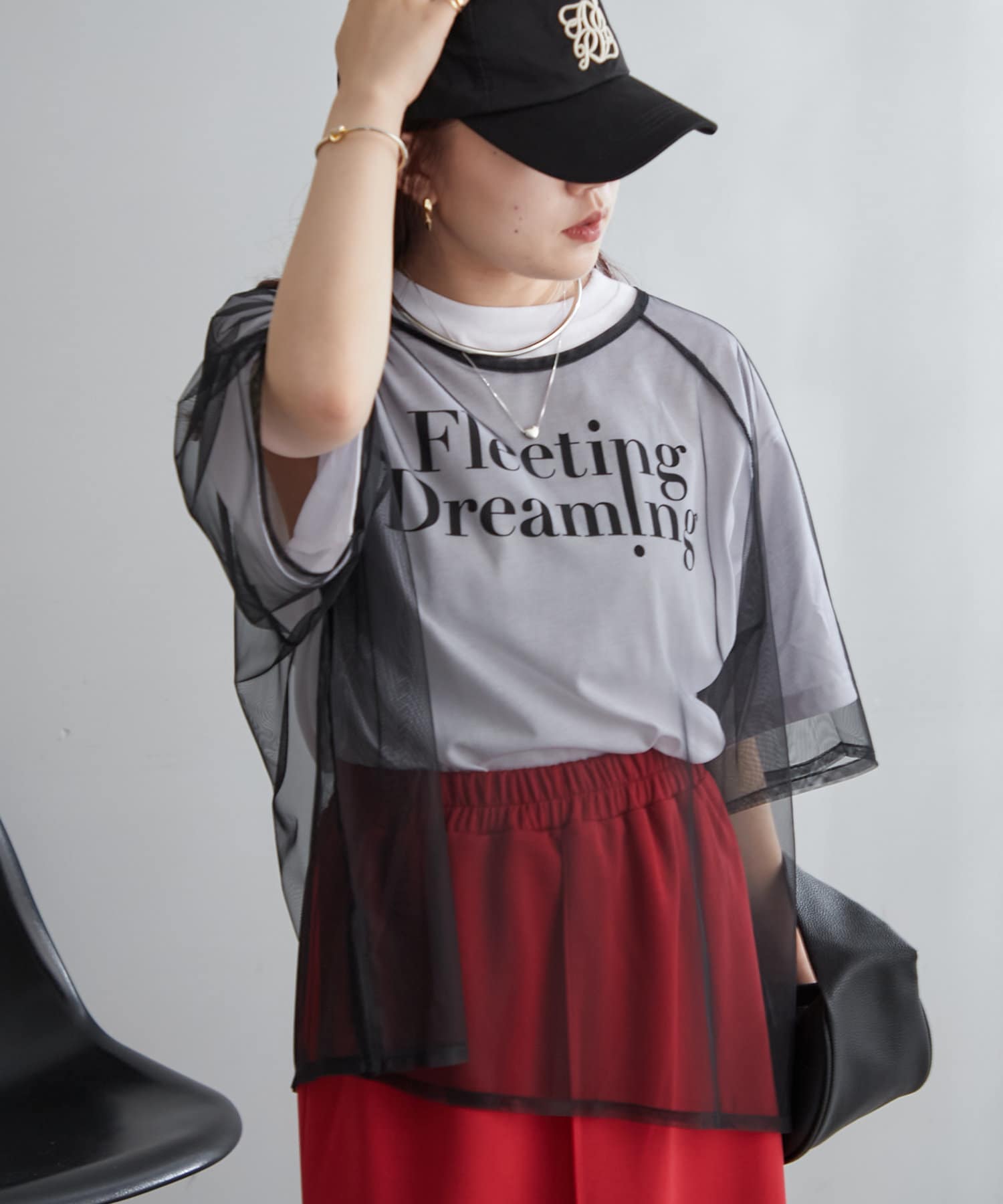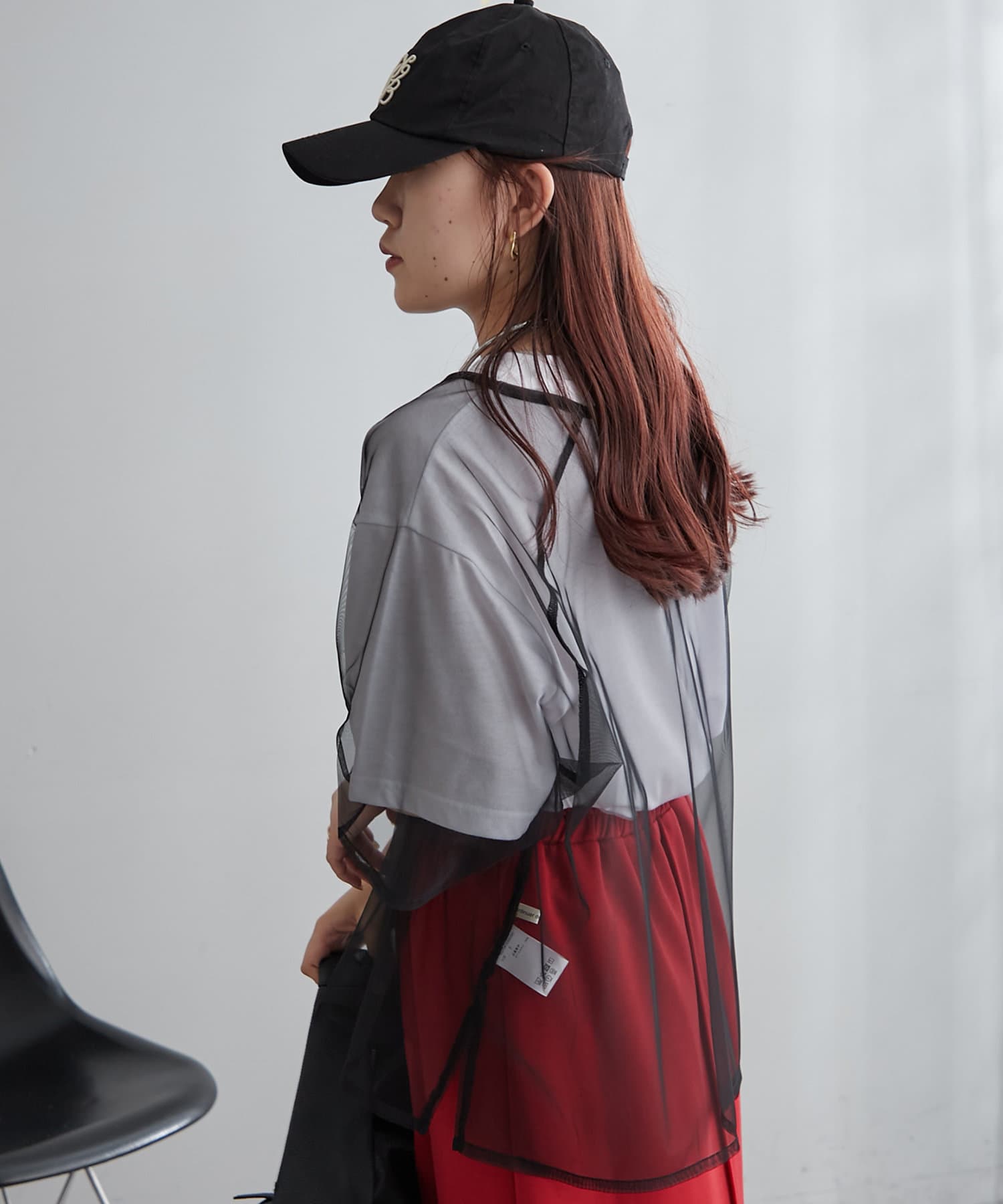 ・トレンドのチュール使いでTシャツスタイルを今っぽく着こなせる一枚。