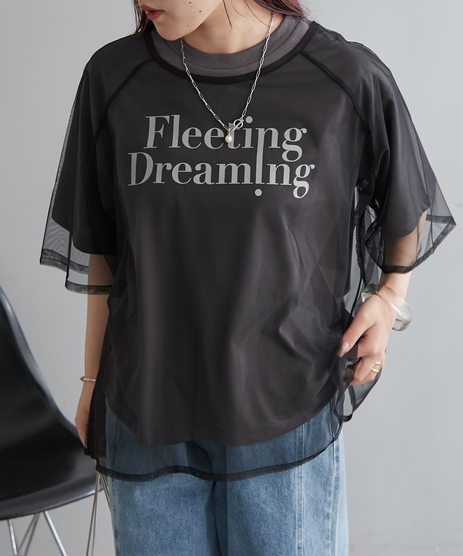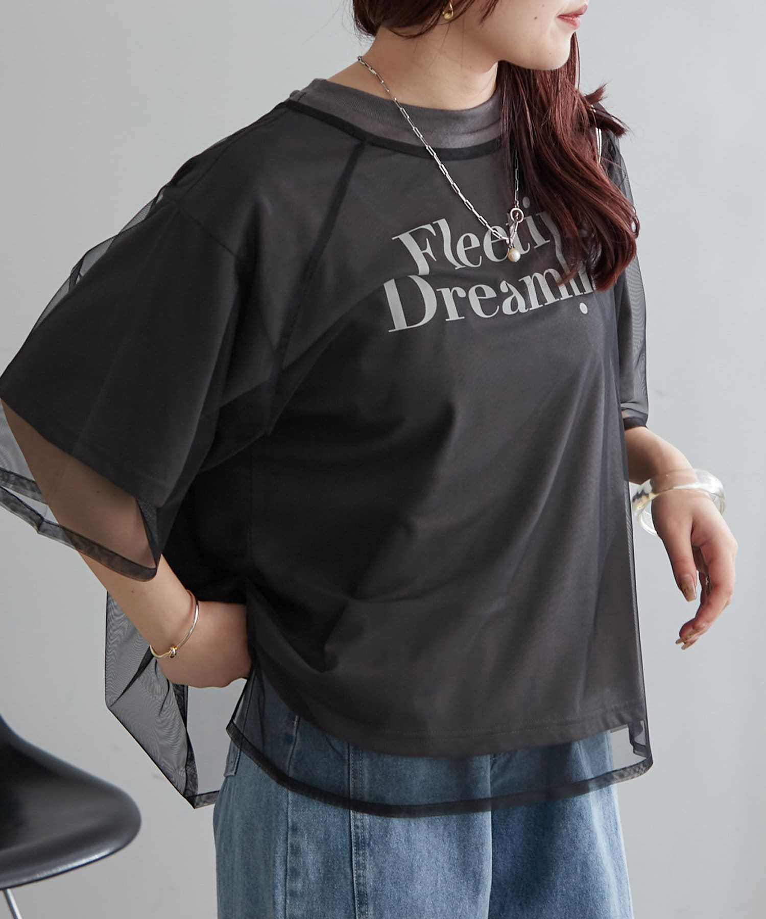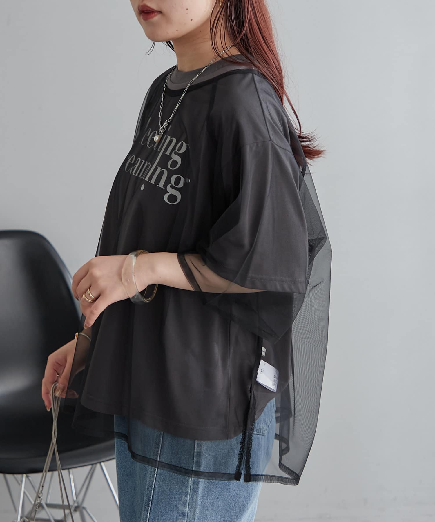・トレンドのチュール使いでTシャツスタイルを今っぽく着こなせる一枚。