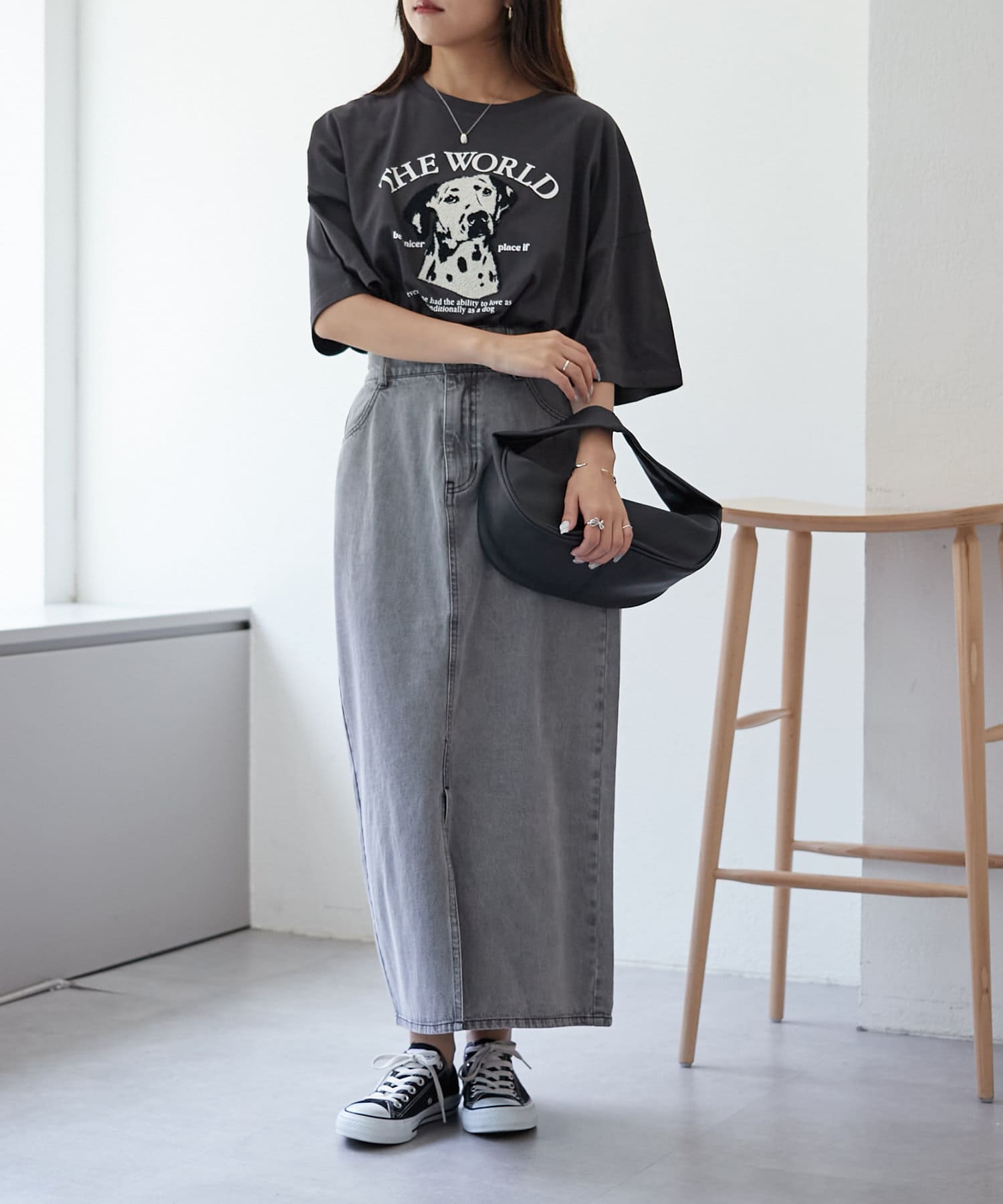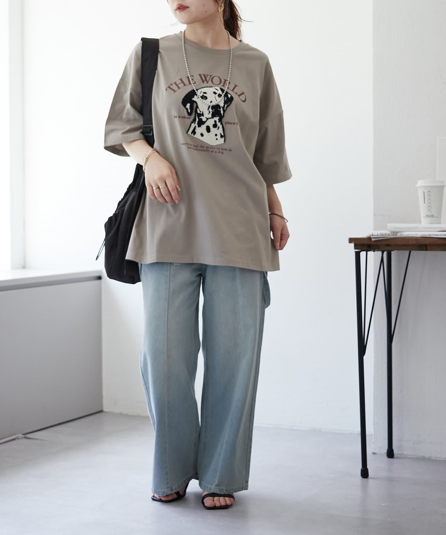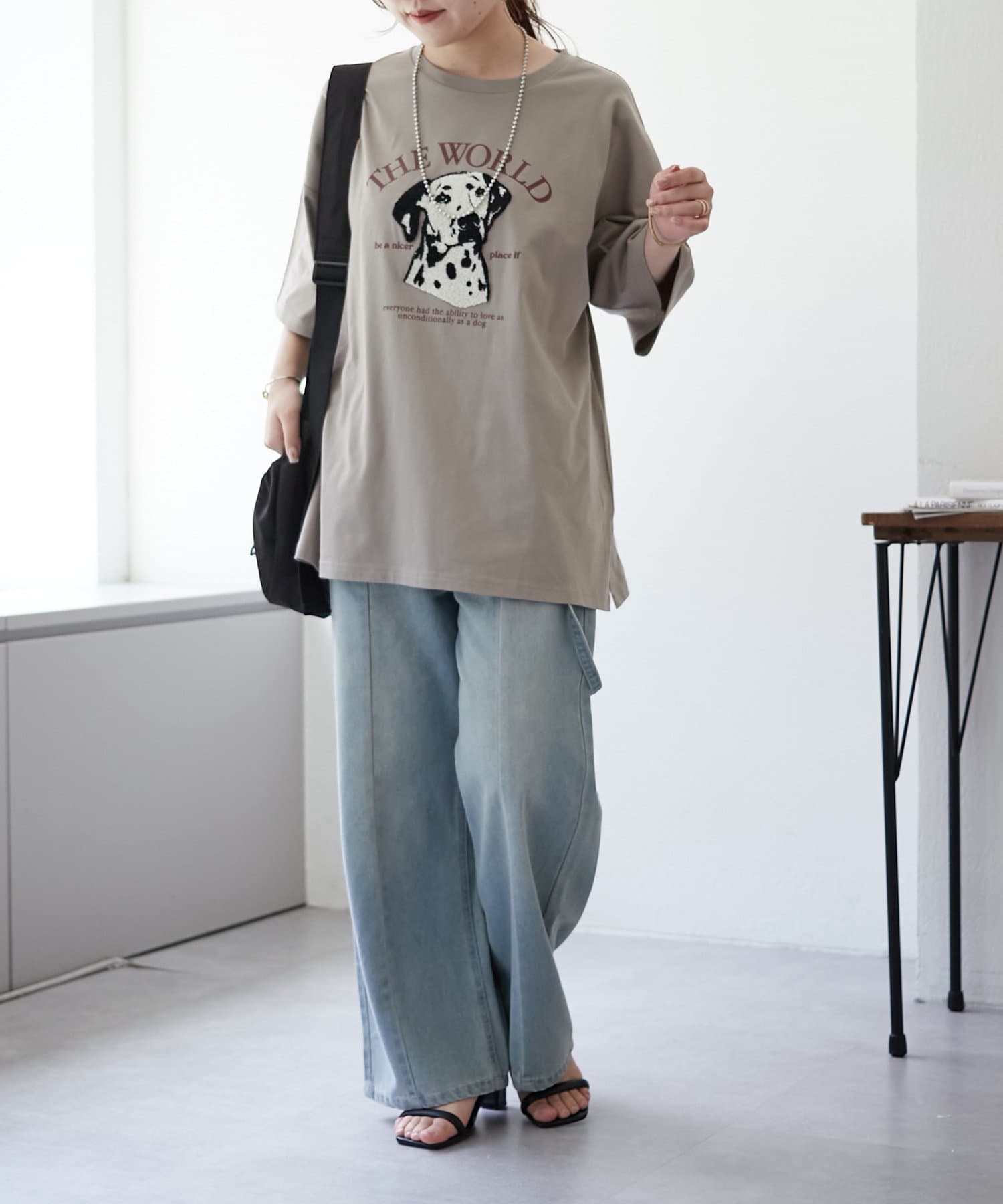 ・ワイドなデニム合わせでラフなカジュアルコーデがオススメ。