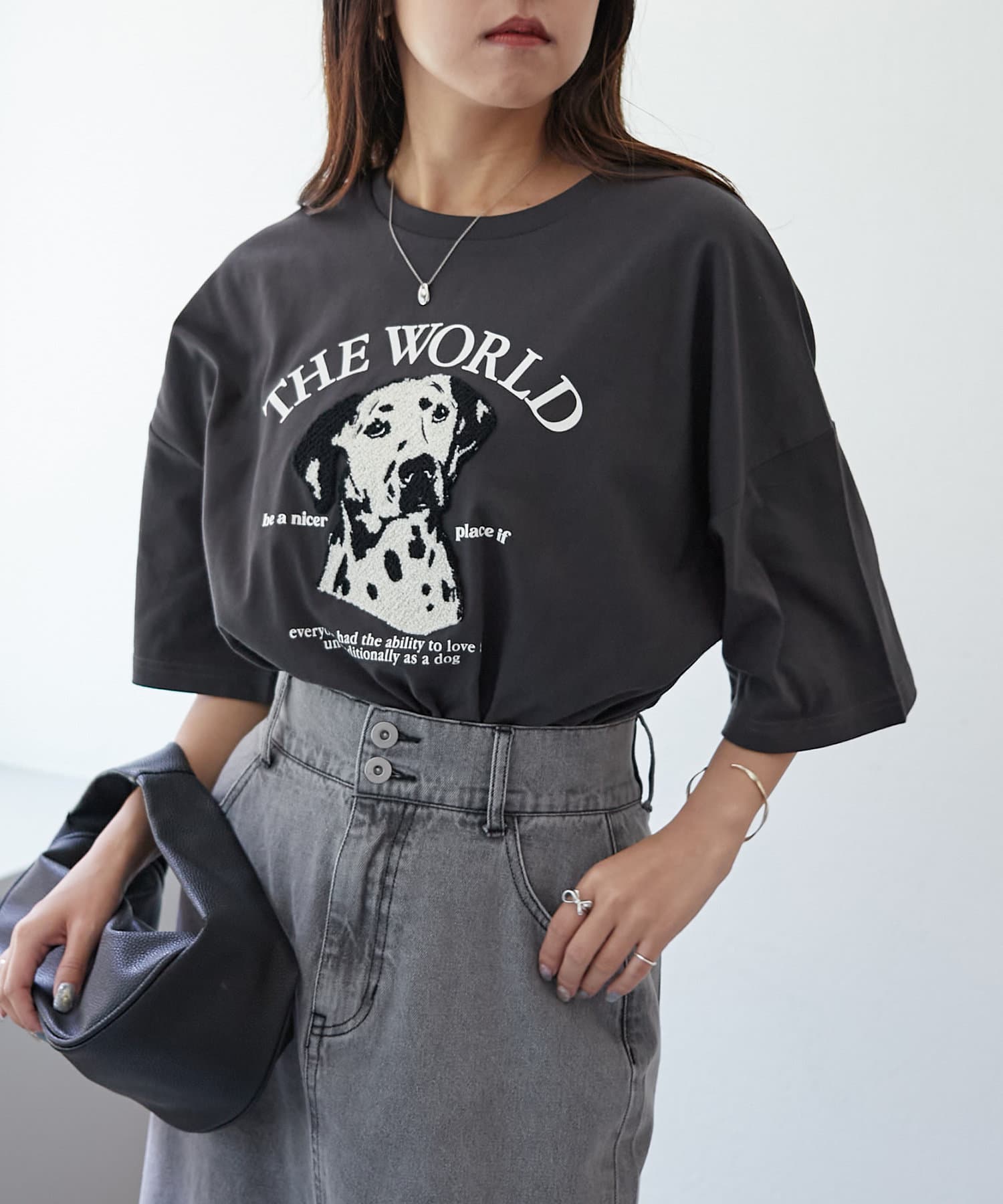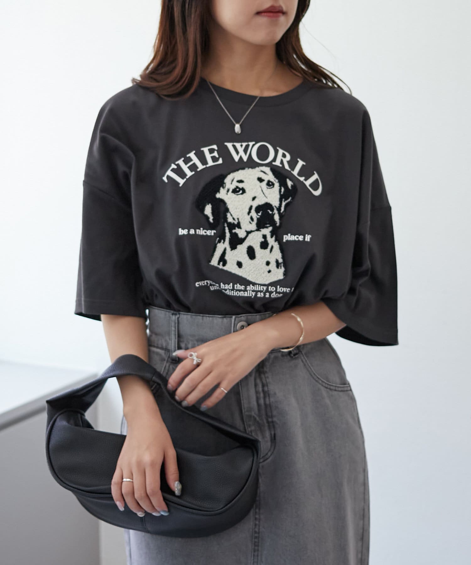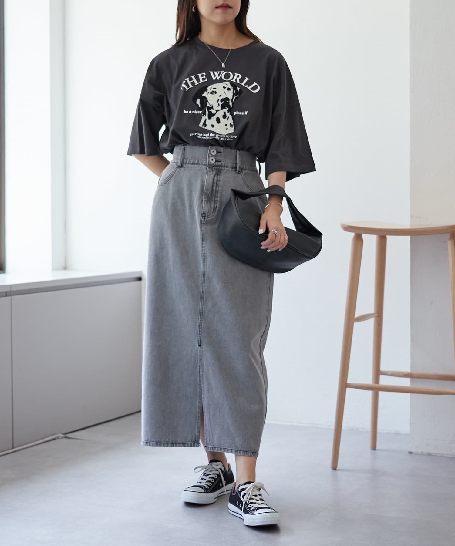 ・ワイドなデニム合わせでラフなカジュアルコーデがオススメ。