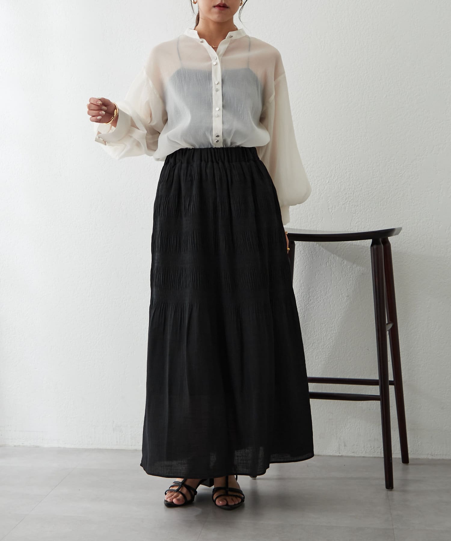 ・シアーシャツで春夏にピッタリな透け感をプラスするのも〇