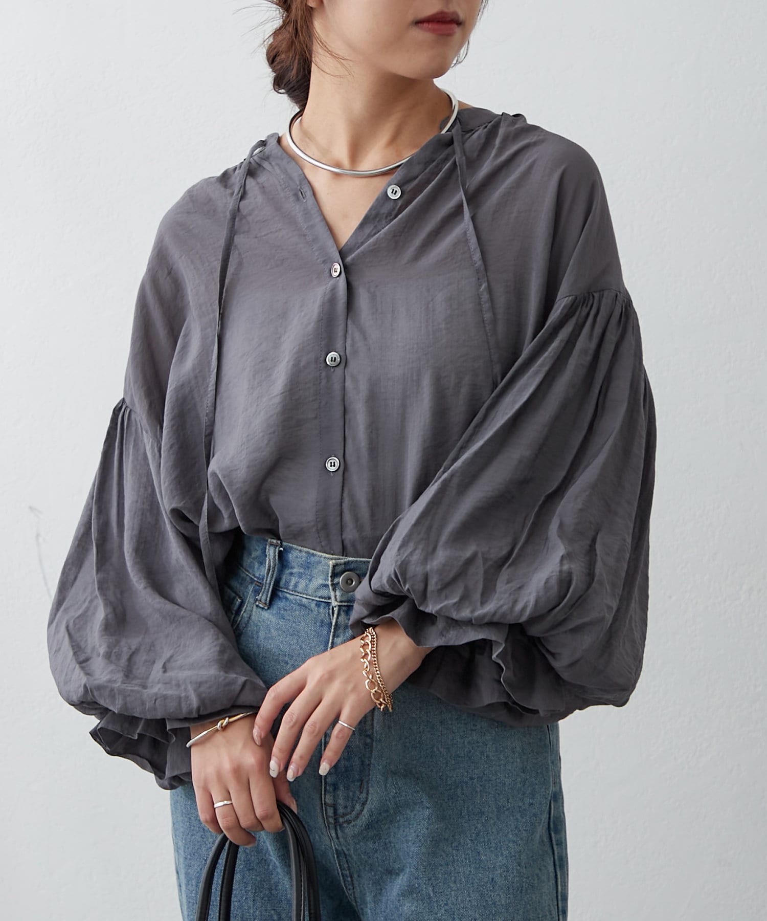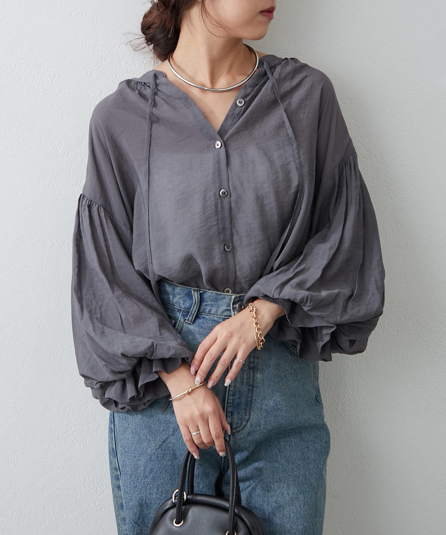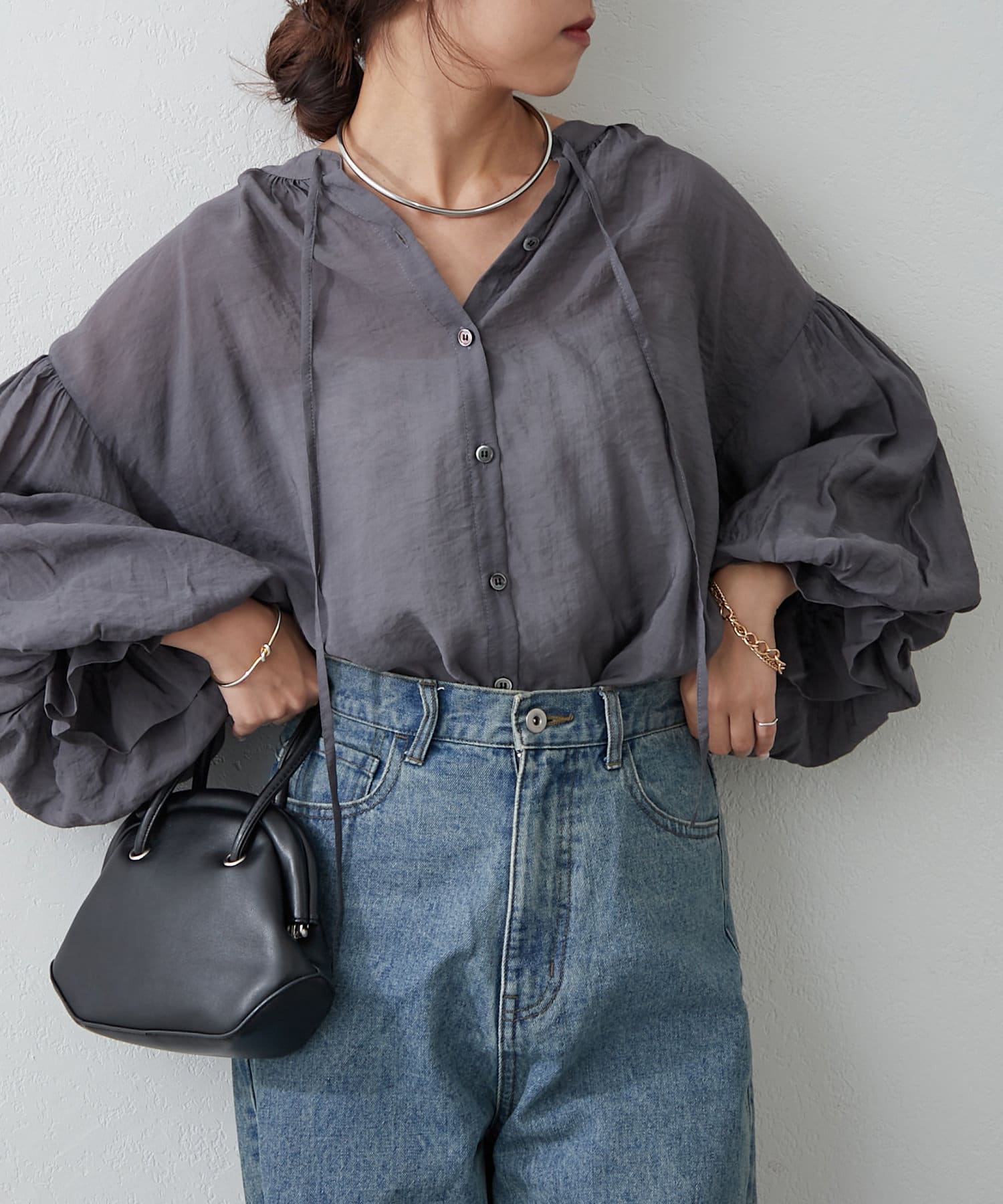 ・程よいルーズ感のあるサイジングとボリューム感のあるお袖がポイントのブラウス