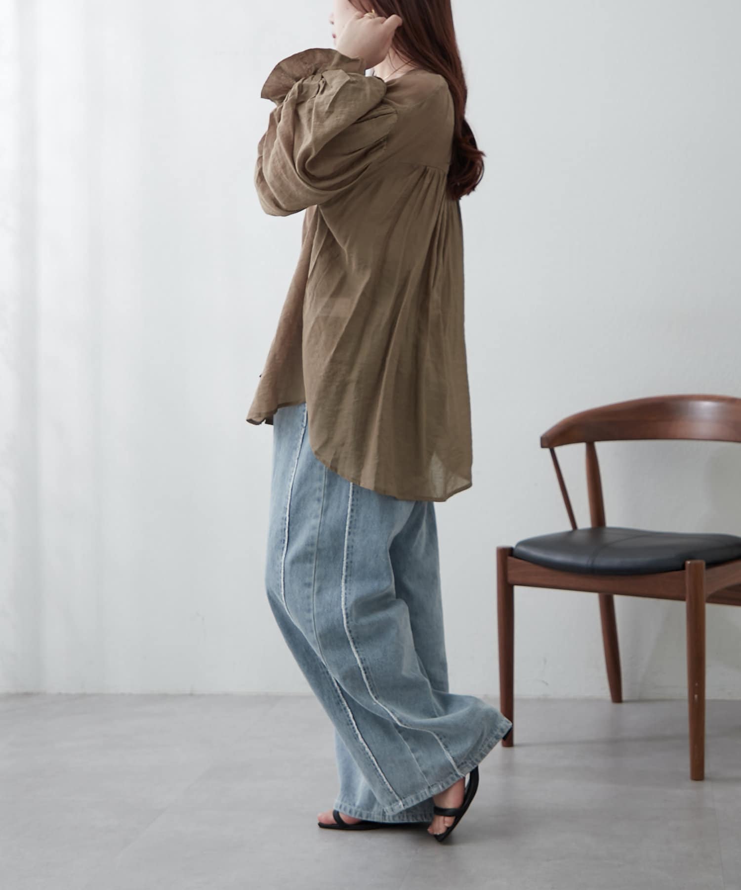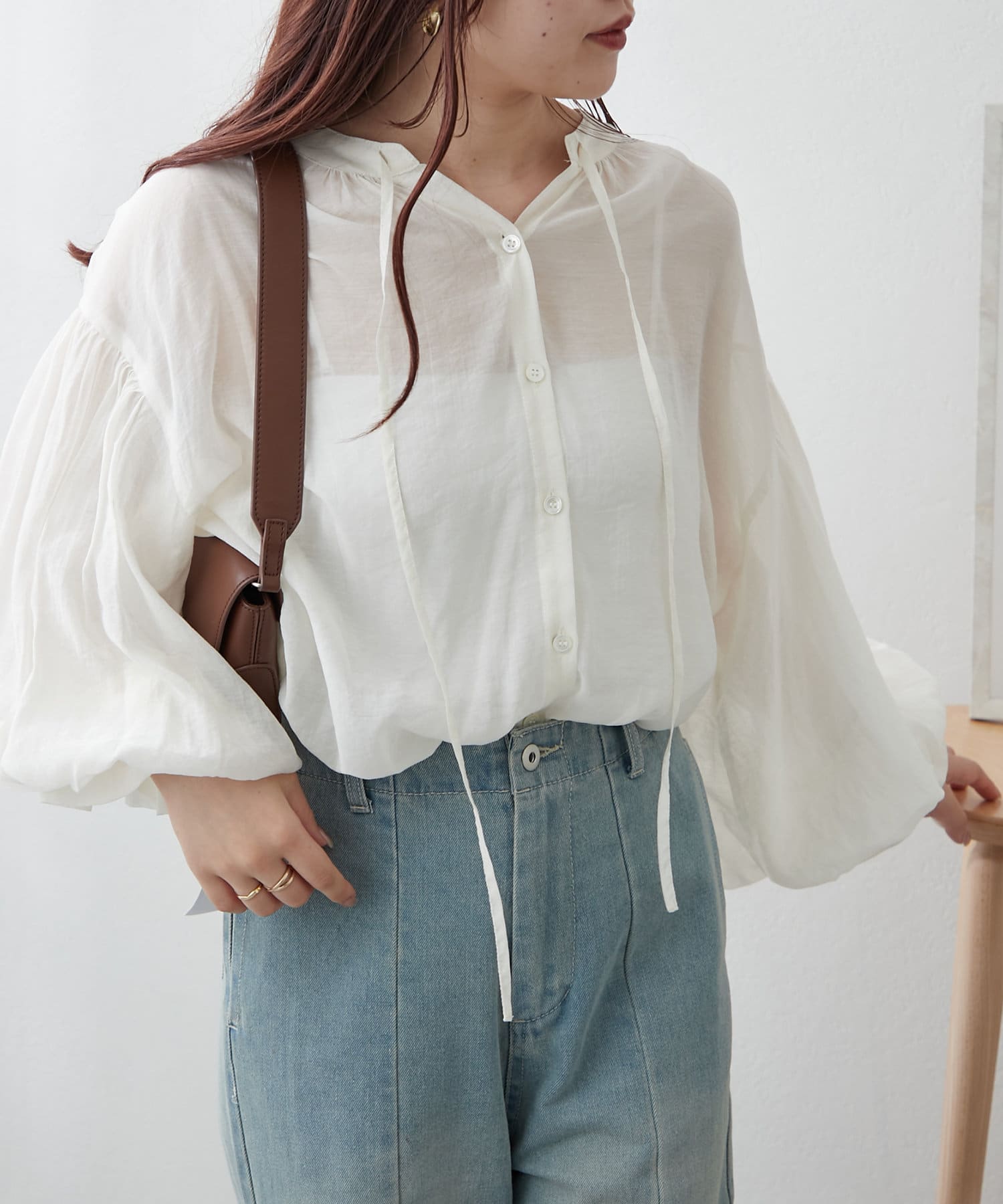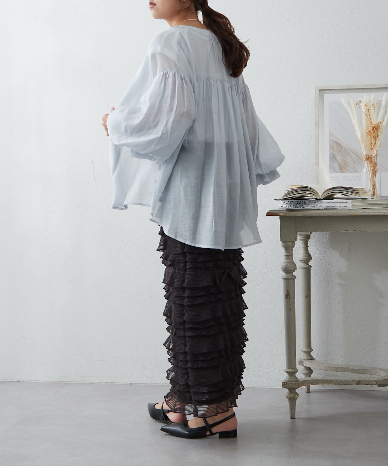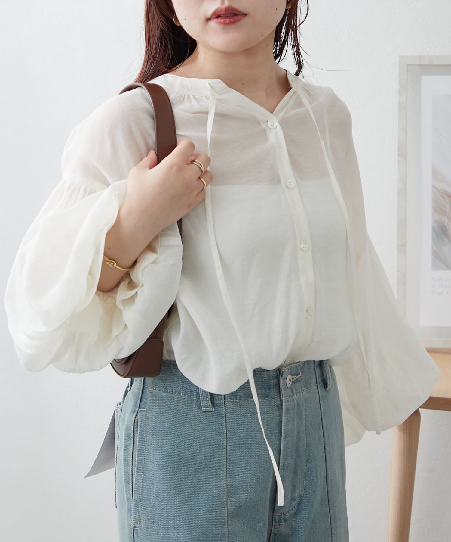 ・程よいルーズ感のあるサイジングとボリューム感のあるお袖がポイントのブラウス