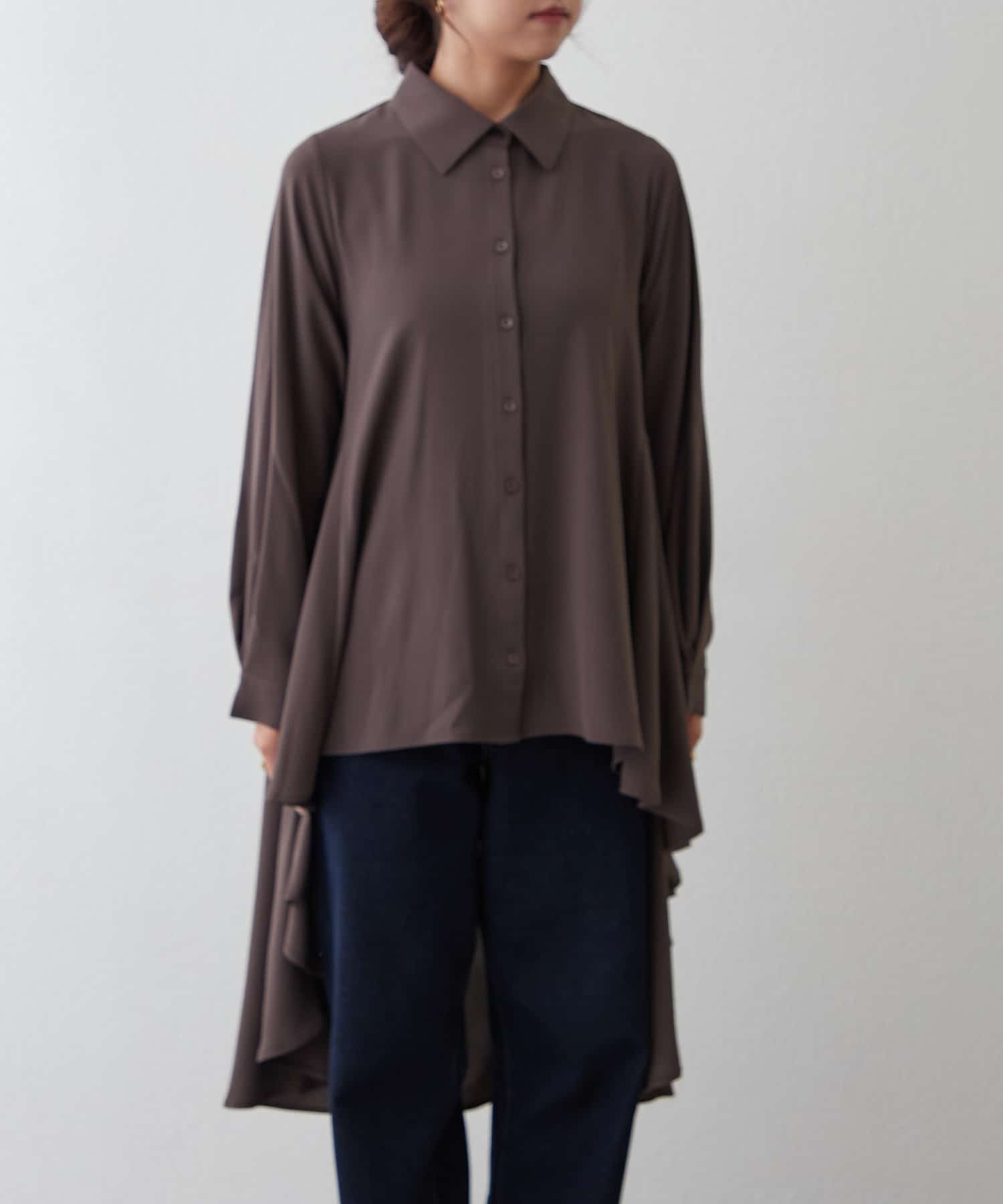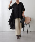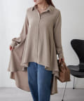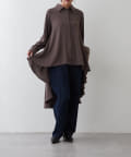 ・ランダムに揺れるテールのようなデザインがドラマティックなロングブラウス。