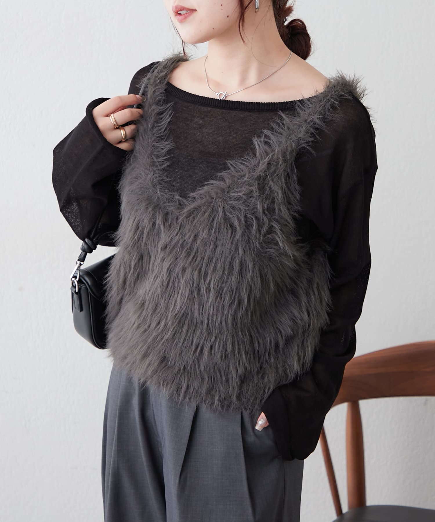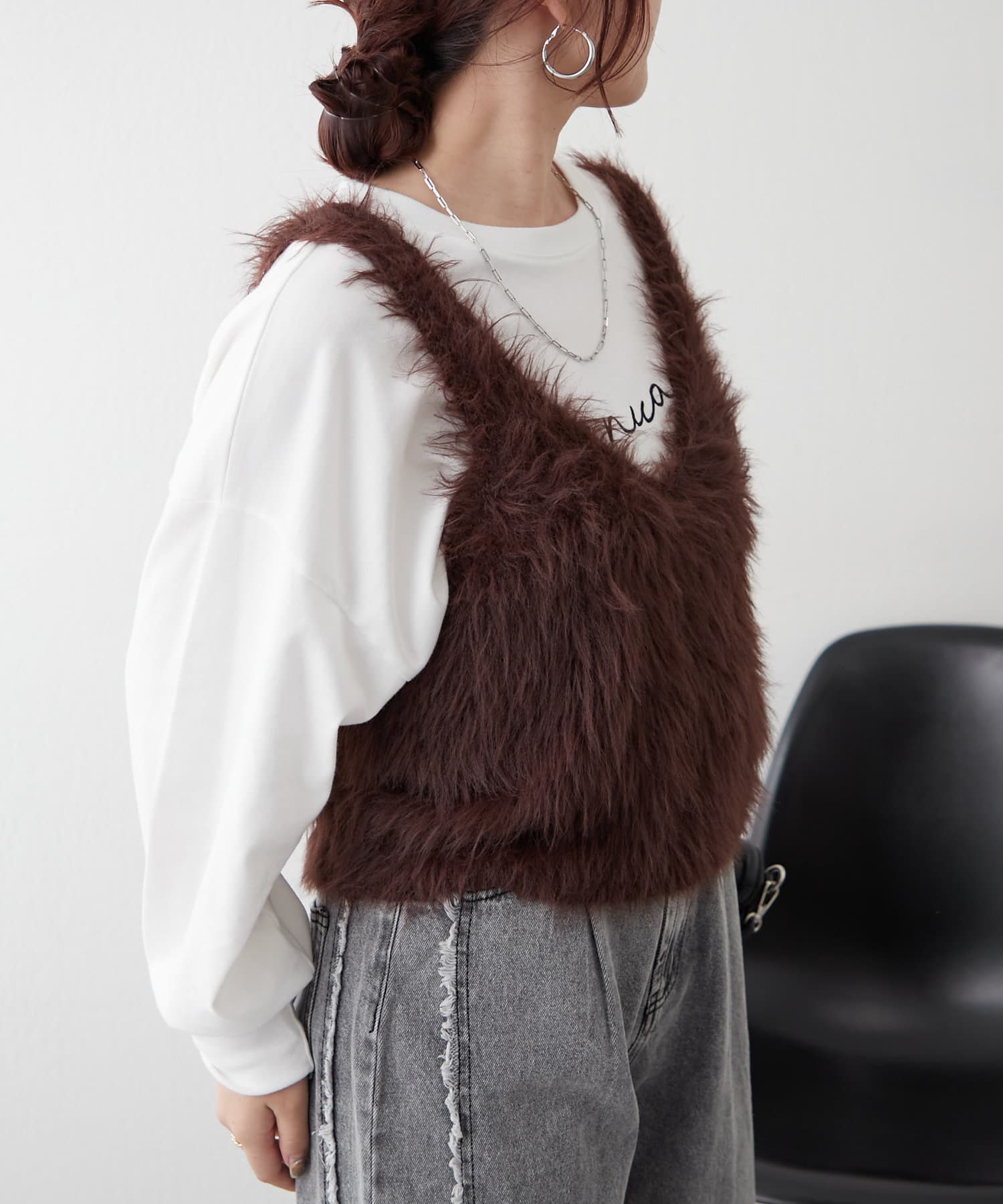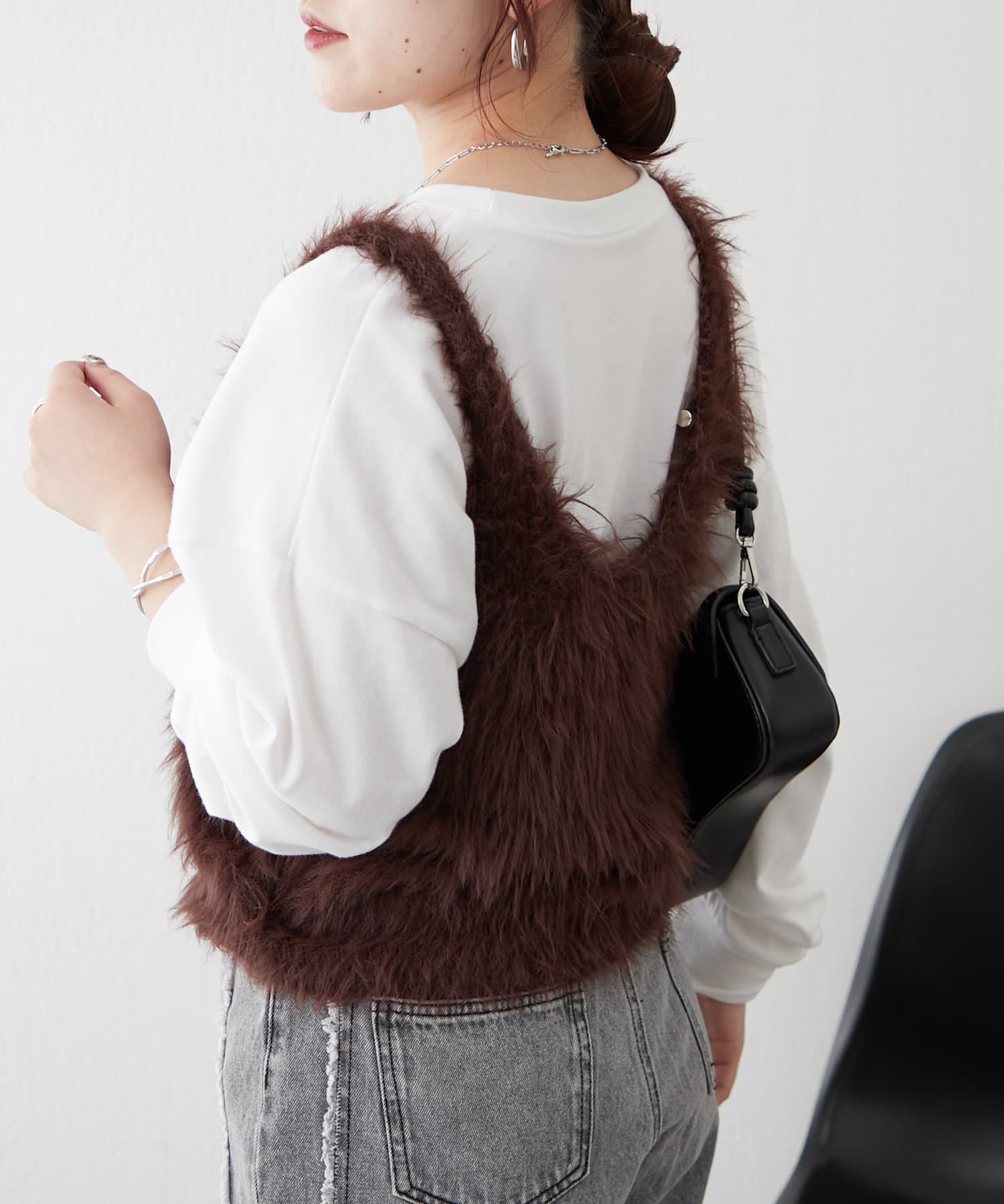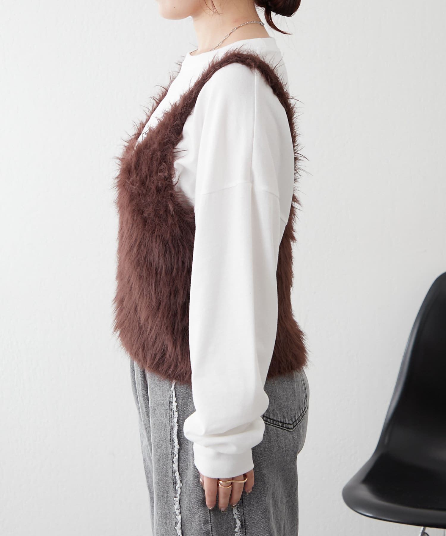 ・ずっと触っていたくなるファー素材のショートベスト