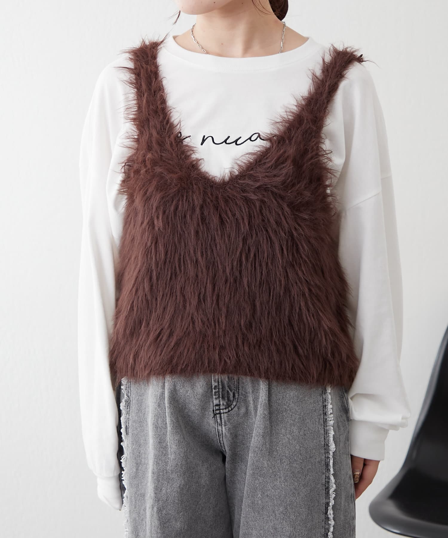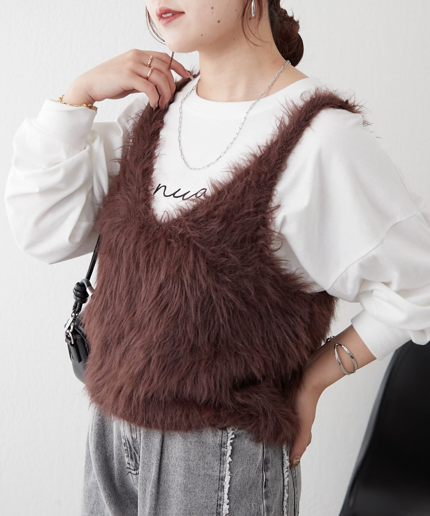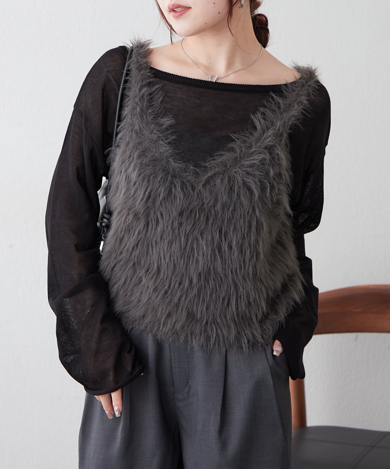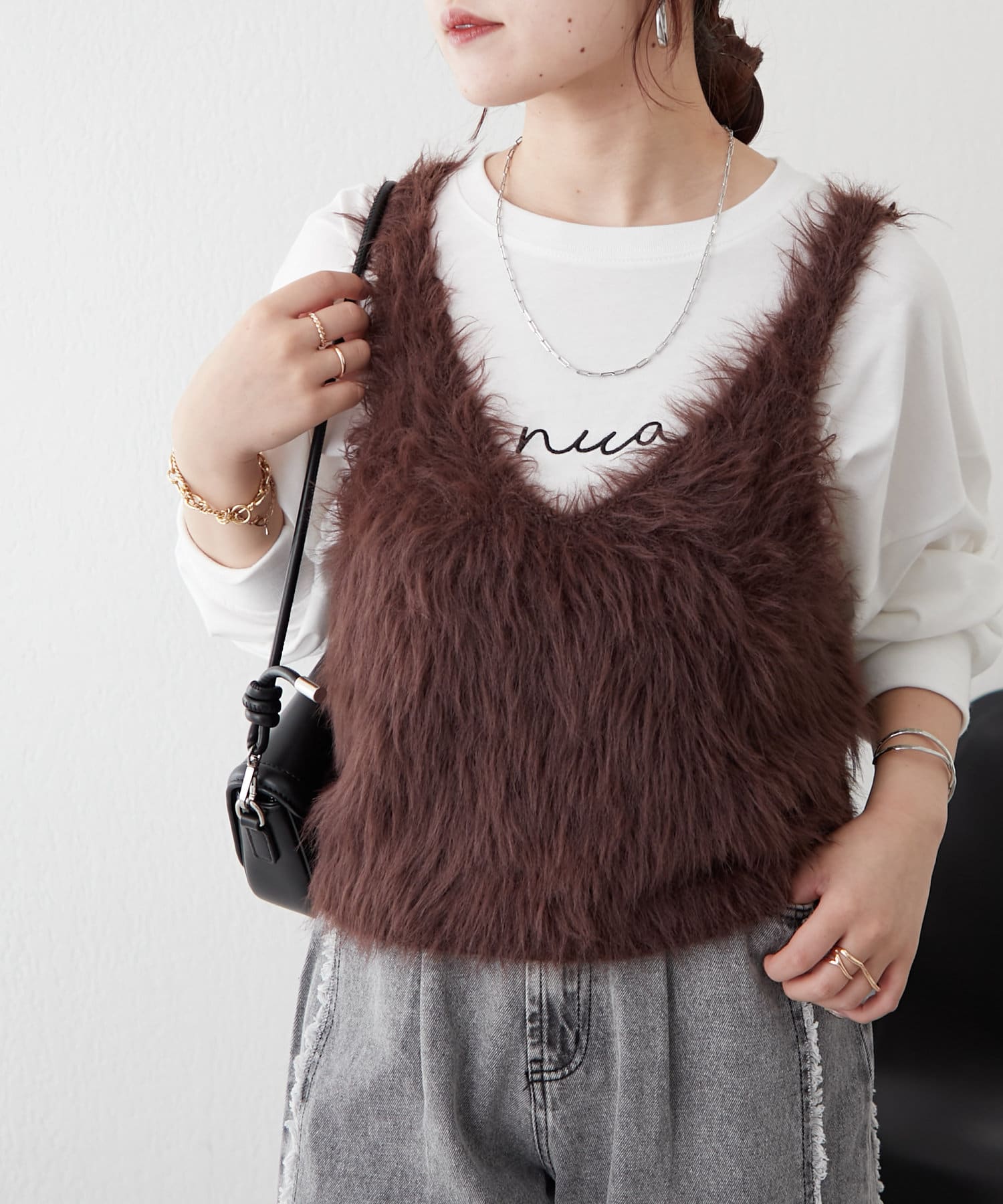 ・ずっと触っていたくなるファー素材のショートベスト