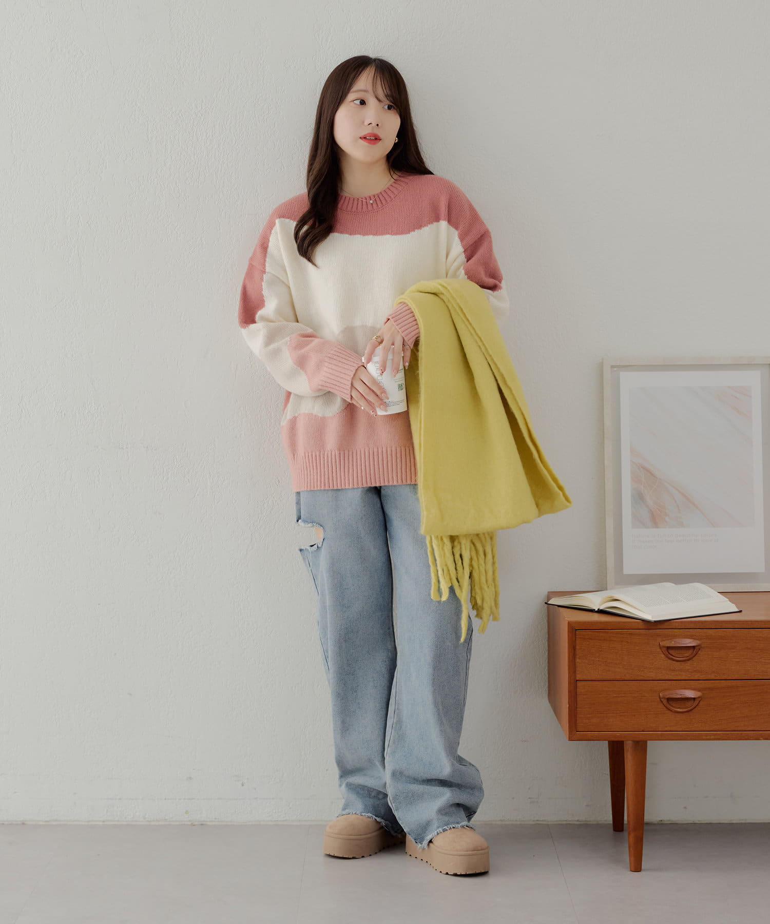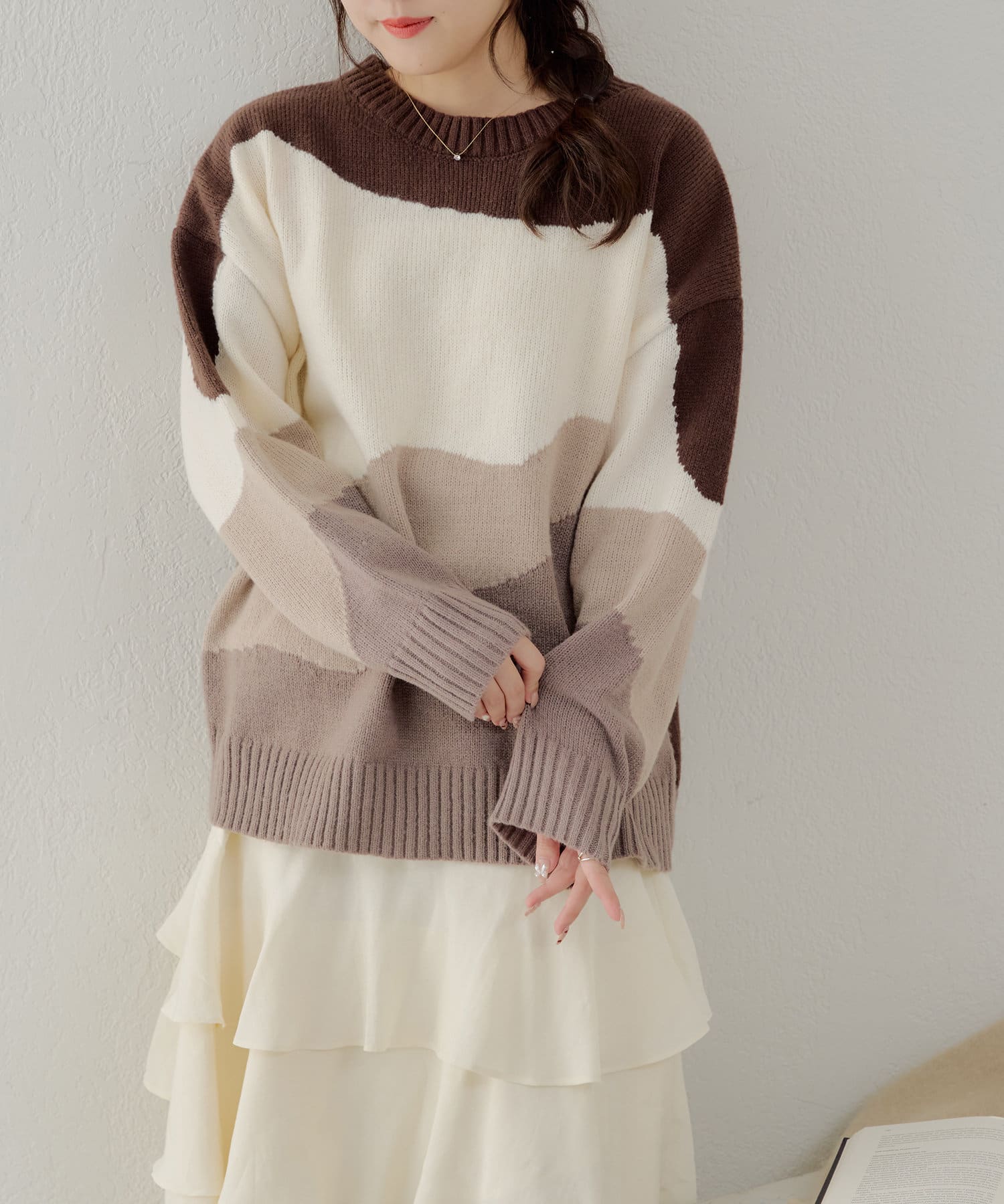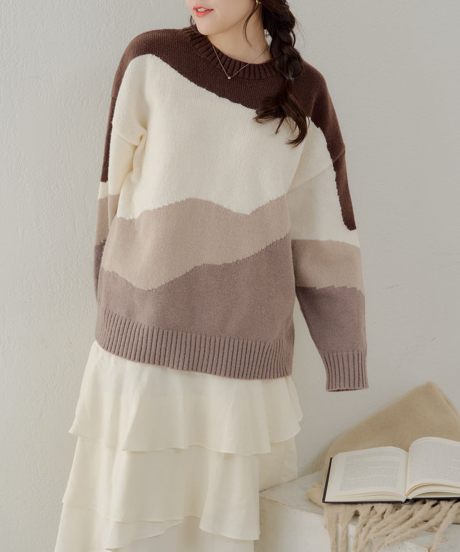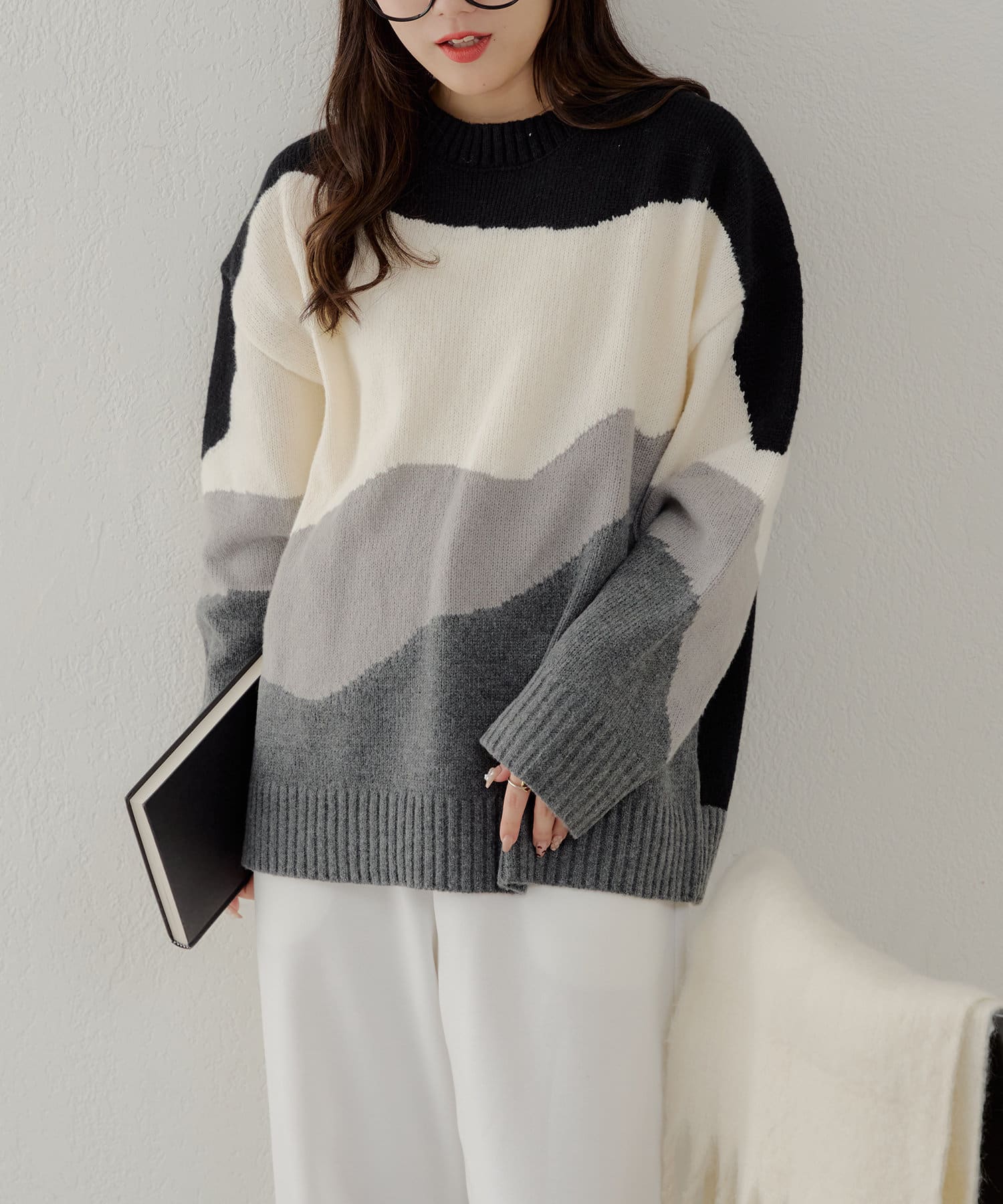 ・グラデーションのカラー切替がかわいい主役級ニット。