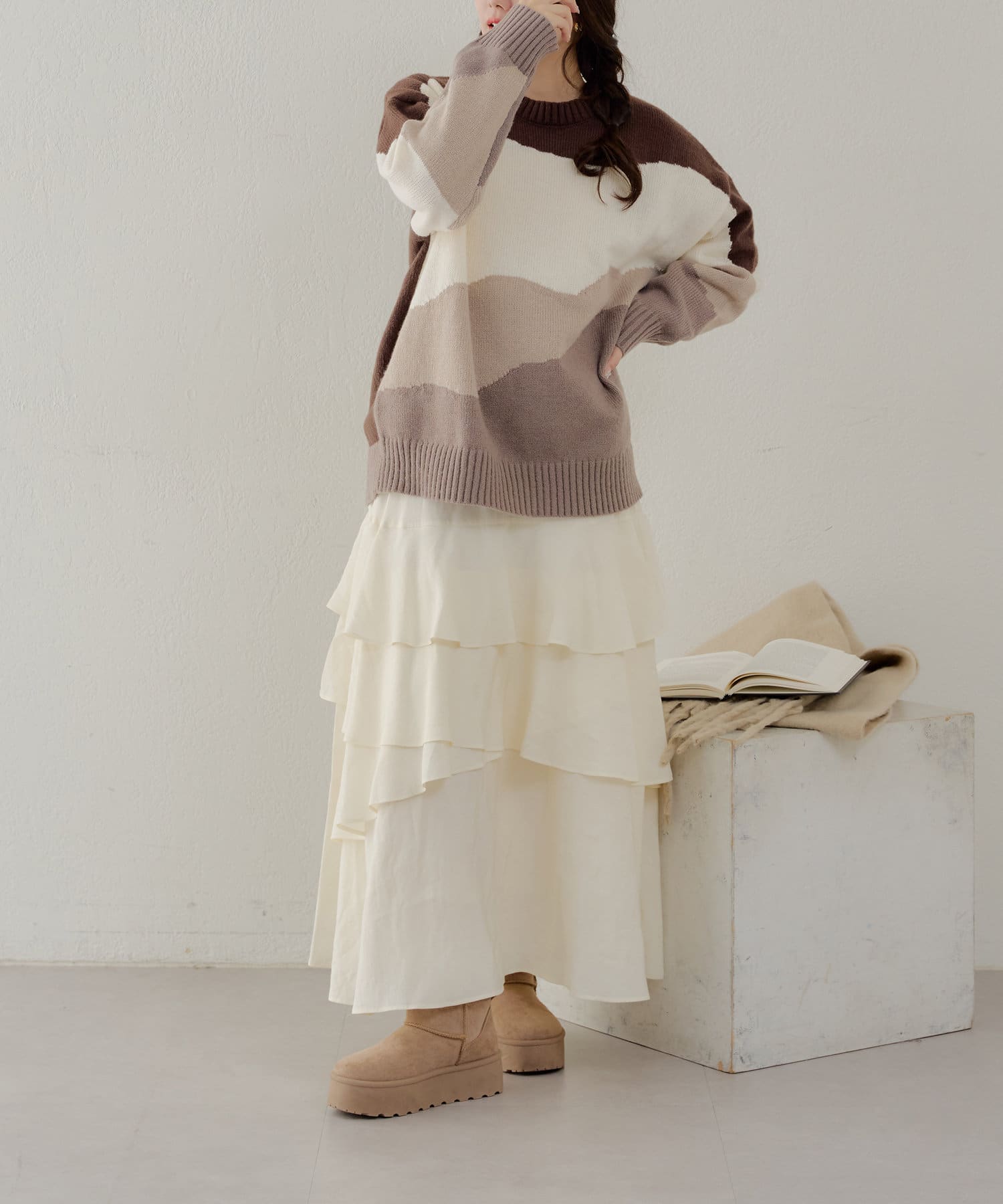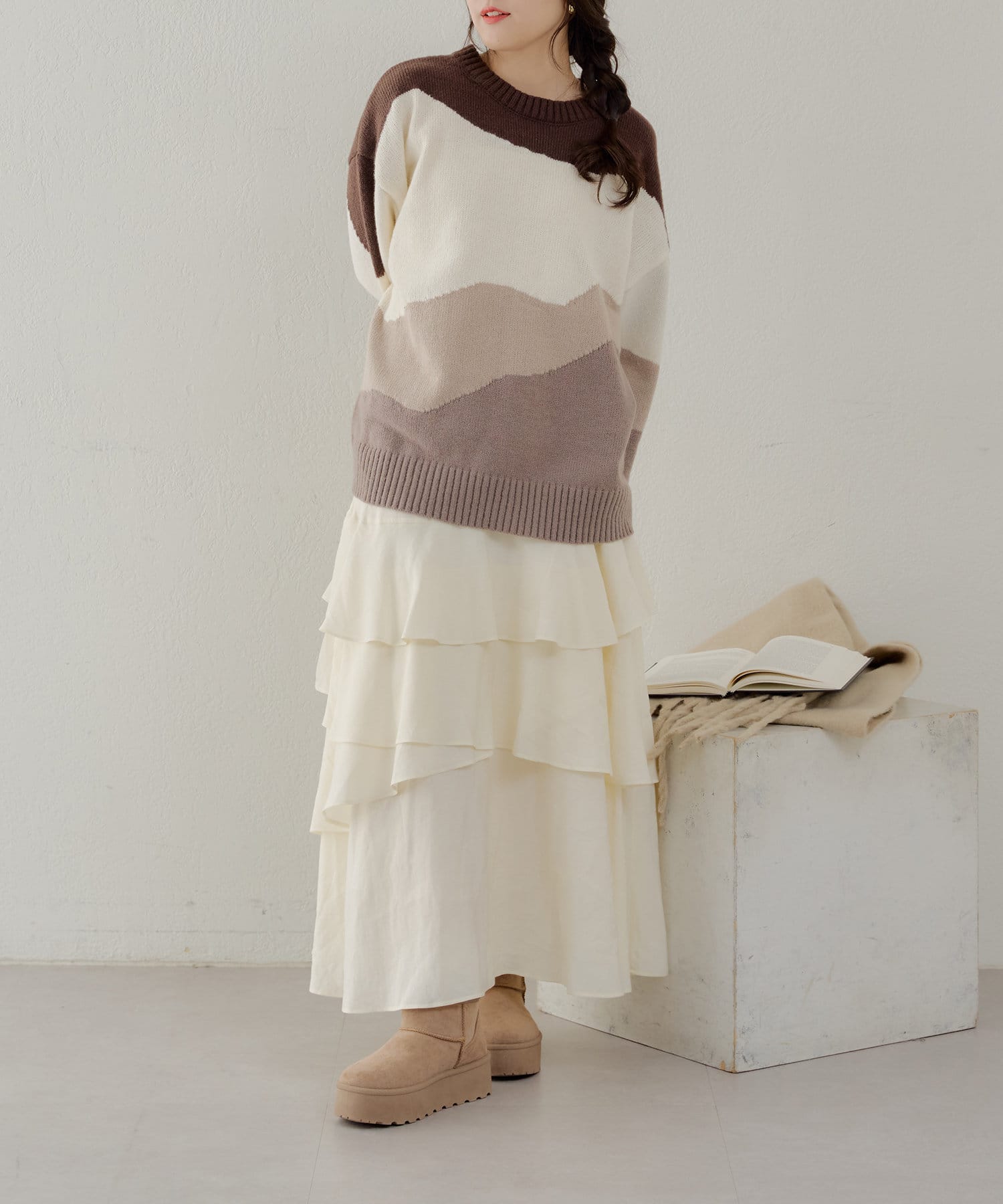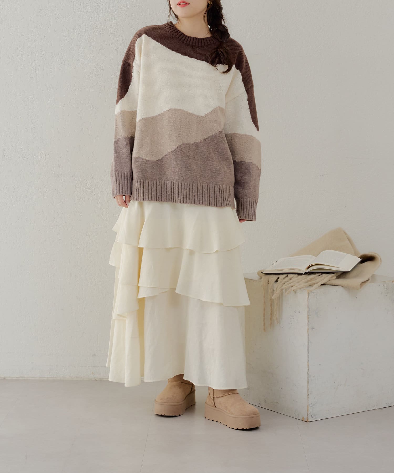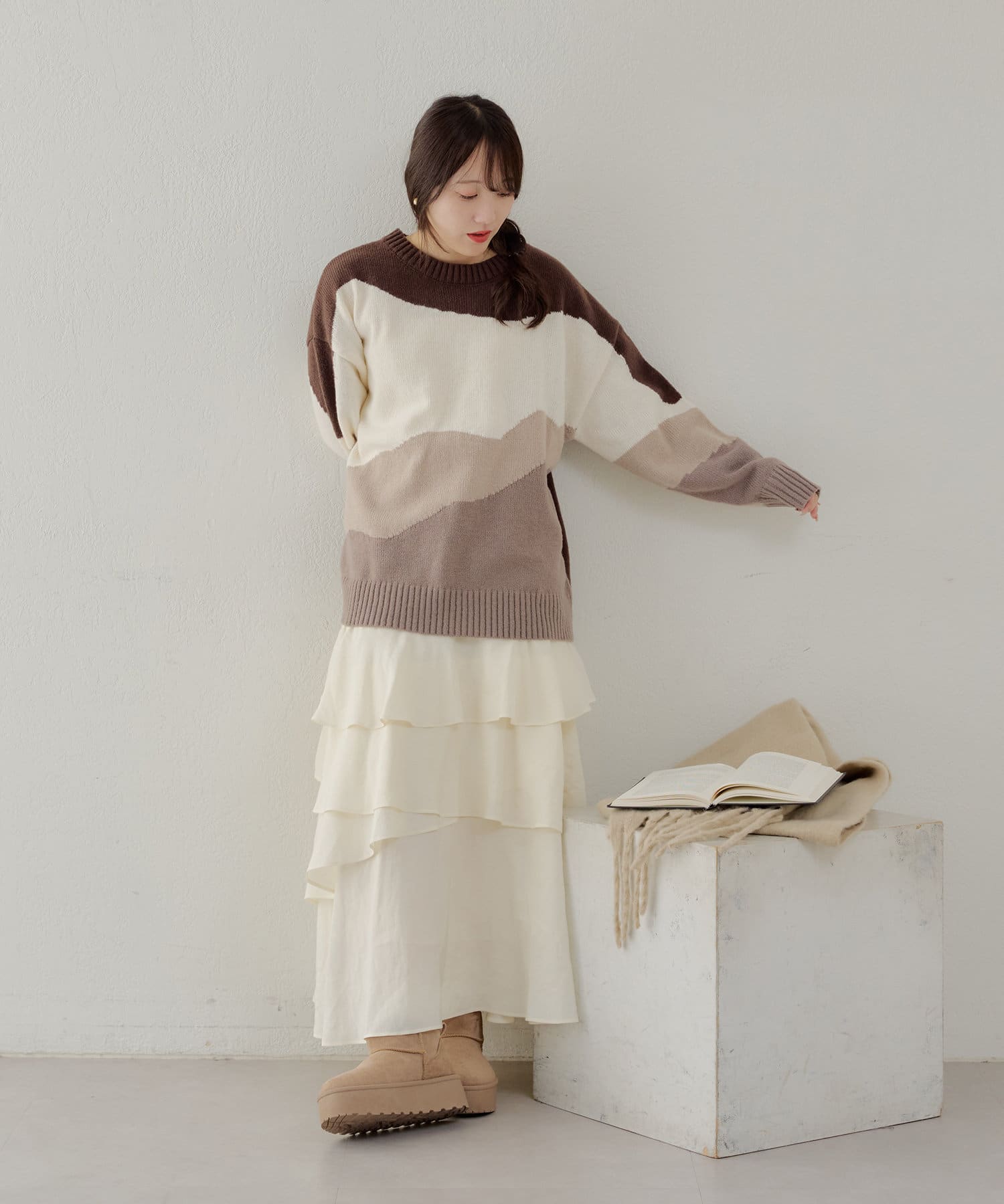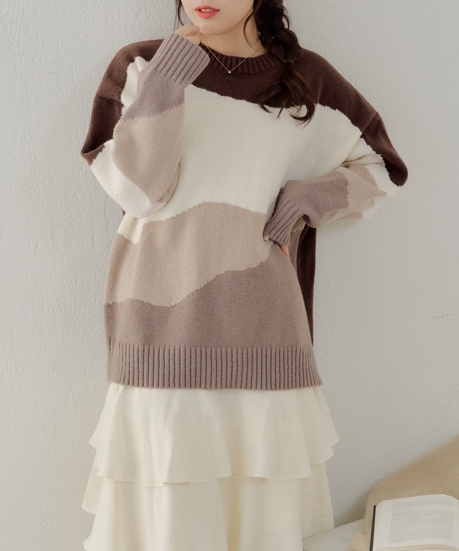 ・グラデーションのカラー切替がかわいい主役級ニット。