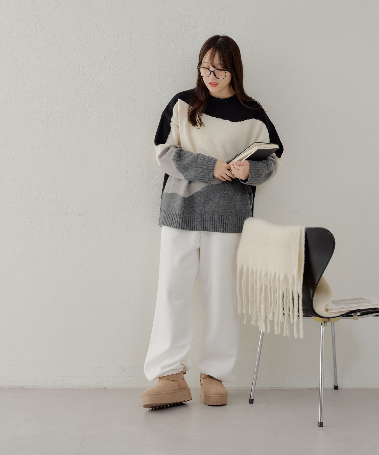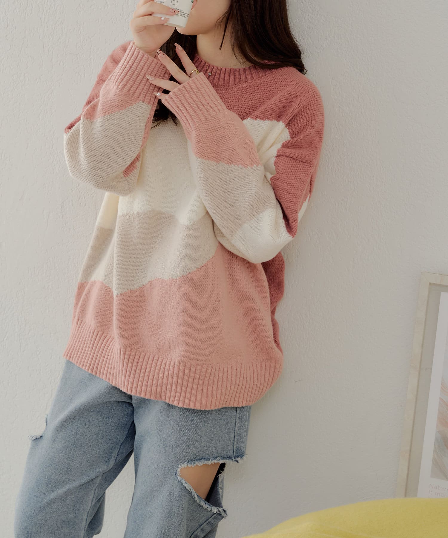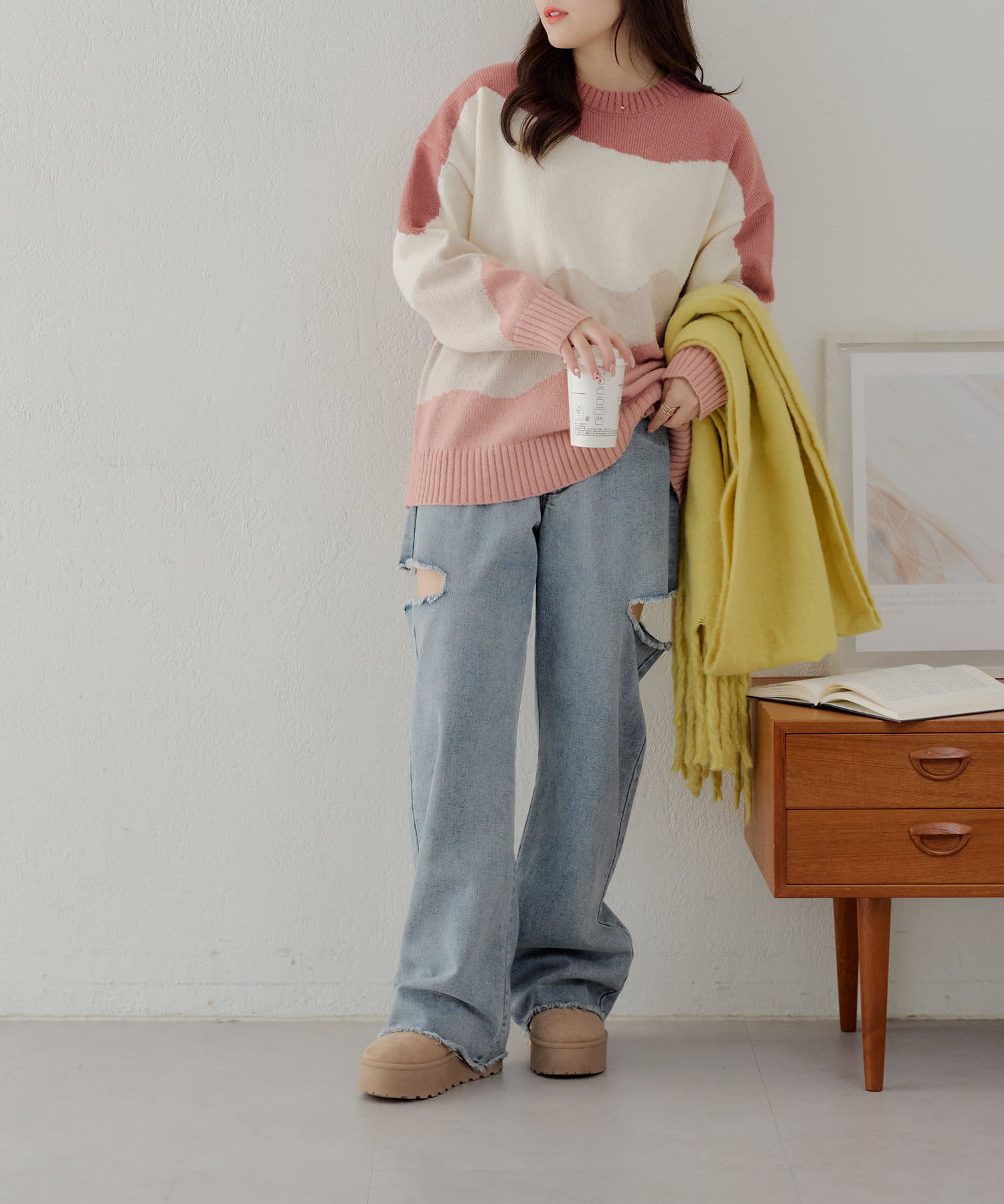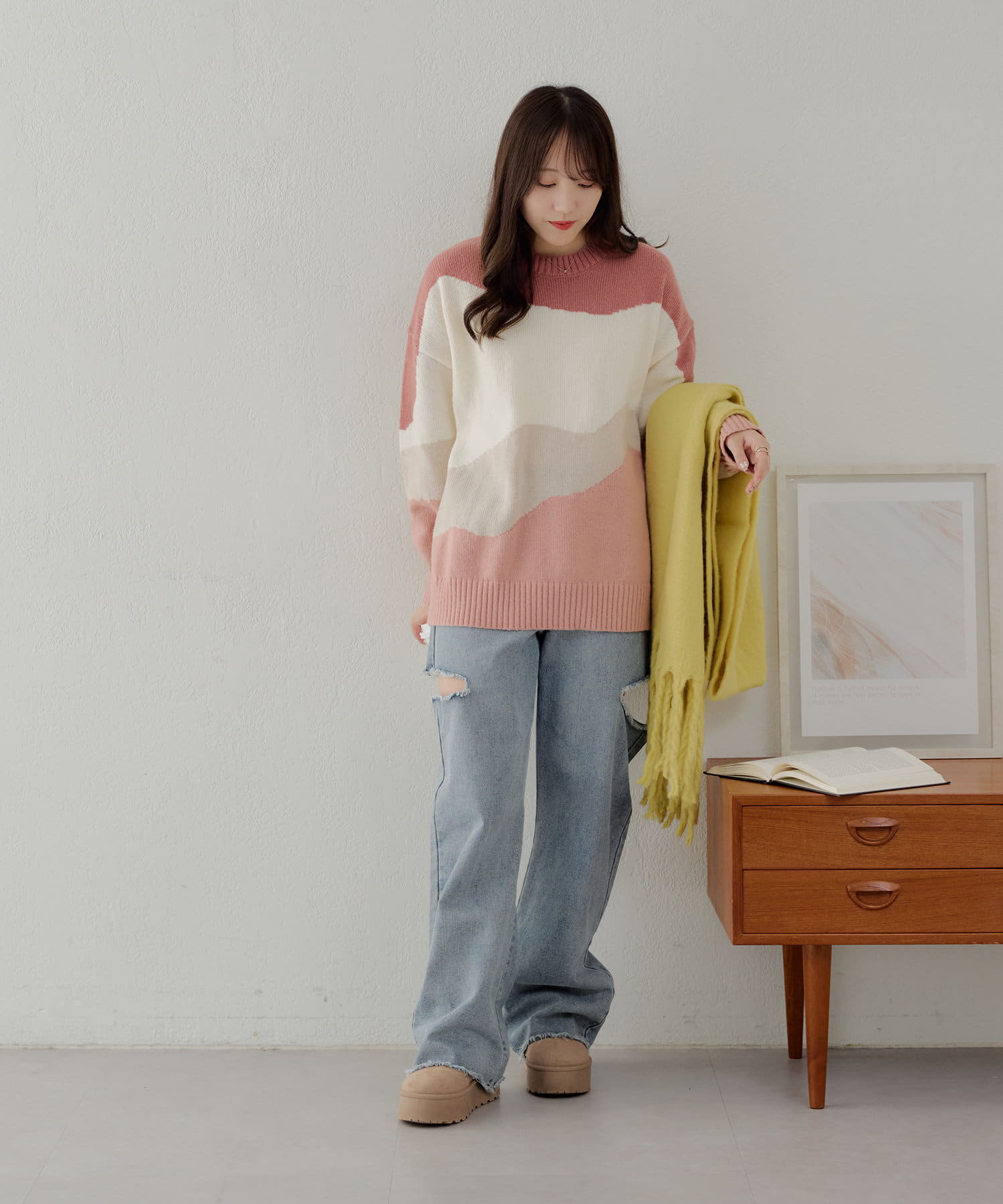 ・グラデーションのカラー切替がかわいい主役級ニット。
