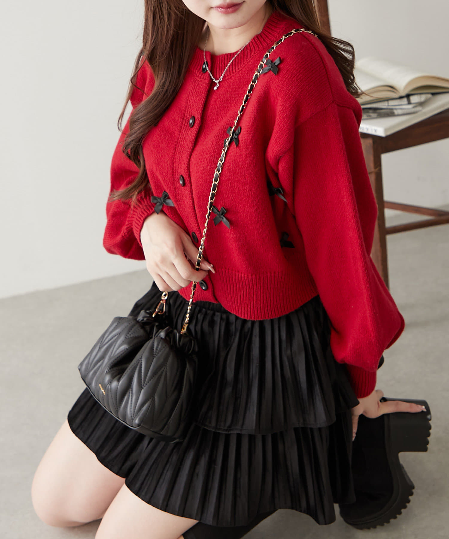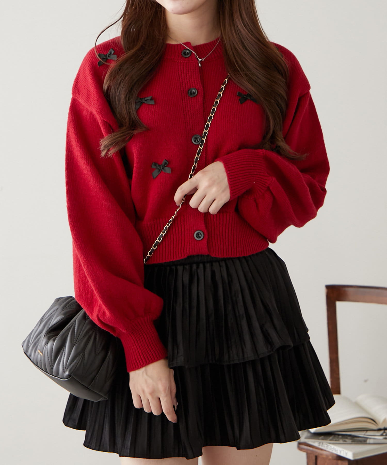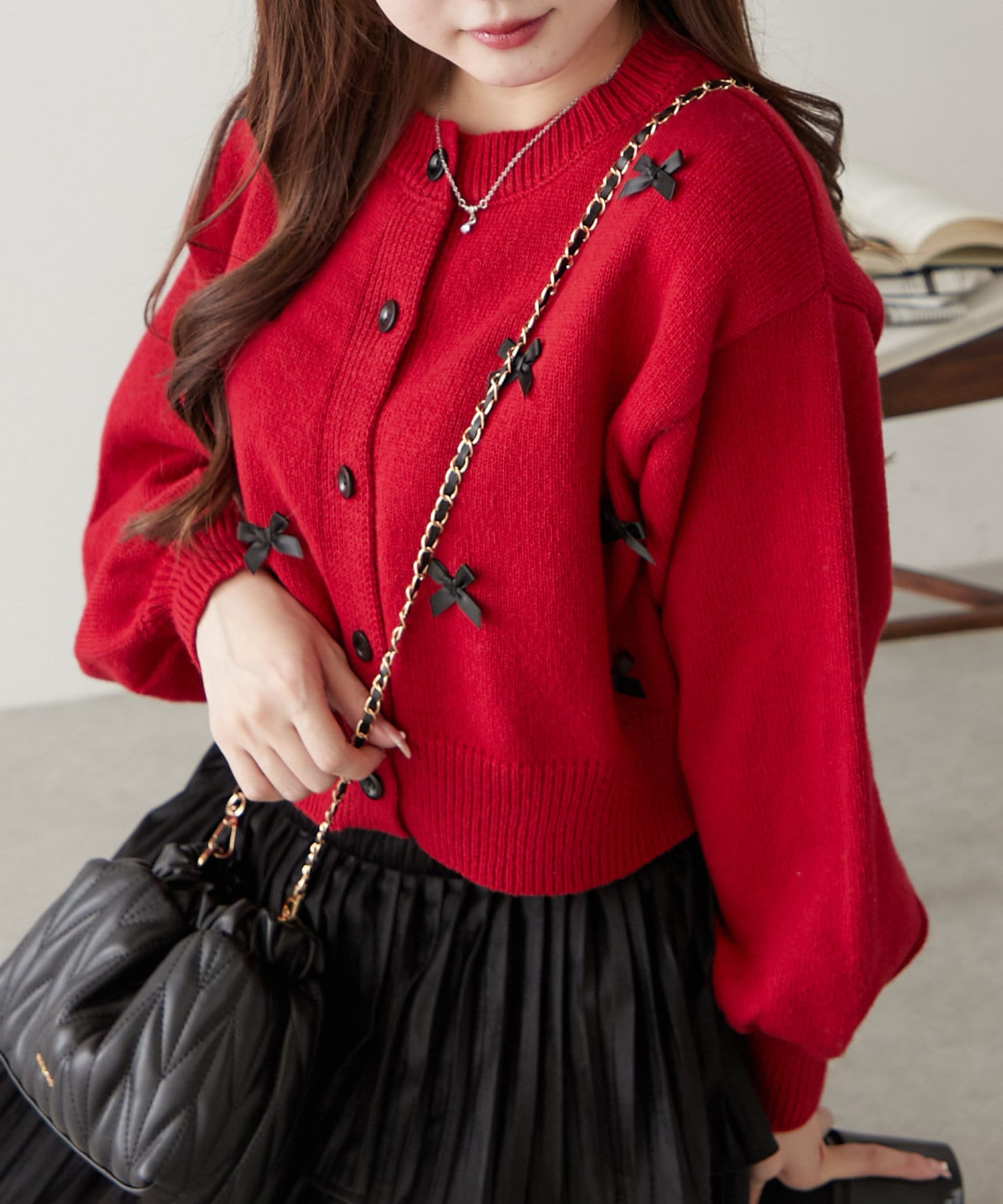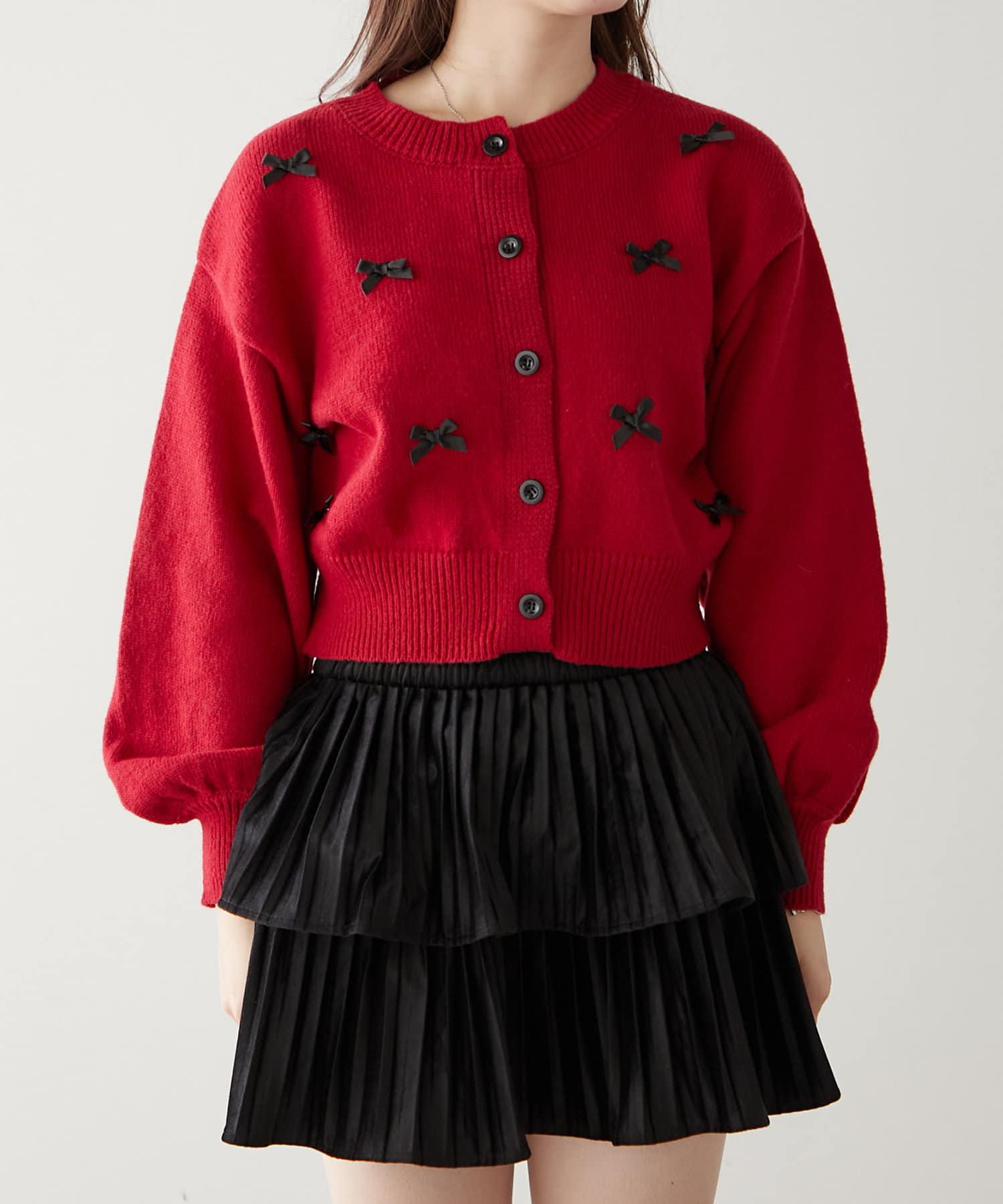 散りばめられたリボンが可愛いカーディガン♪