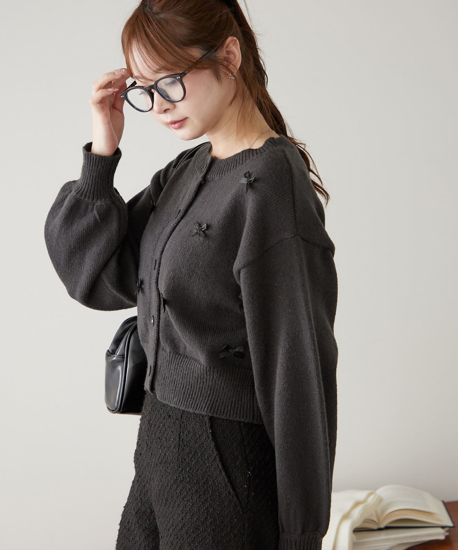 【MARCHES】リボン付クルーカーデイガン