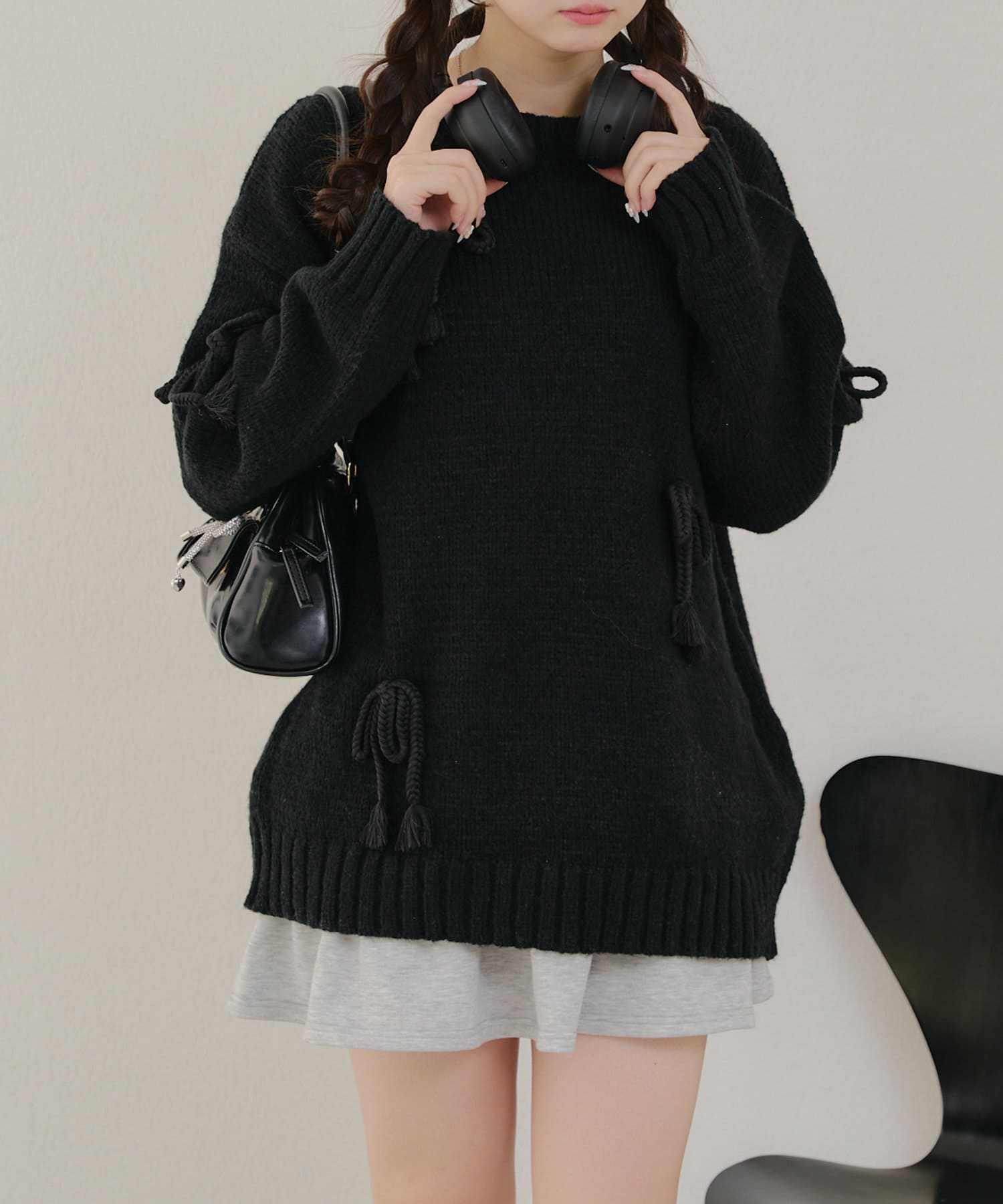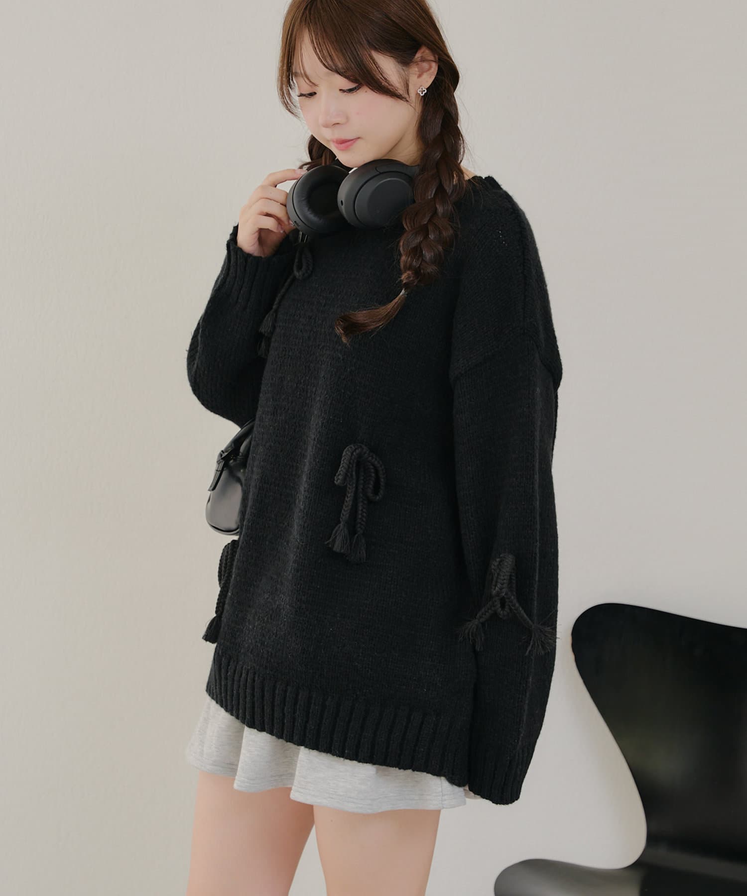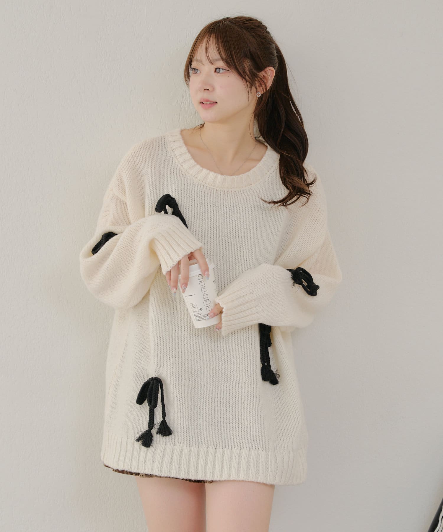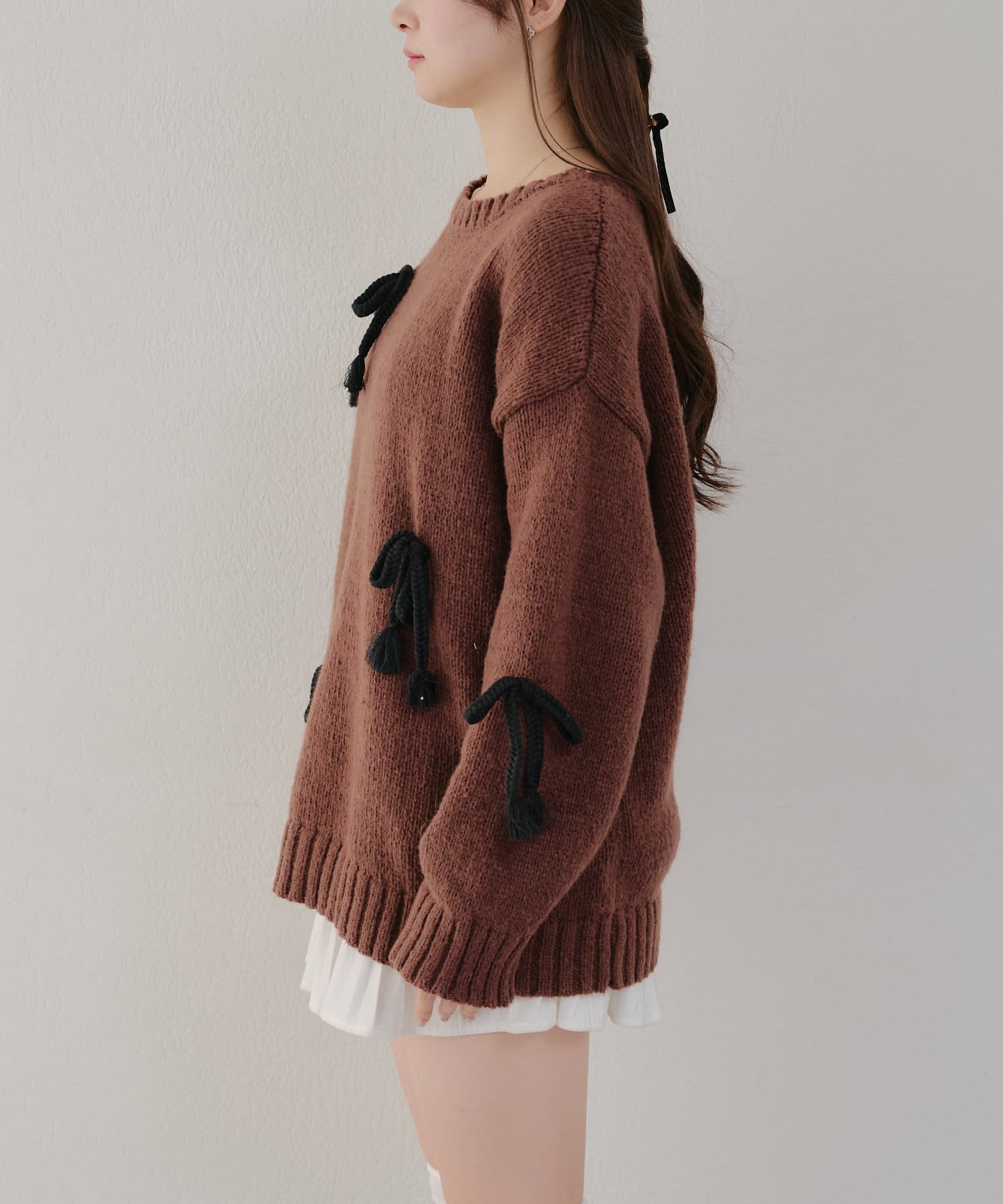 ・シンプルなBIGシルエットニットにリボンを施しました。