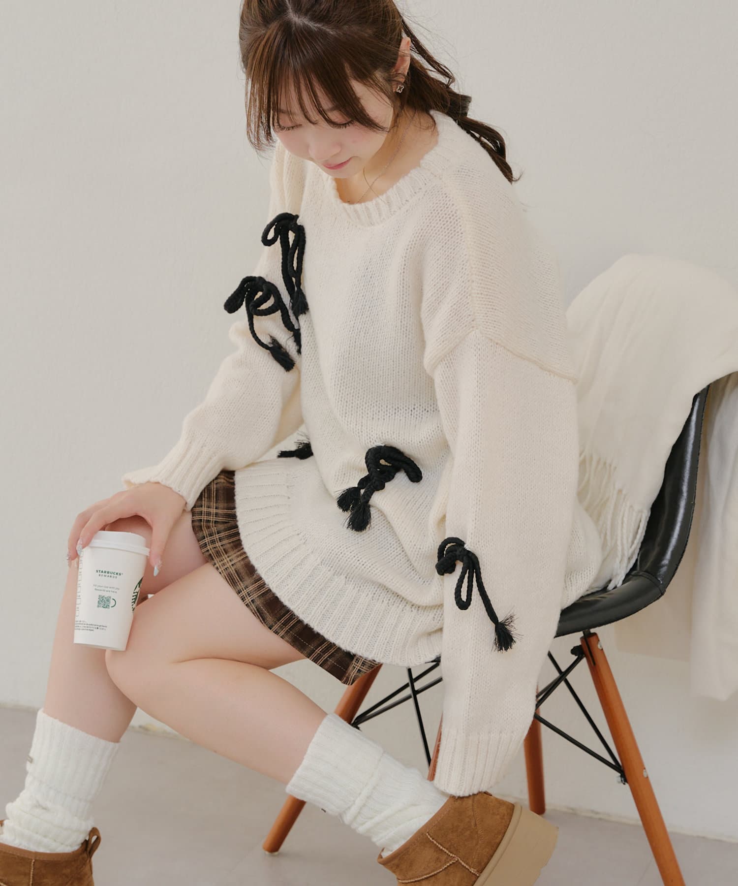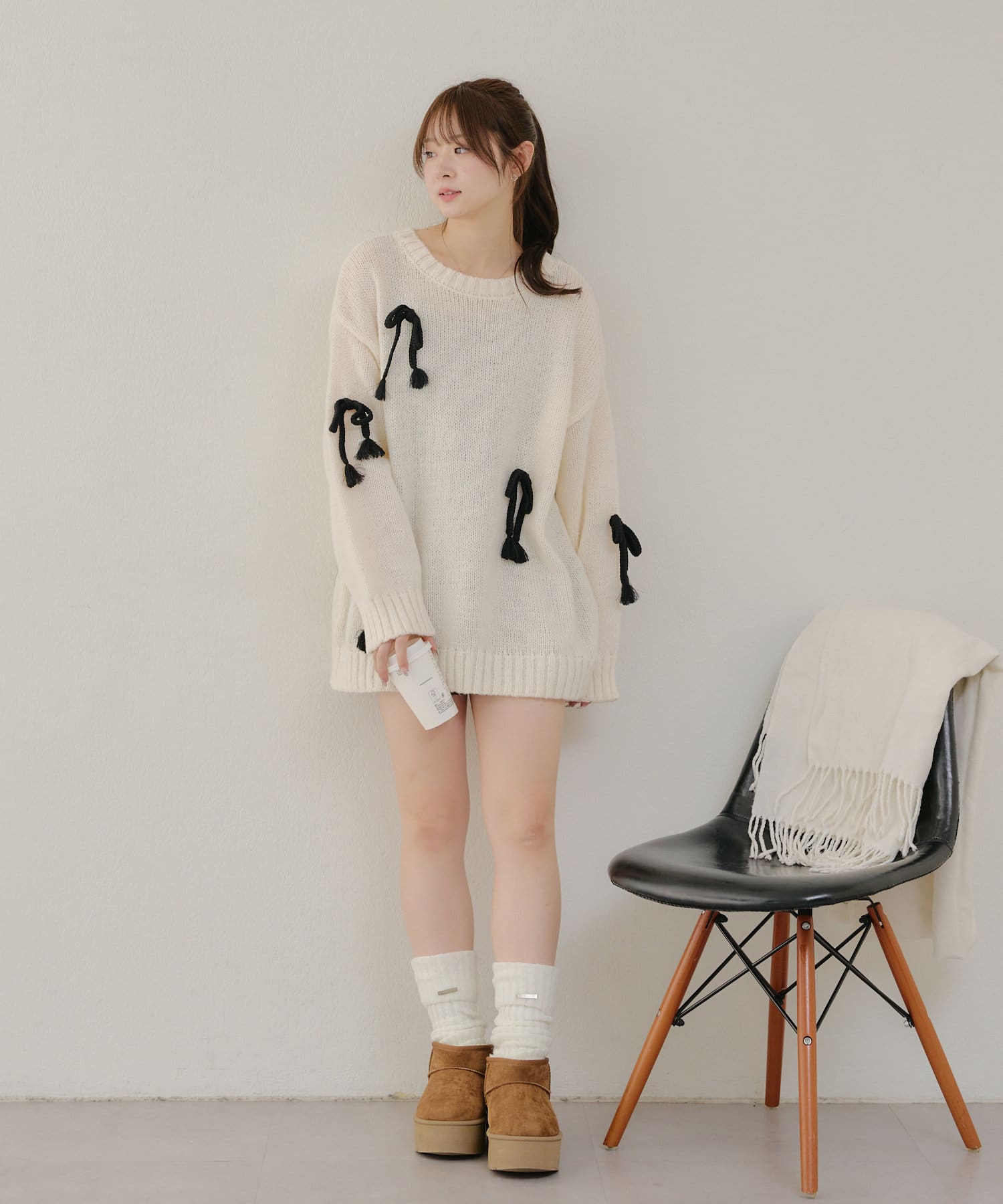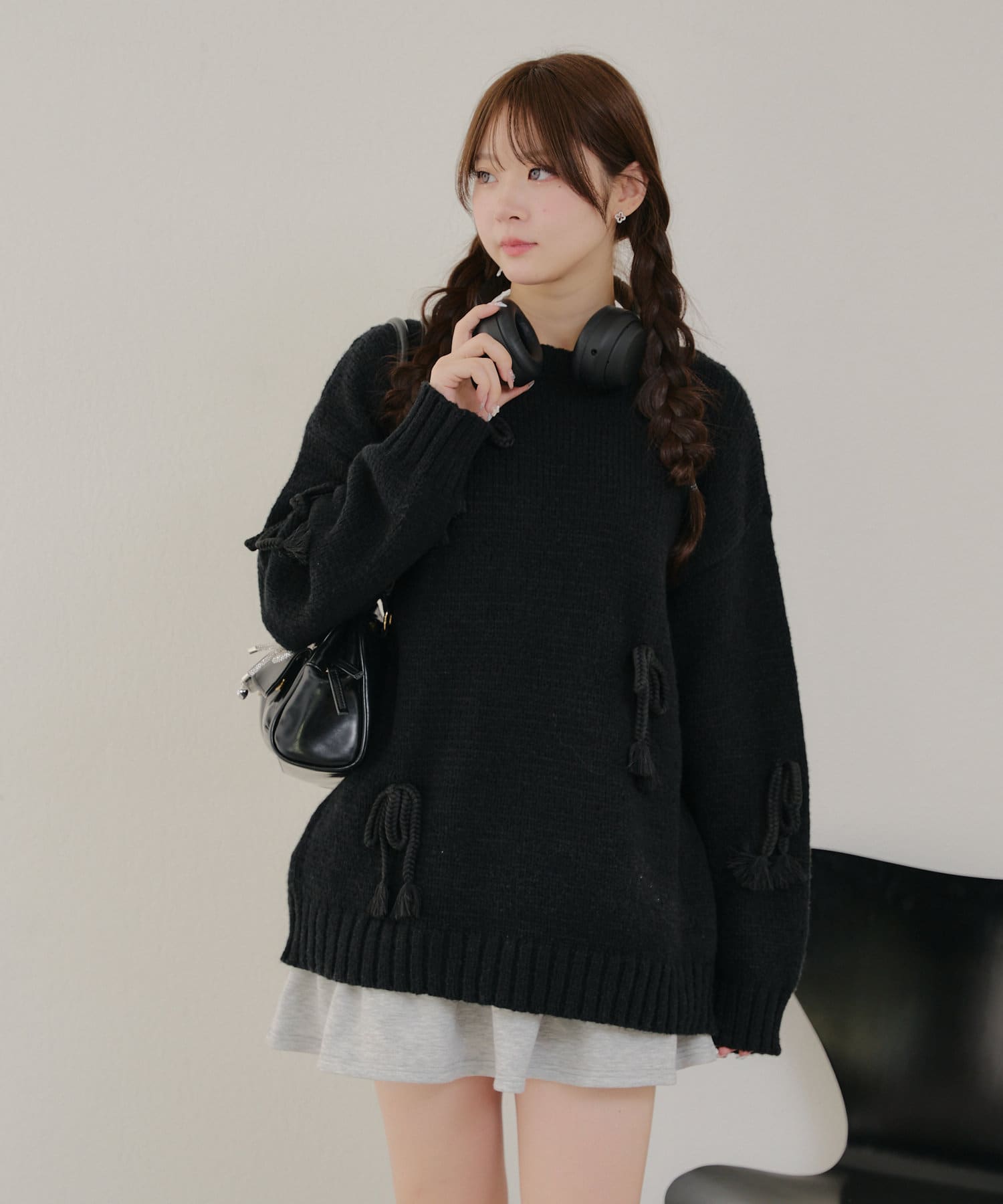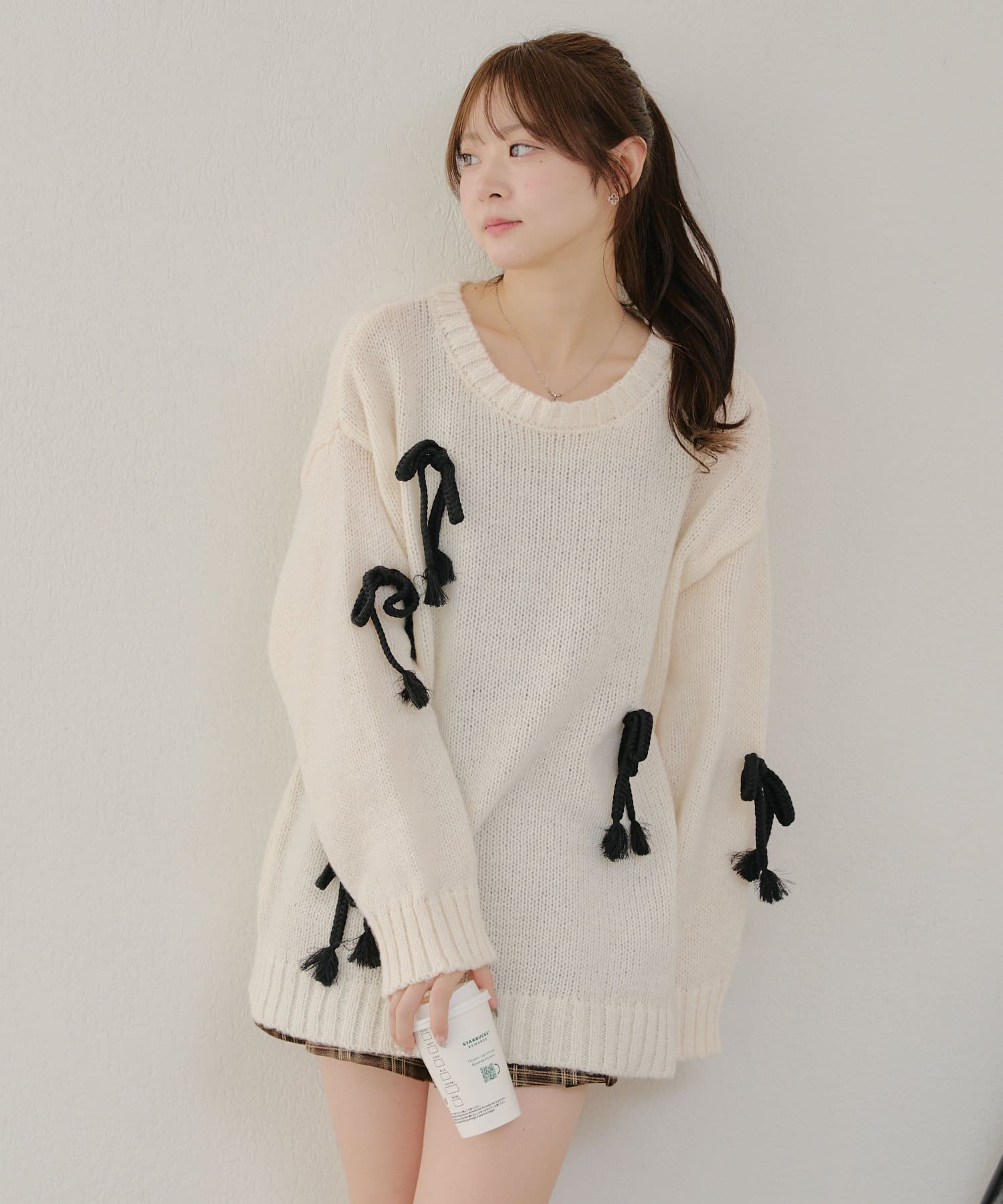 ・シンプルなBIGシルエットニットにリボンを施しました。