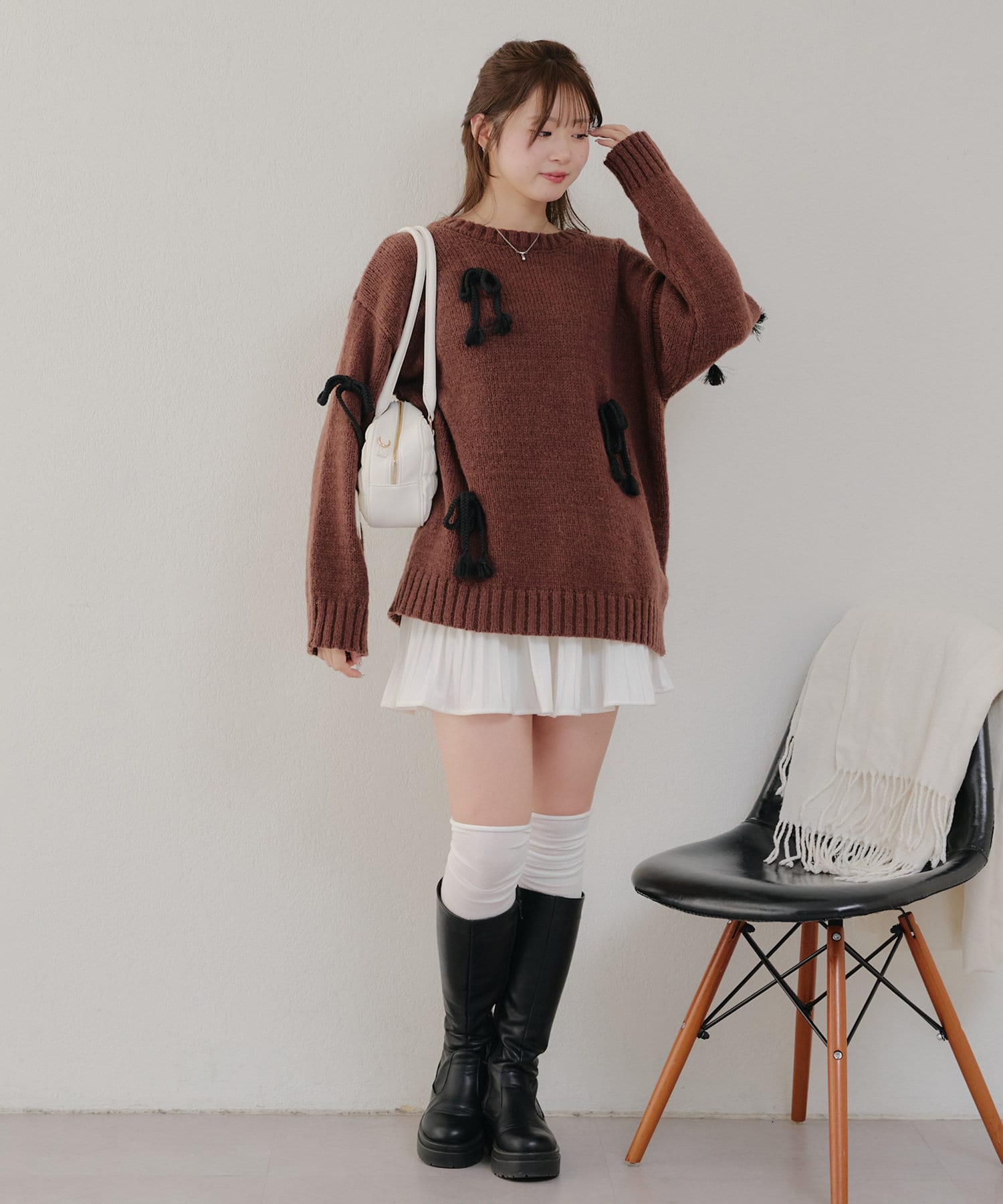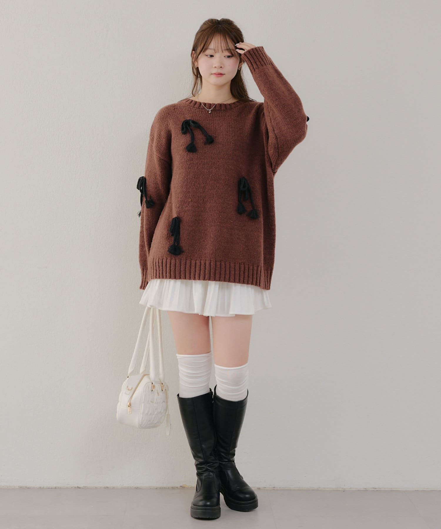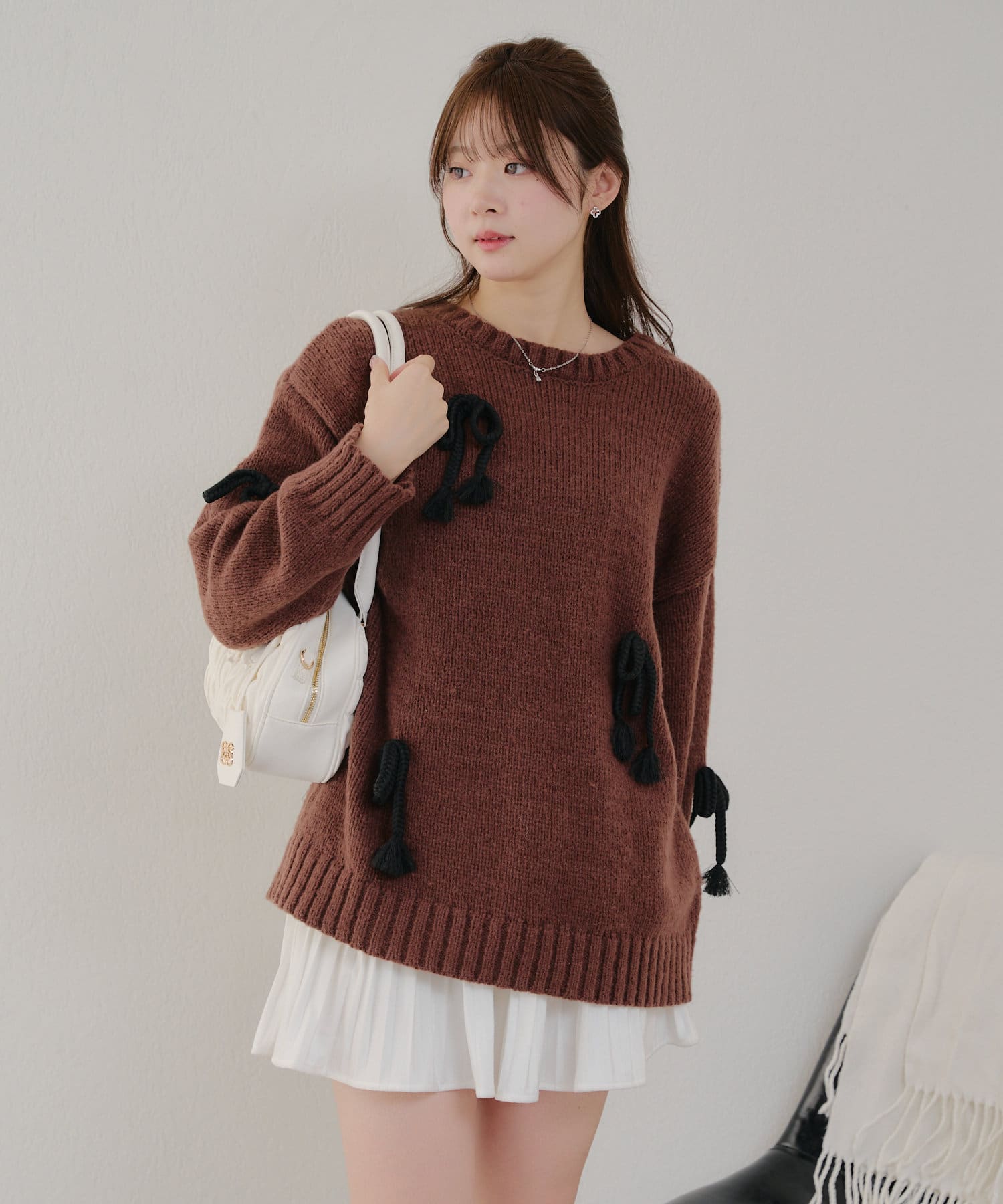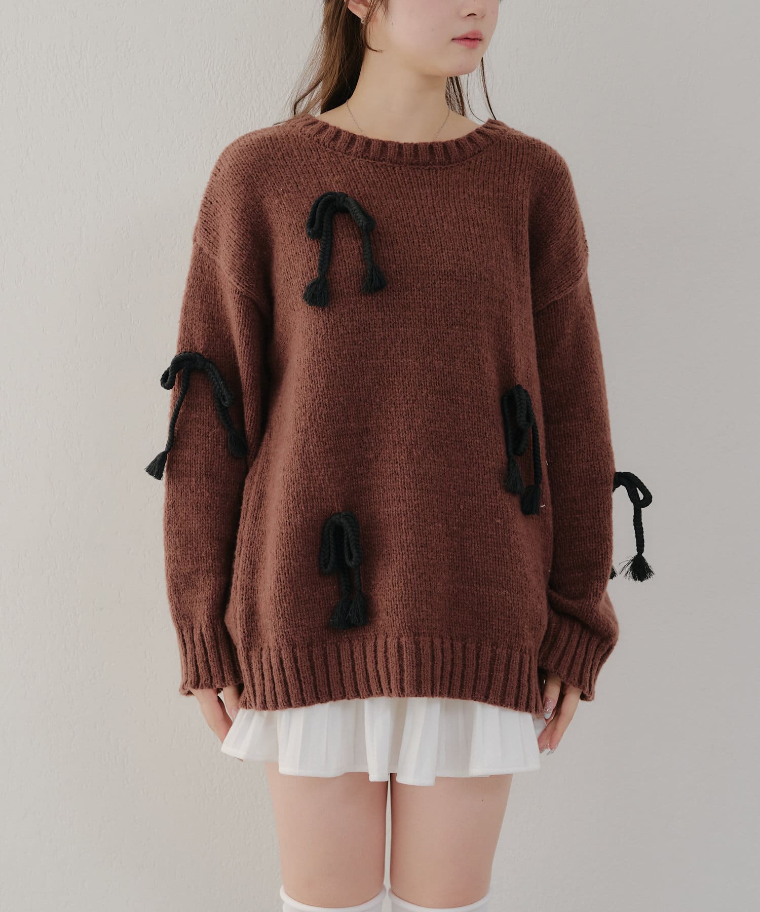 ・シンプルなBIGシルエットニットにリボンを施しました。