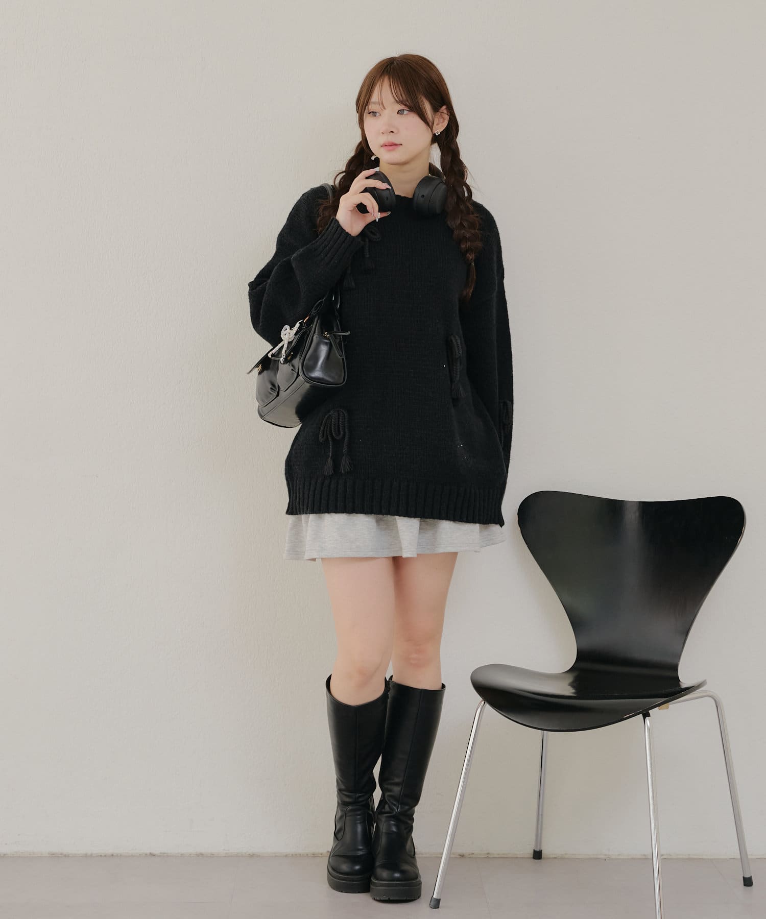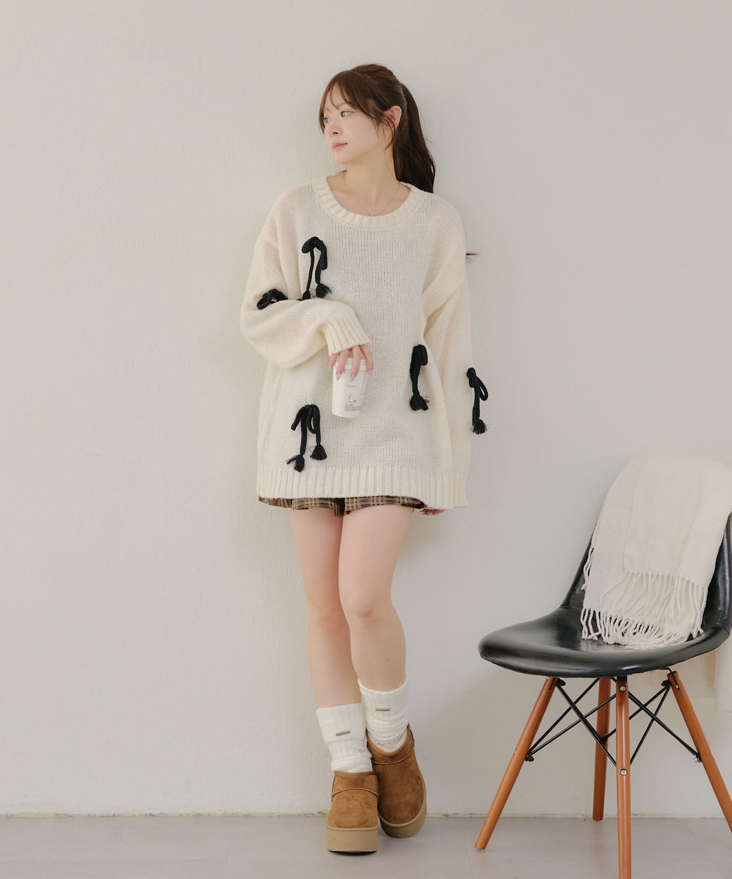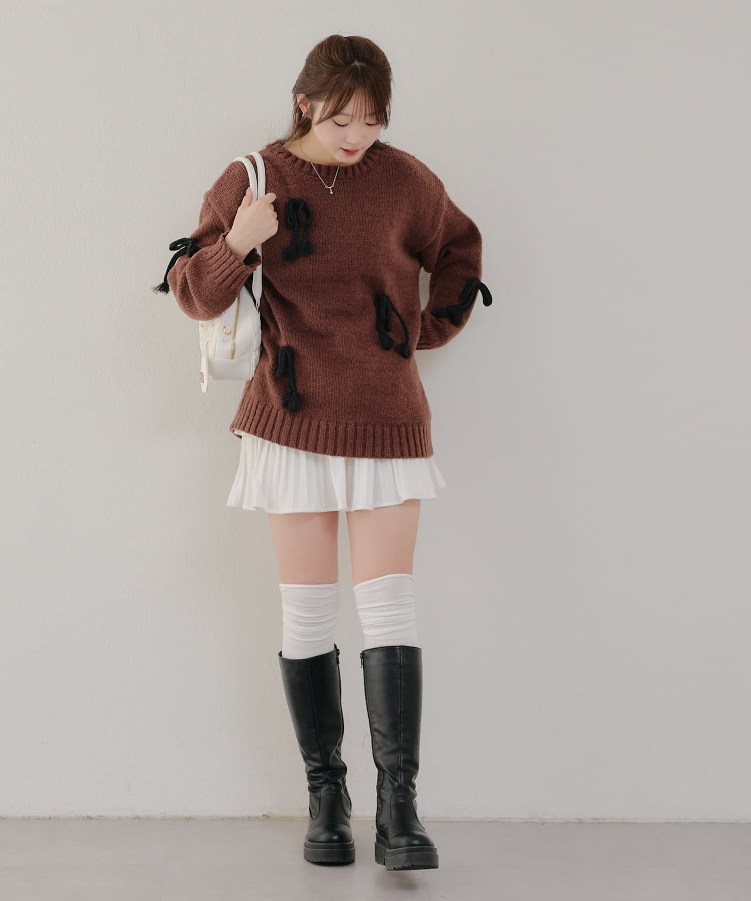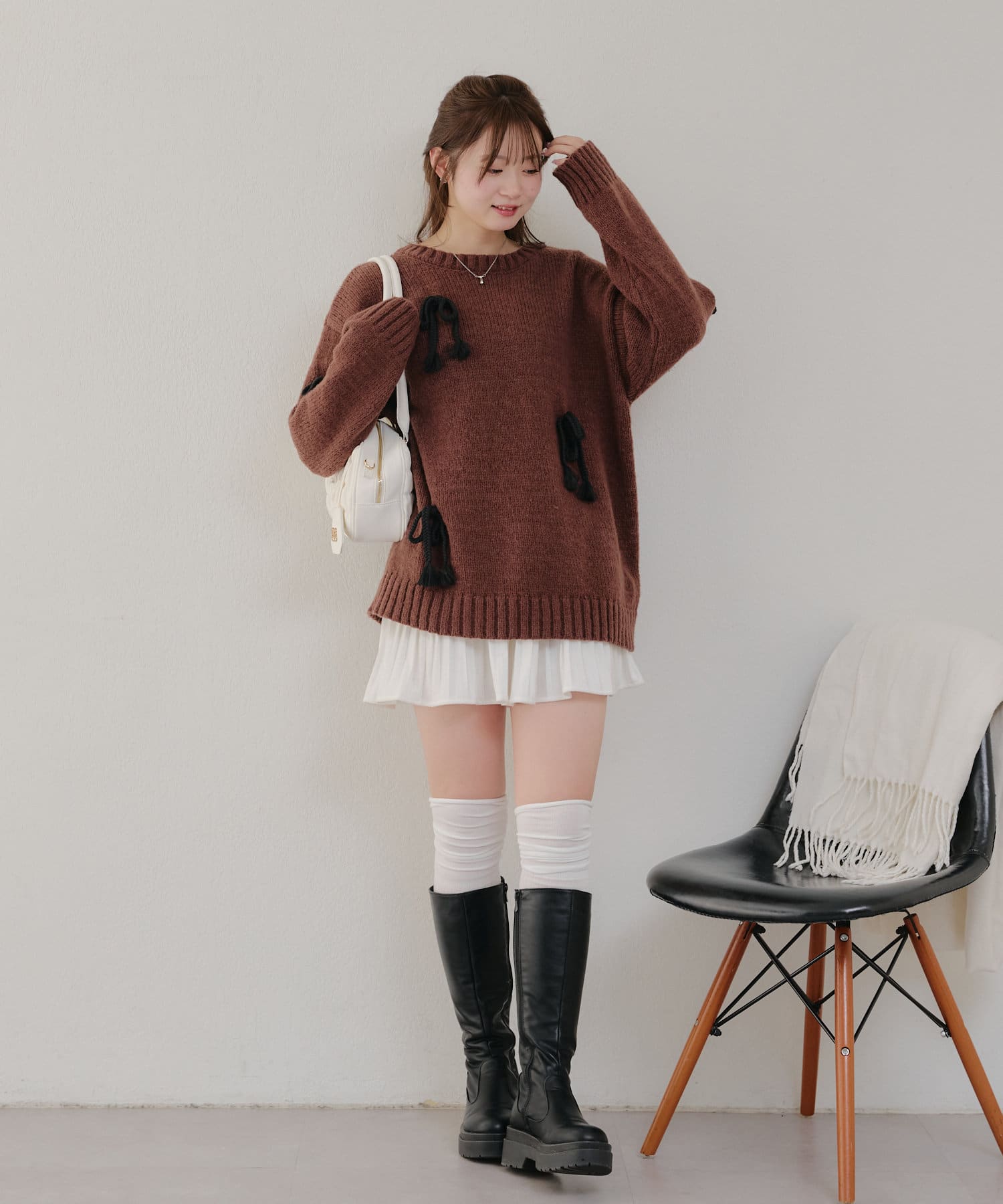 ・シンプルなBIGシルエットニットにリボンを施しました。