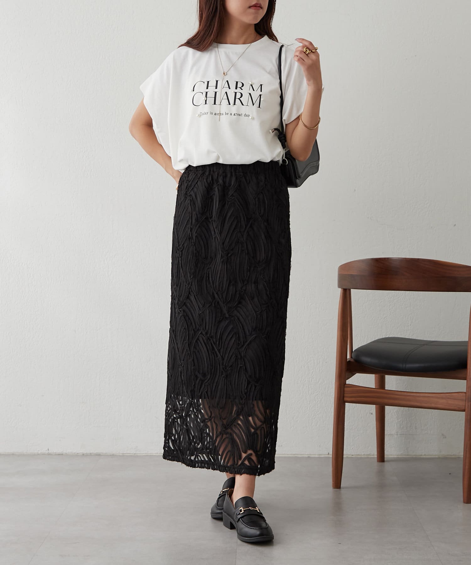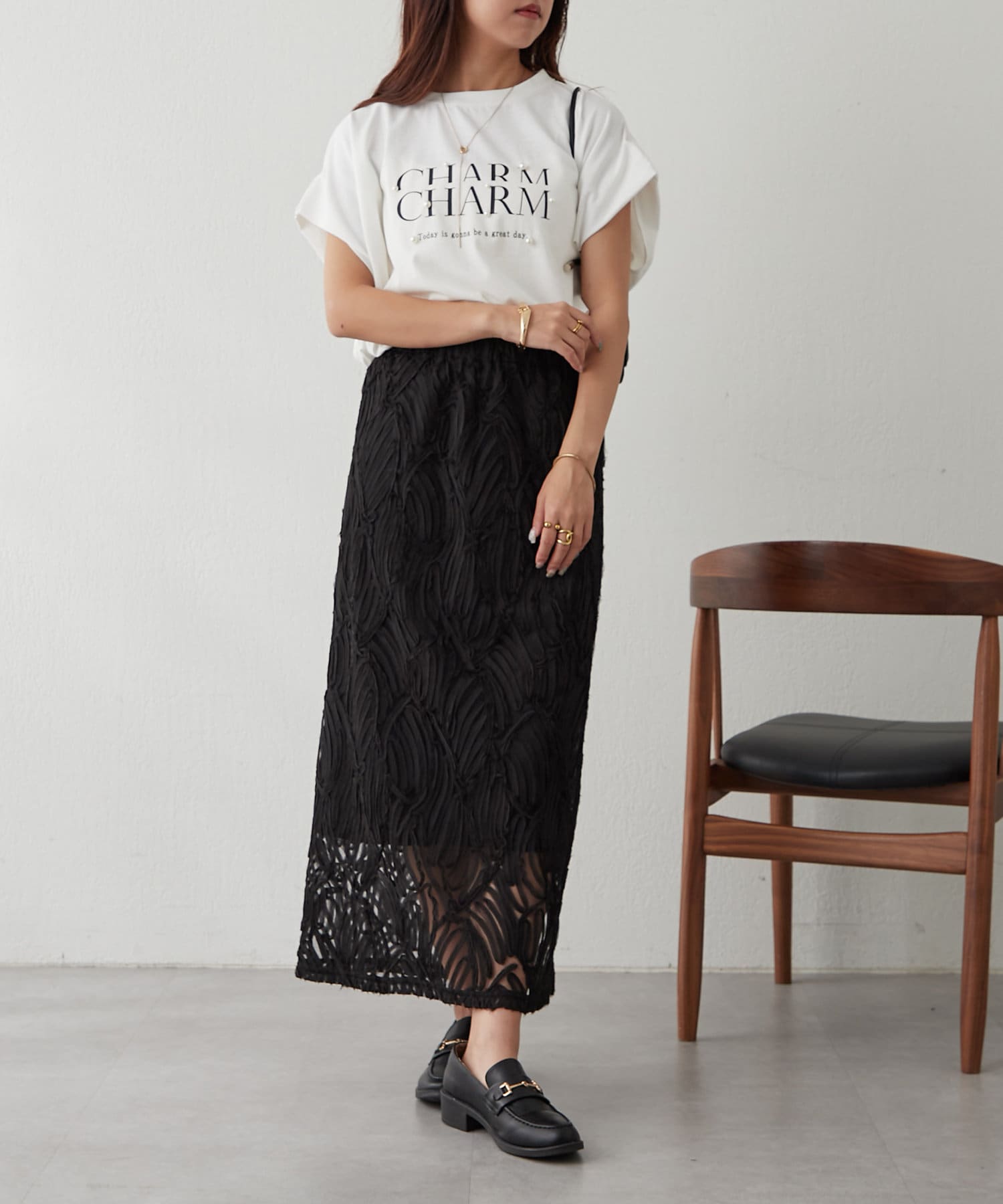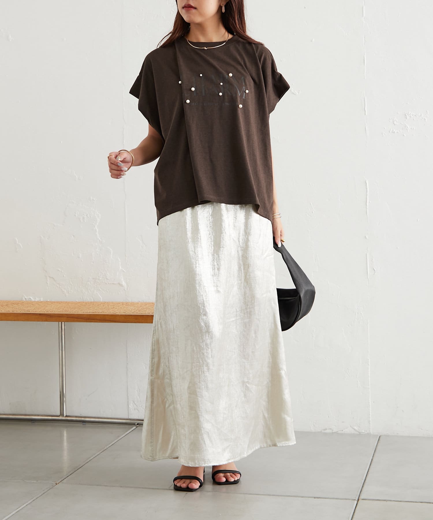 ・サテンのスカートやチュール素材のスカートを合わせればレディライクな印象に