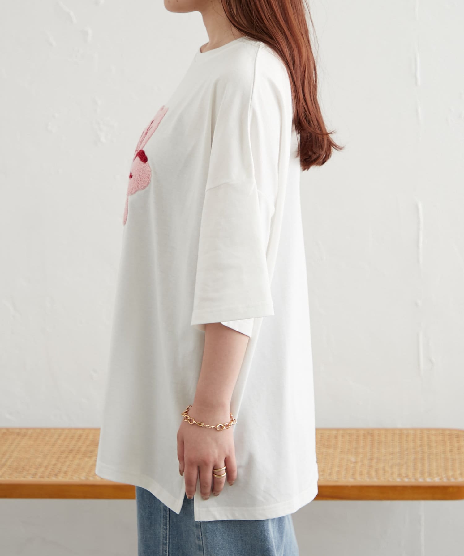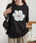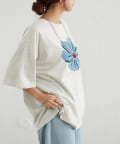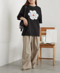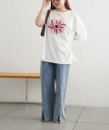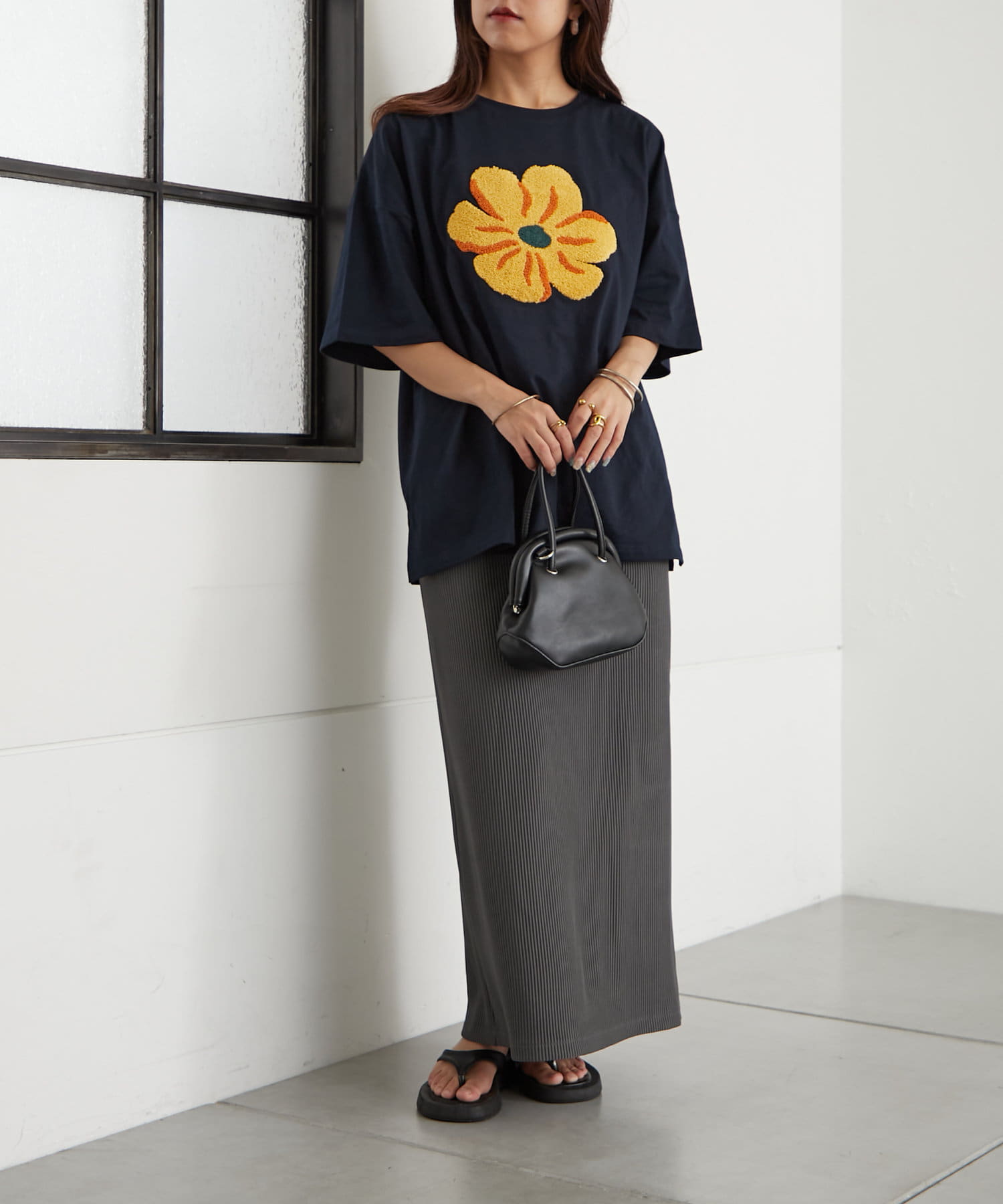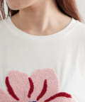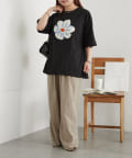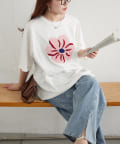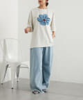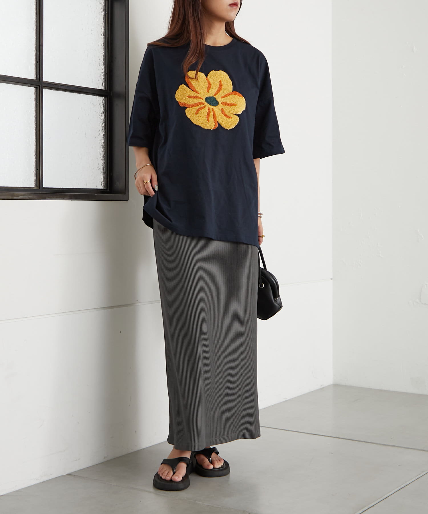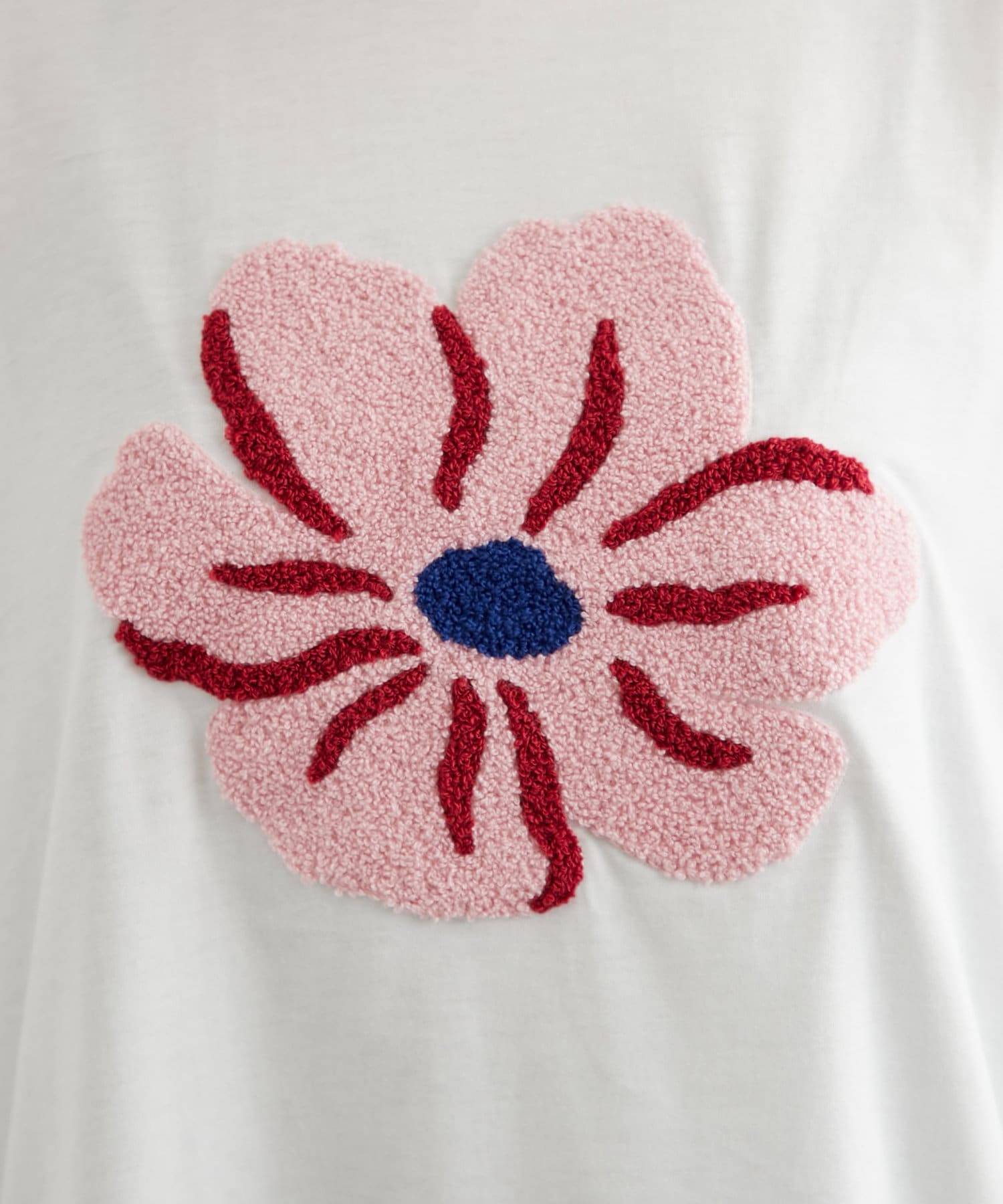 ・フラワーモチーフの立体的なサガラ刺しゅうが目を引くTシャツ。