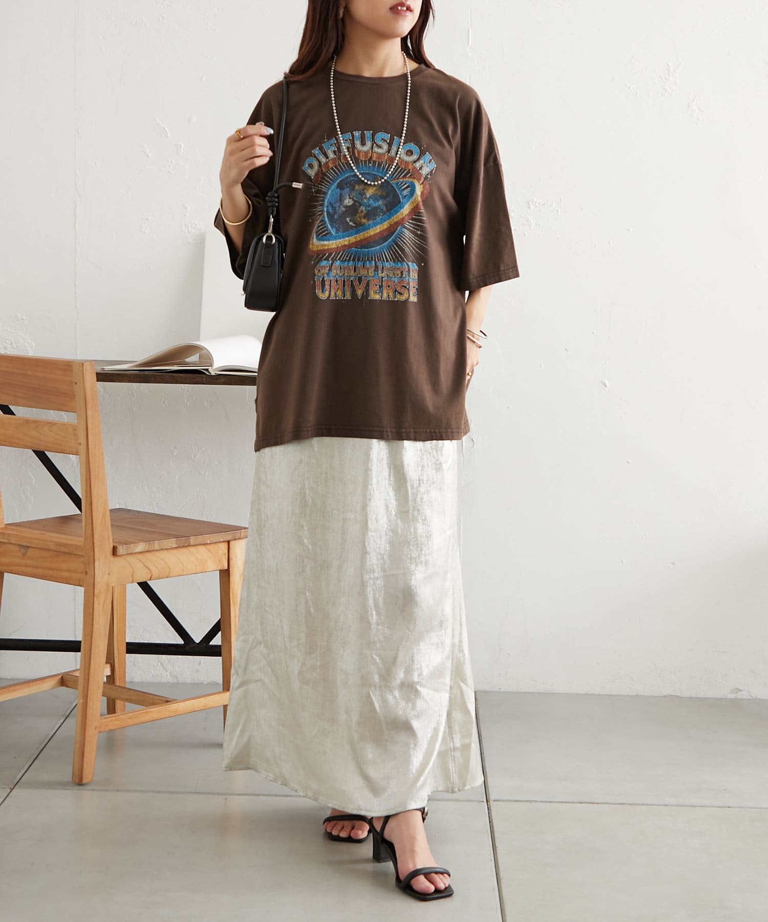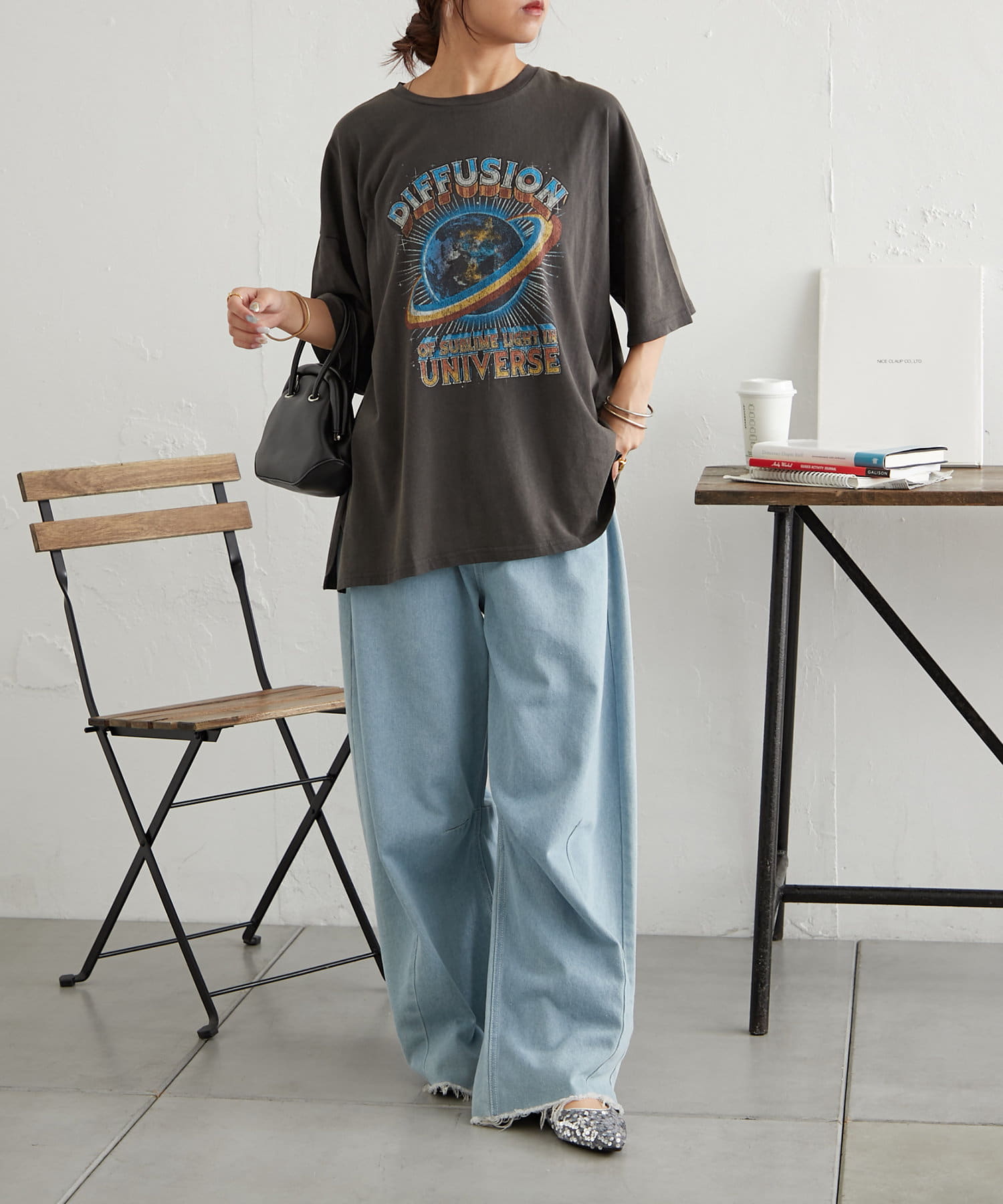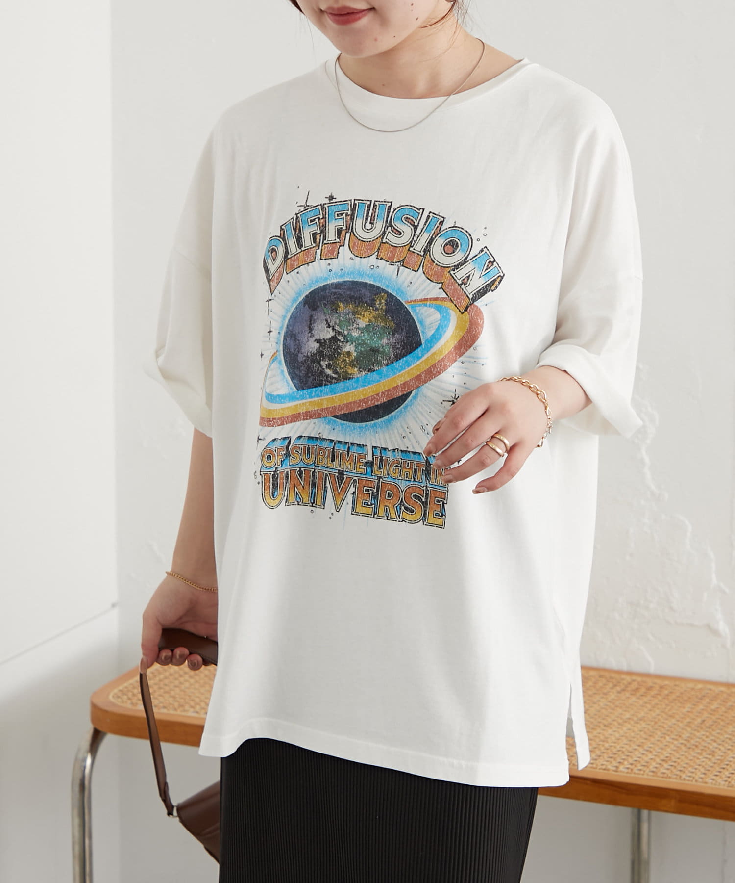 TOP > Remind me and forever > レディース > トップス > Tシャツ/カットソー > パウダー加工EARTH&ロゴT