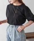 • Remind me and forever(リマインドミーアンドフォーエバー) 【ふんわり袖で、二の腕カバー◎】異素材袖Tシャツ
