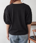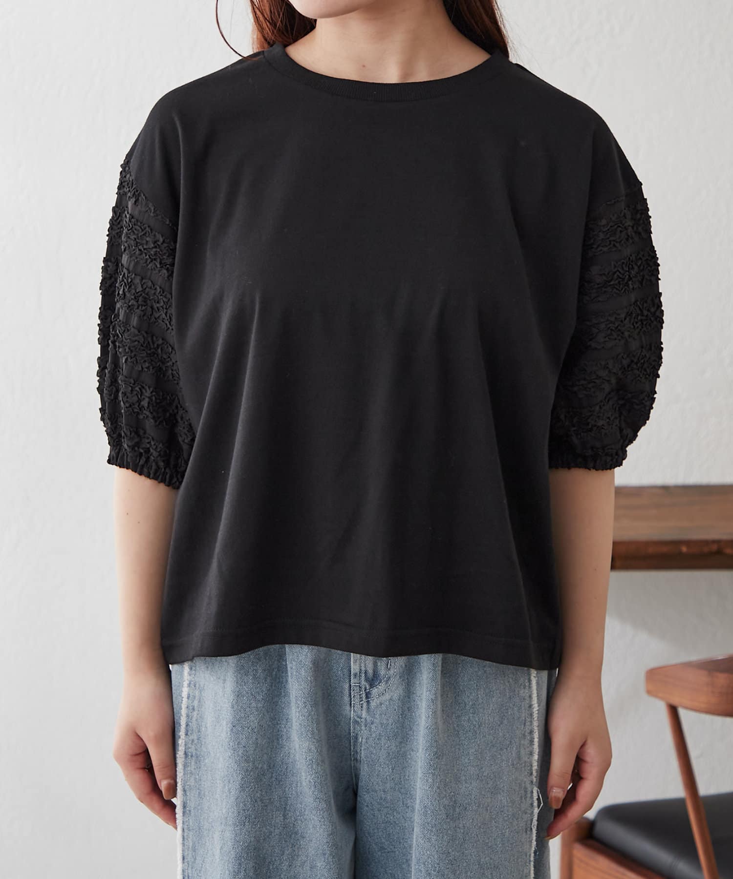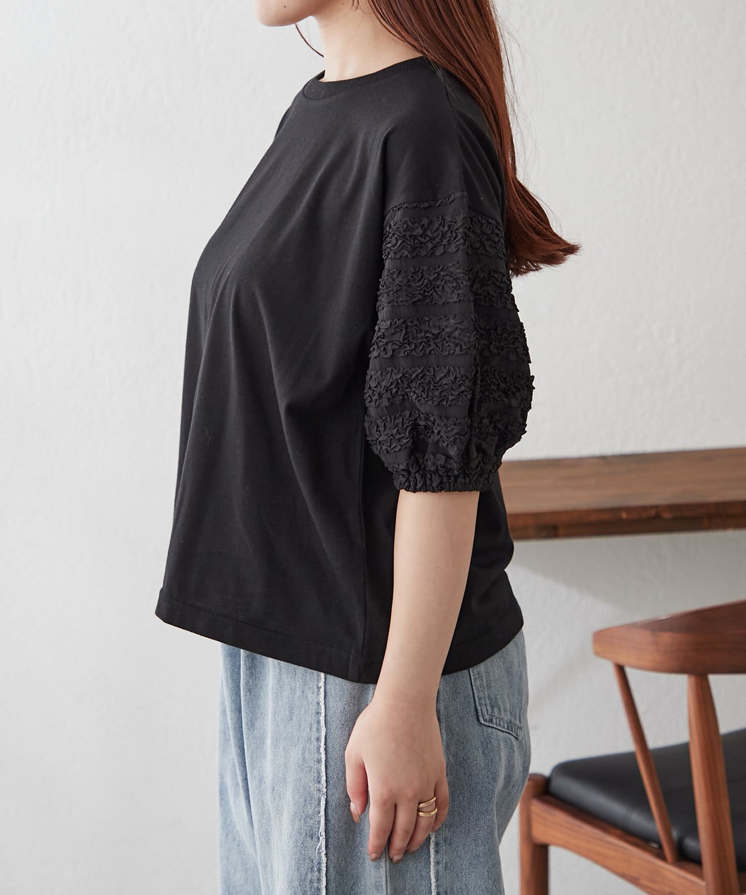Remind me and forever(リマインドミーアンドフォーエバー) 【ふんわり袖で、二の腕カバー◎】異素材袖Tシャツ