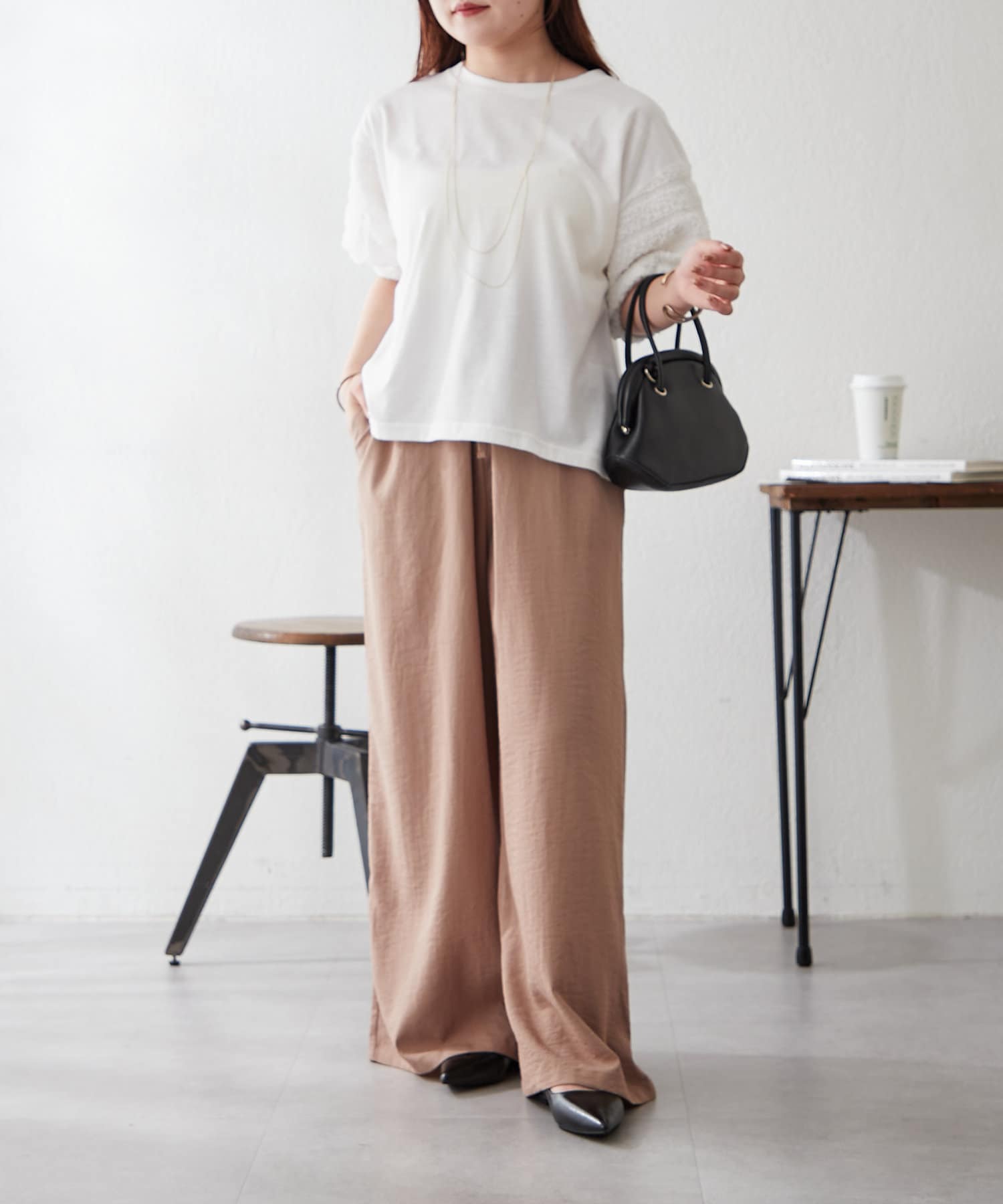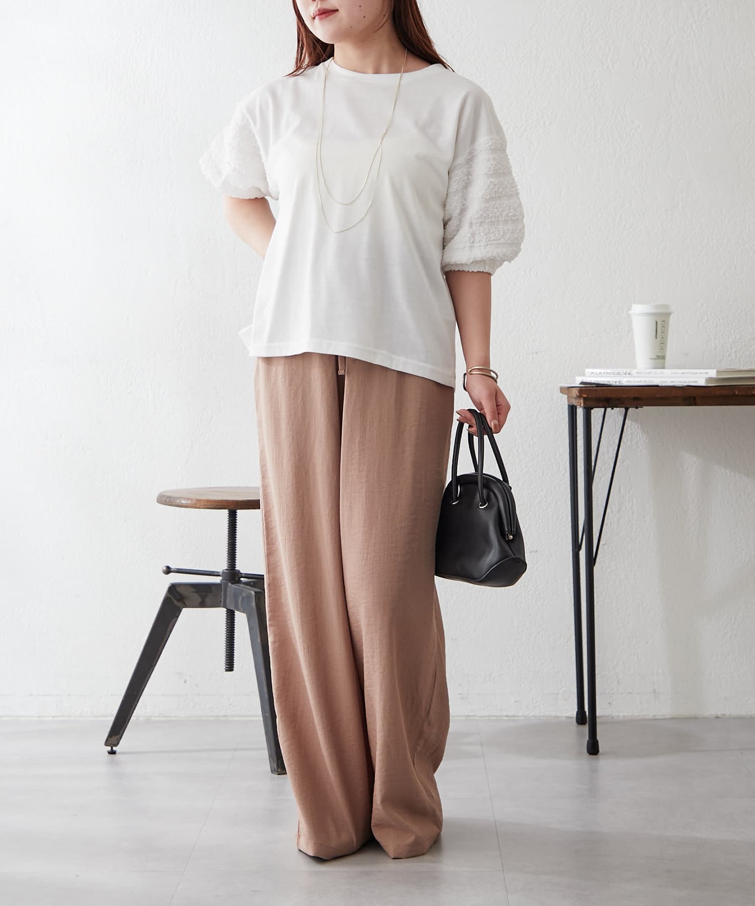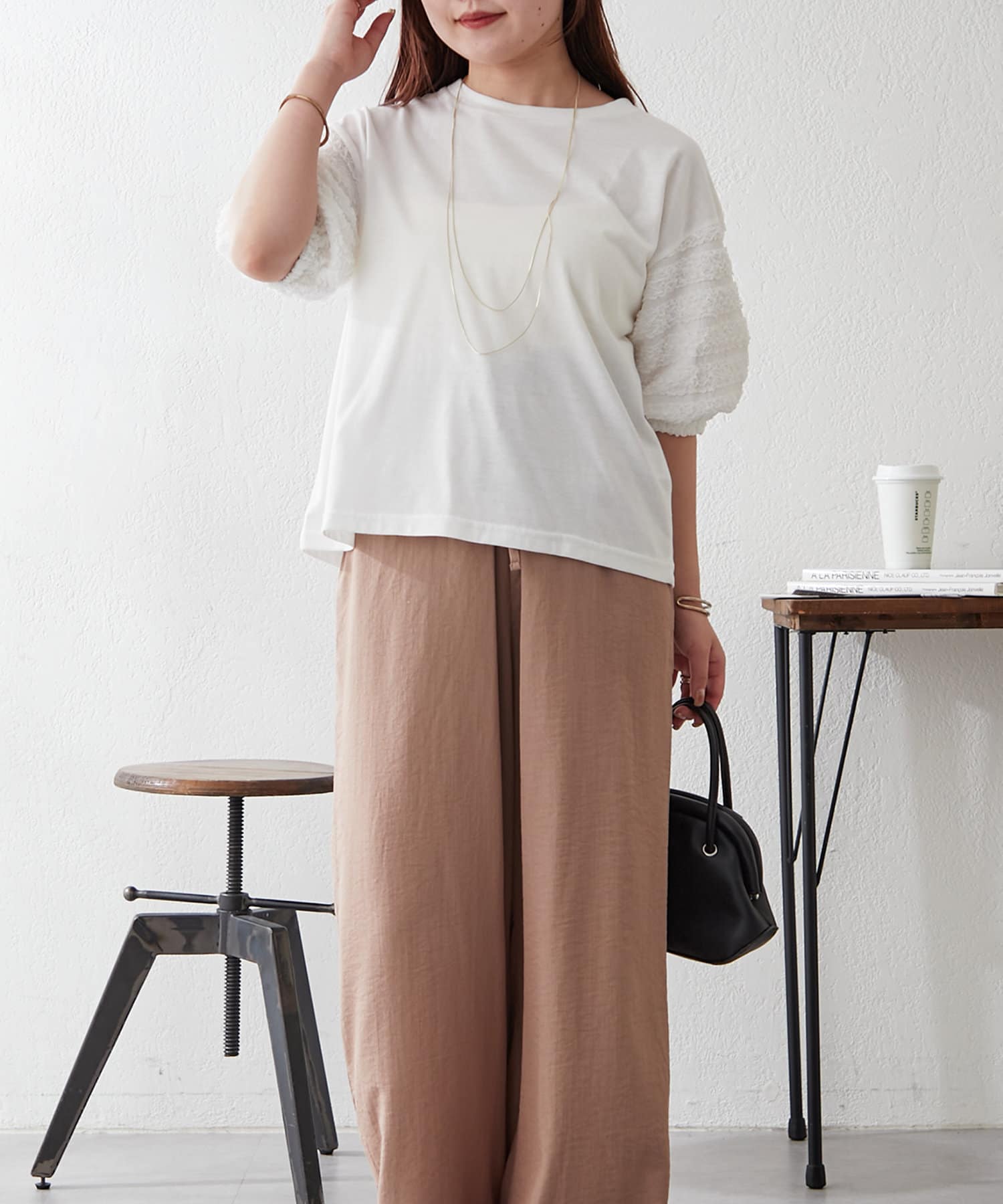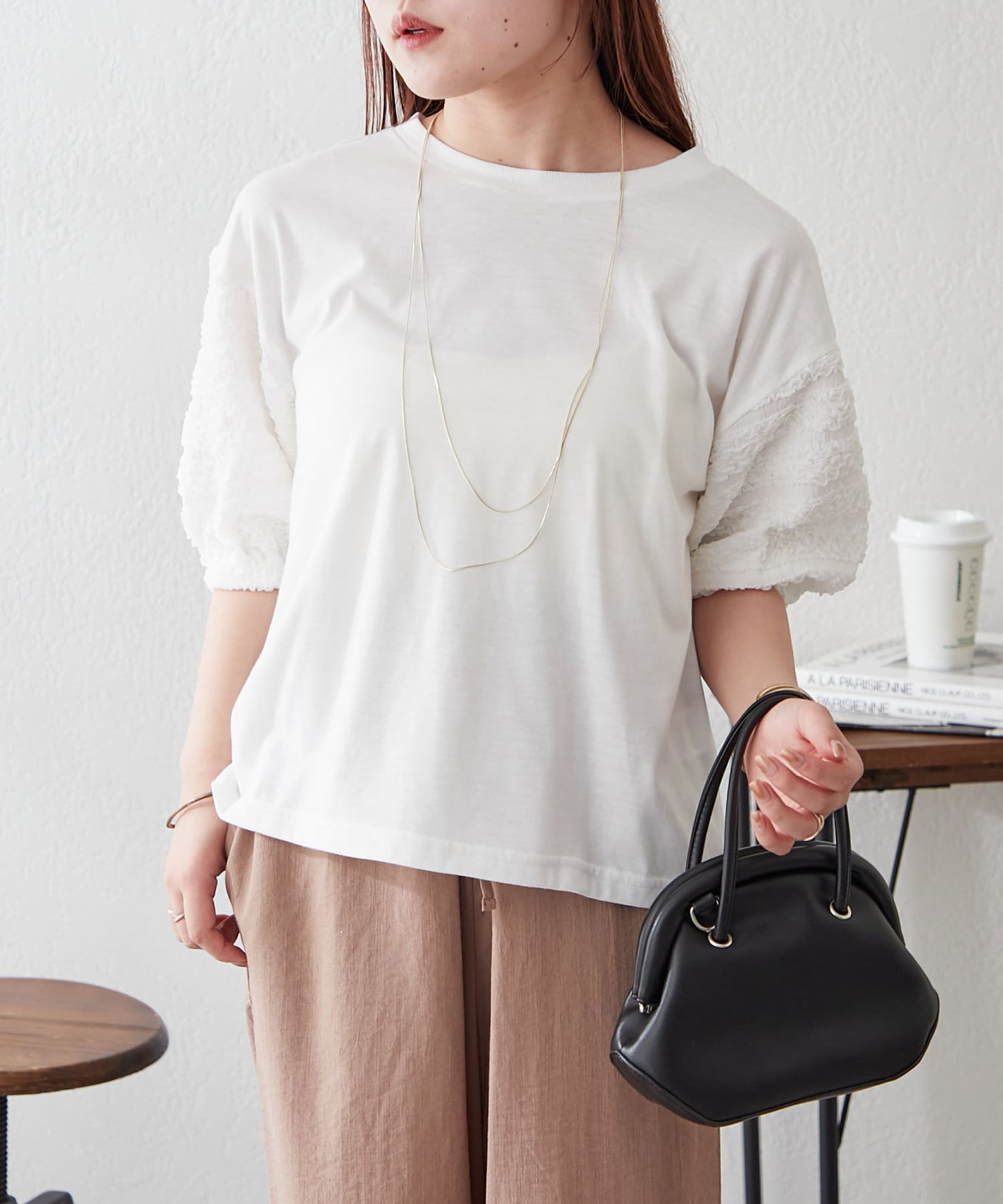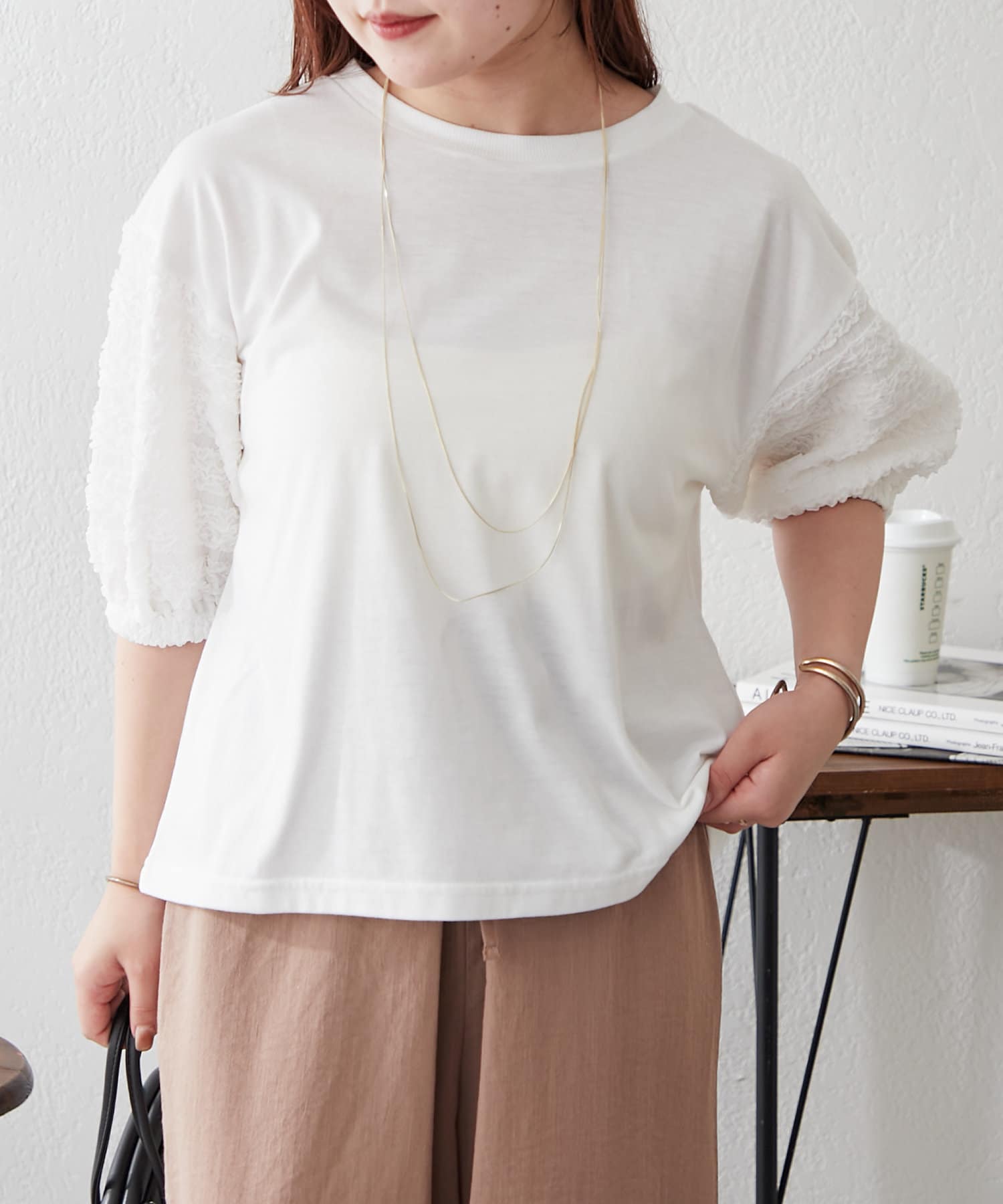 TOP > Remind me and forever > レディース > トップス > Tシャツ/カットソー > 【ふんわり袖で、二の腕カバー◎】異素材袖Tシャツ