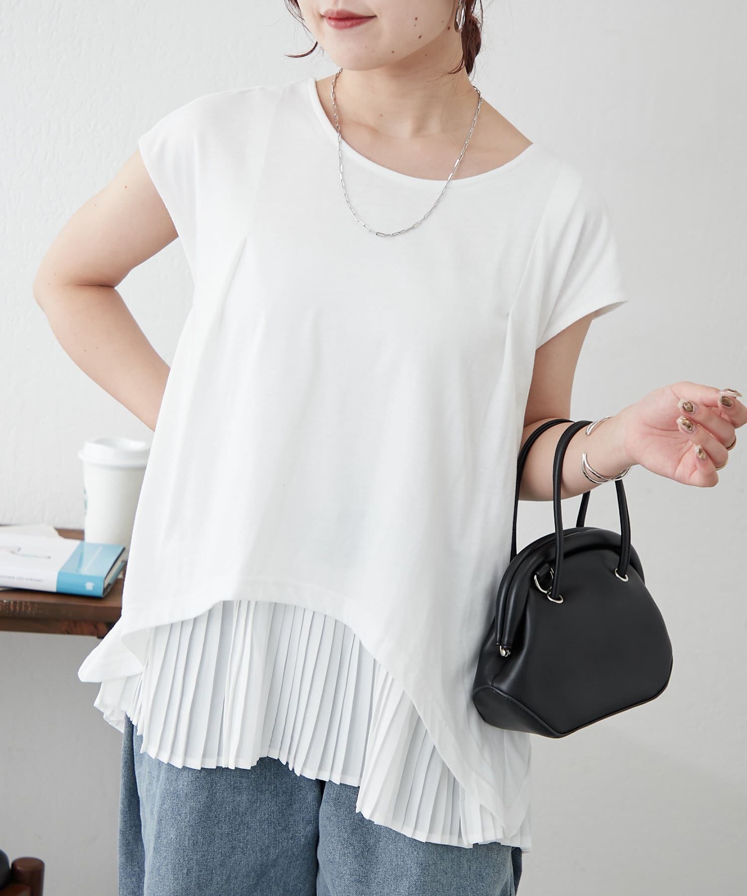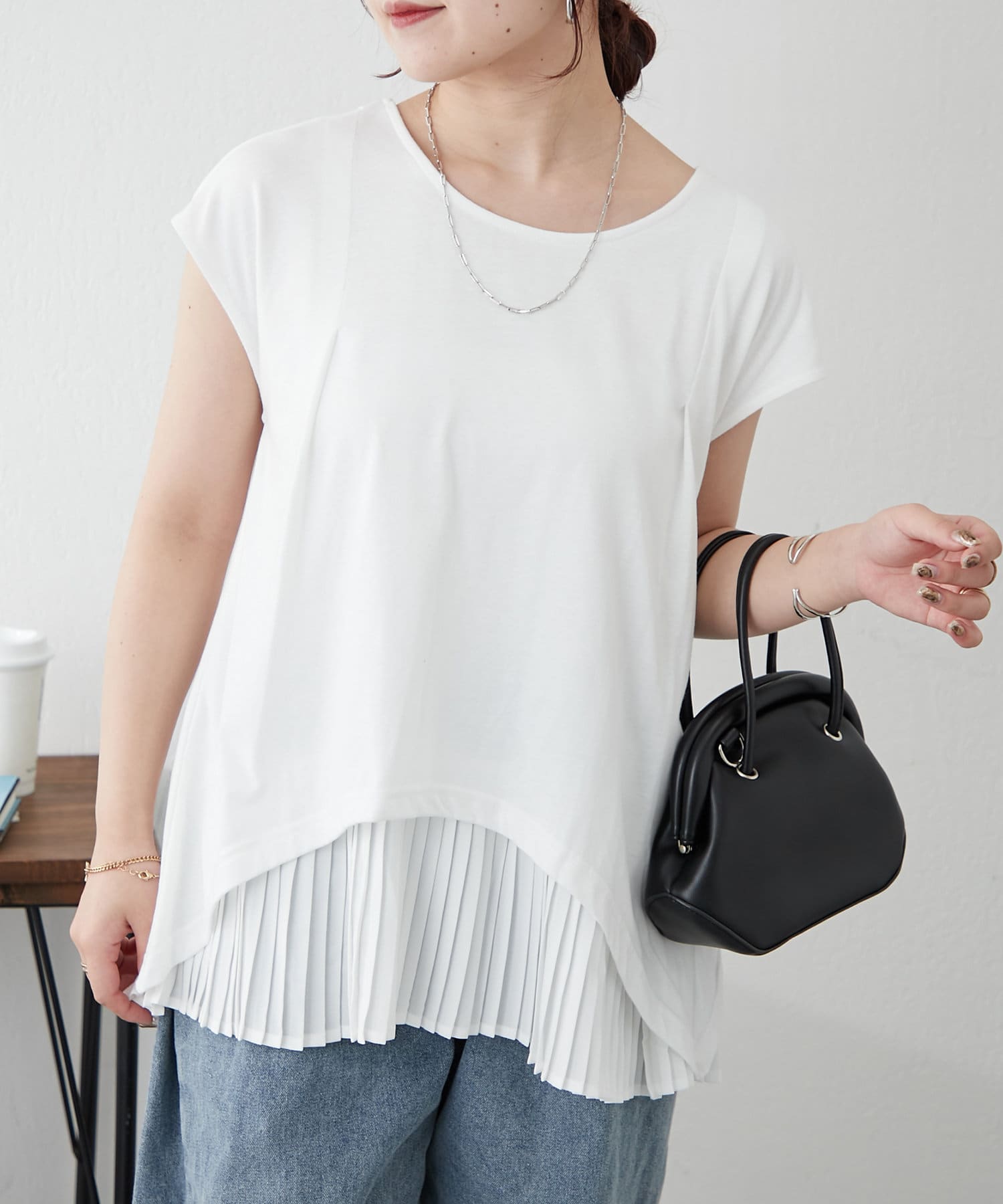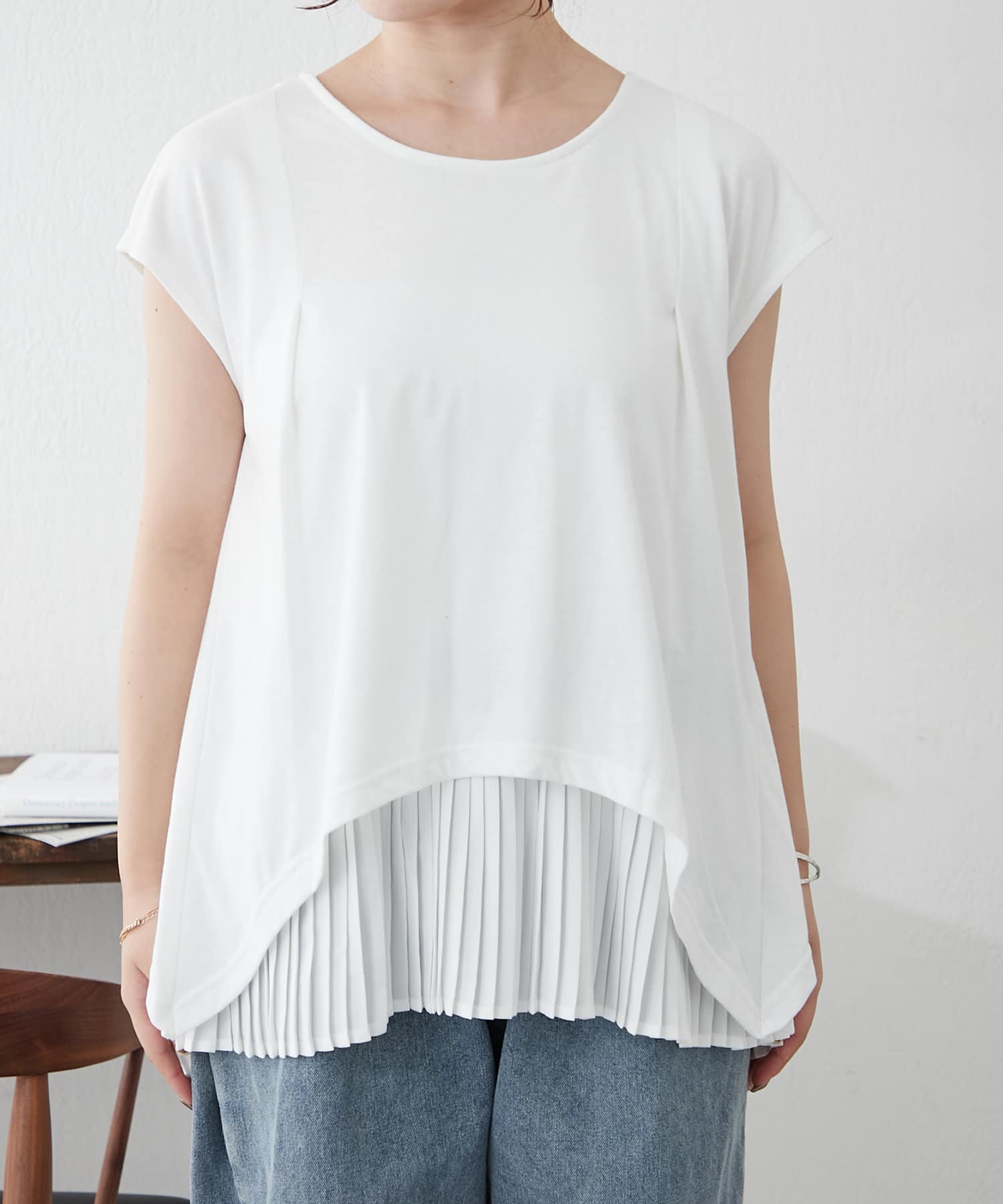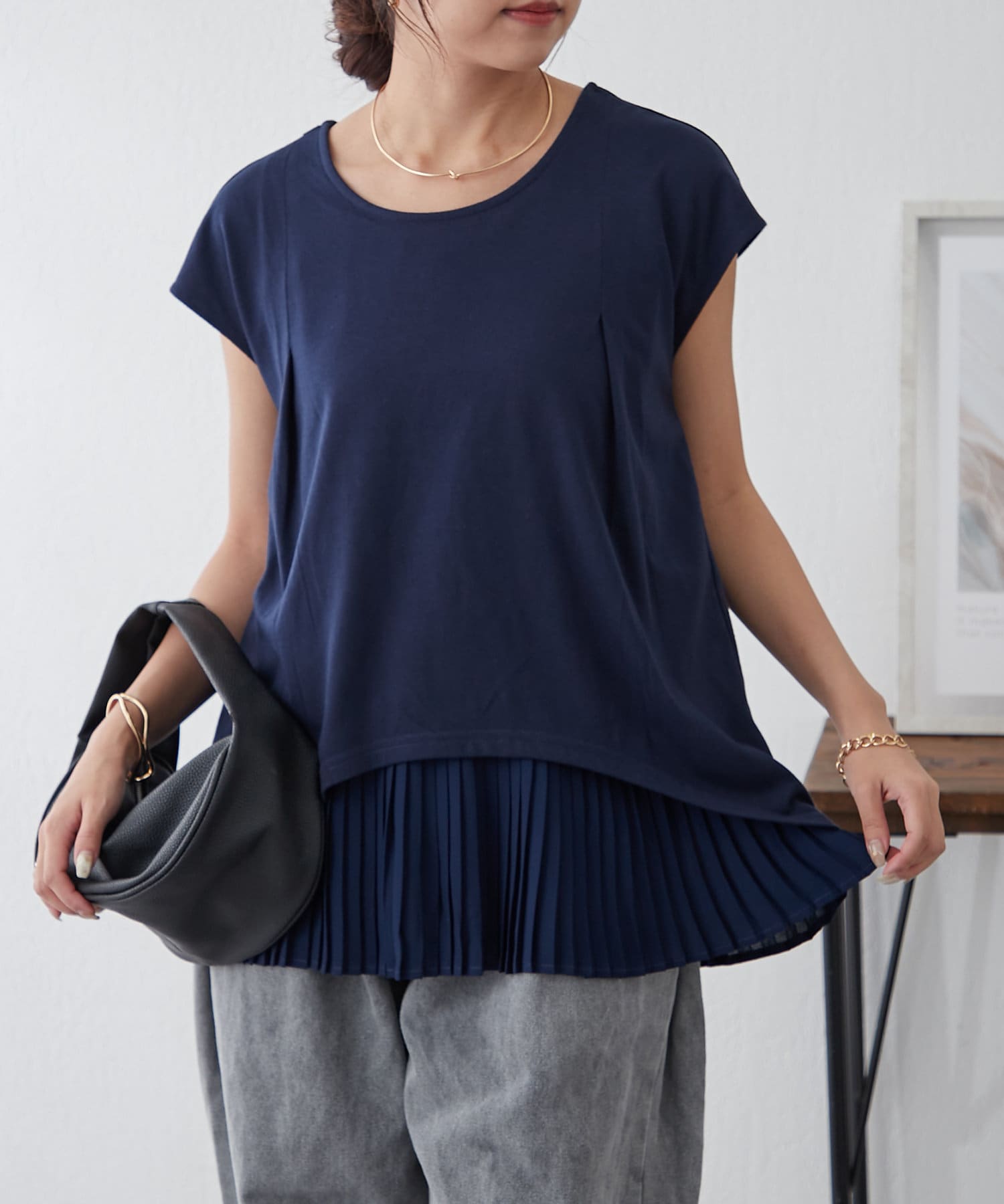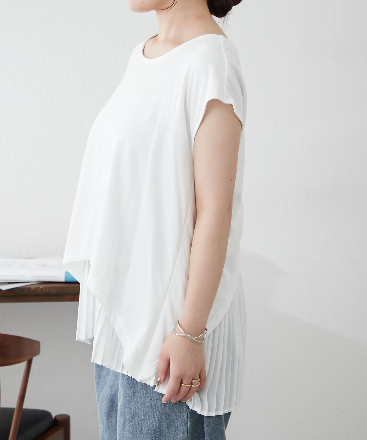 異素材プリーツプルオーバー
