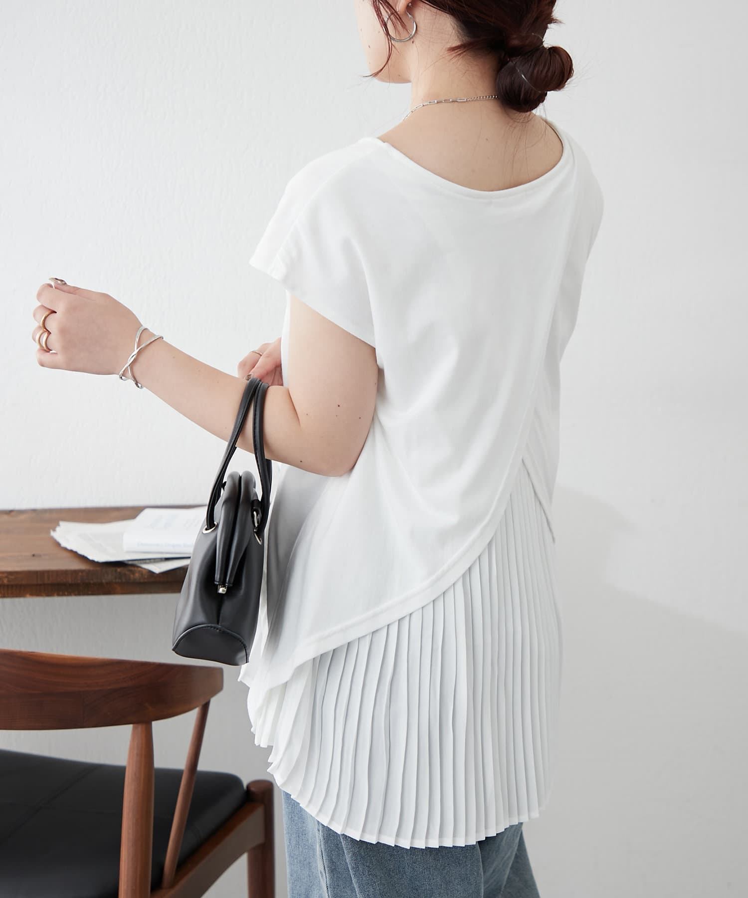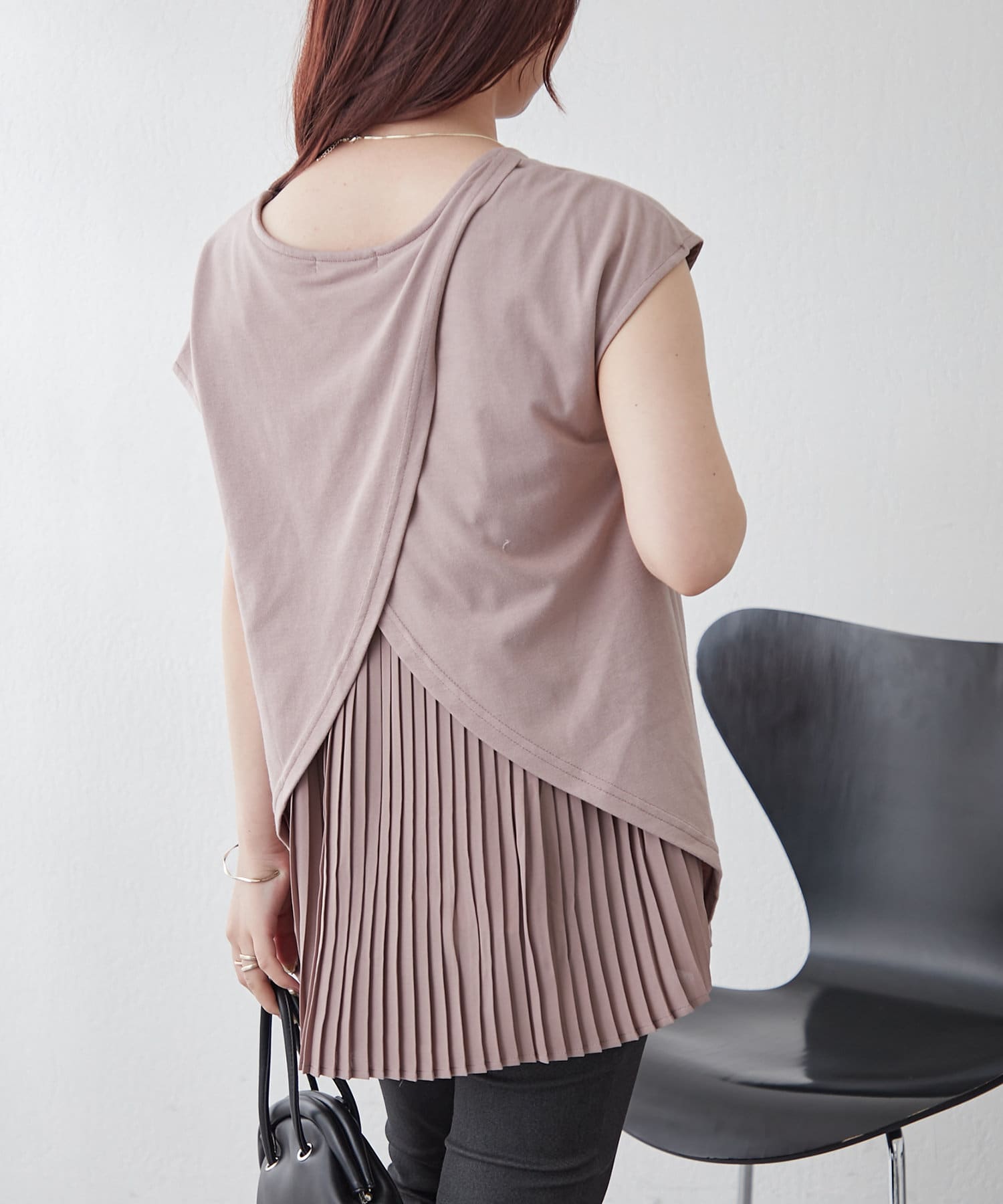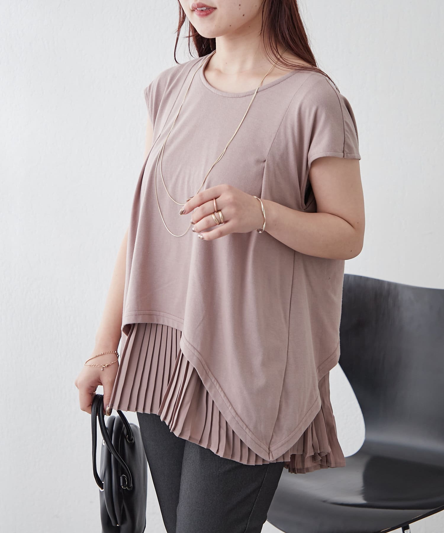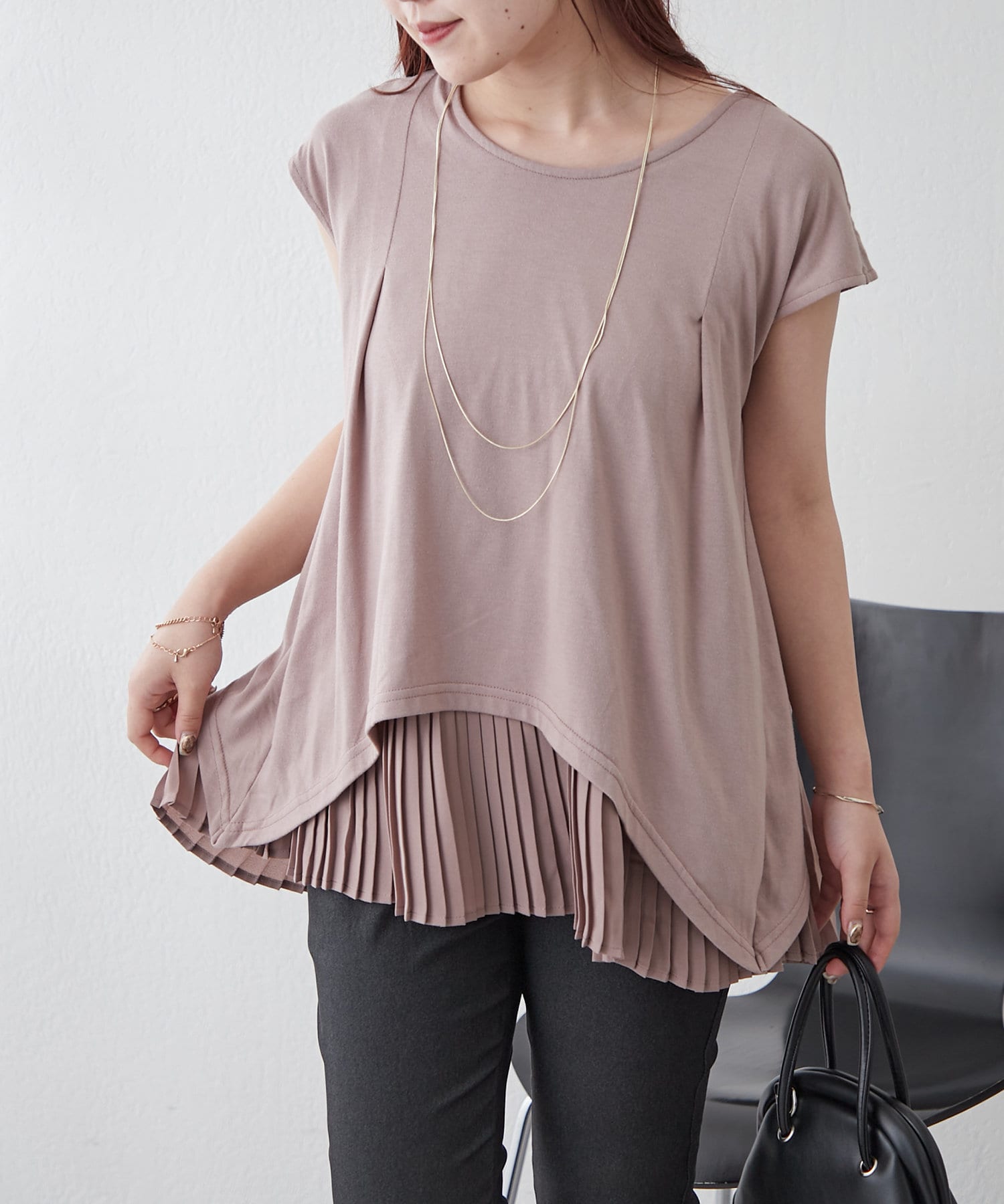 ・プリーツ加工生地のドッキングで華やかなプルオーバー