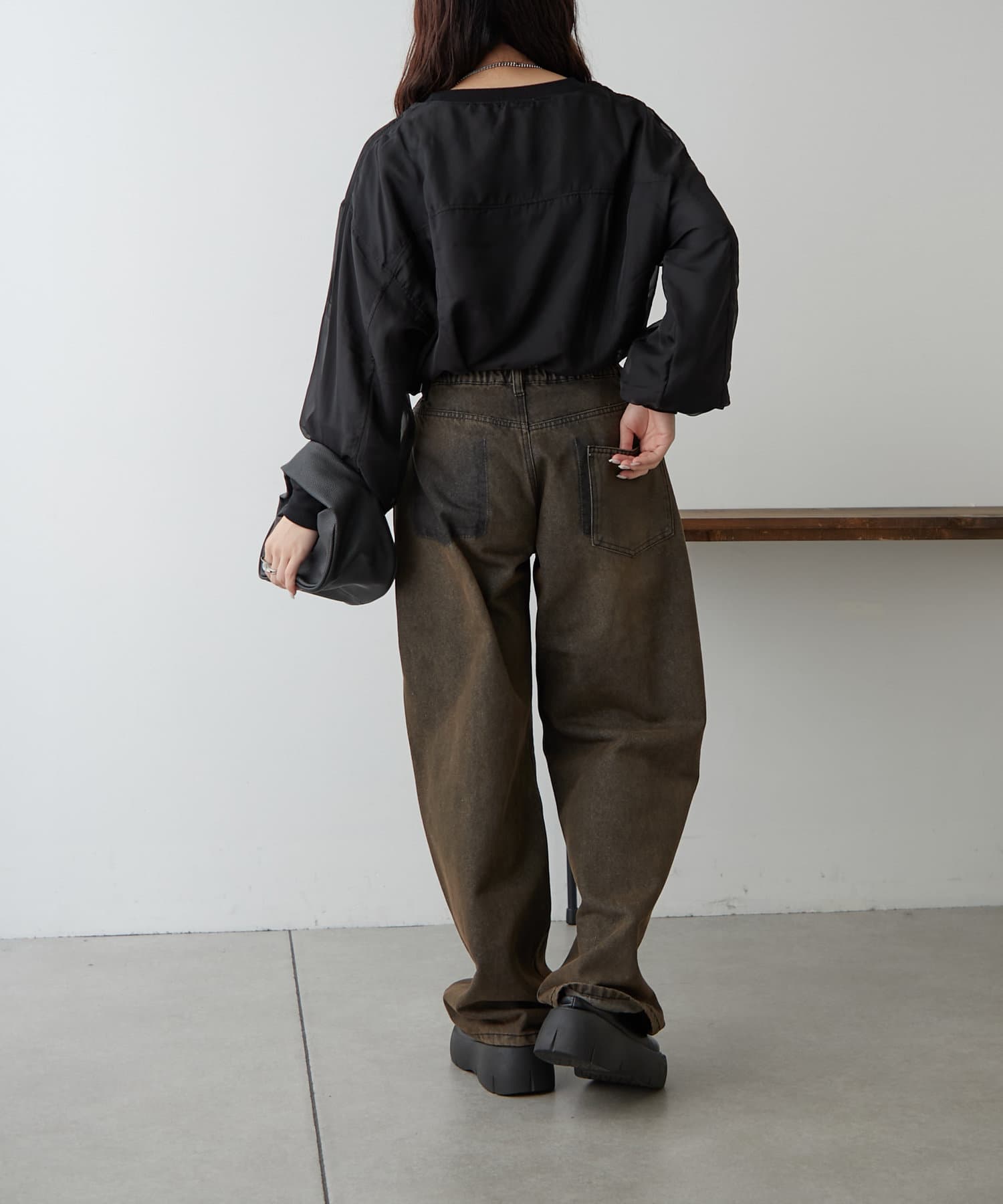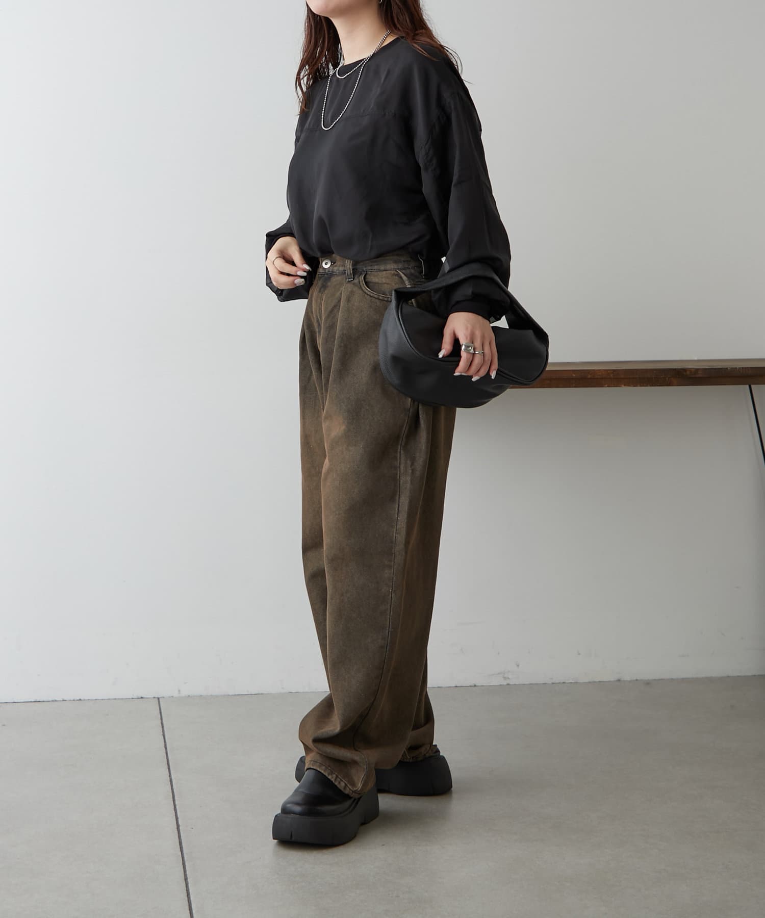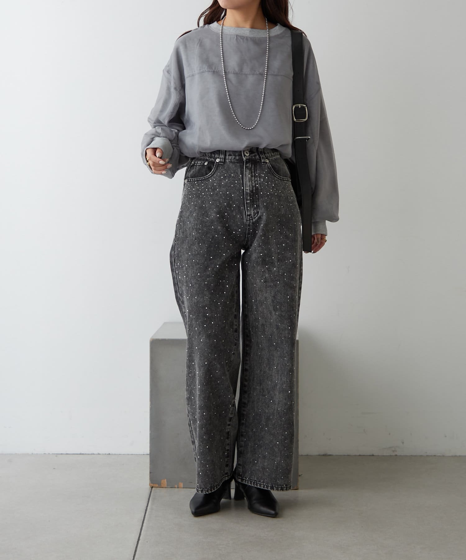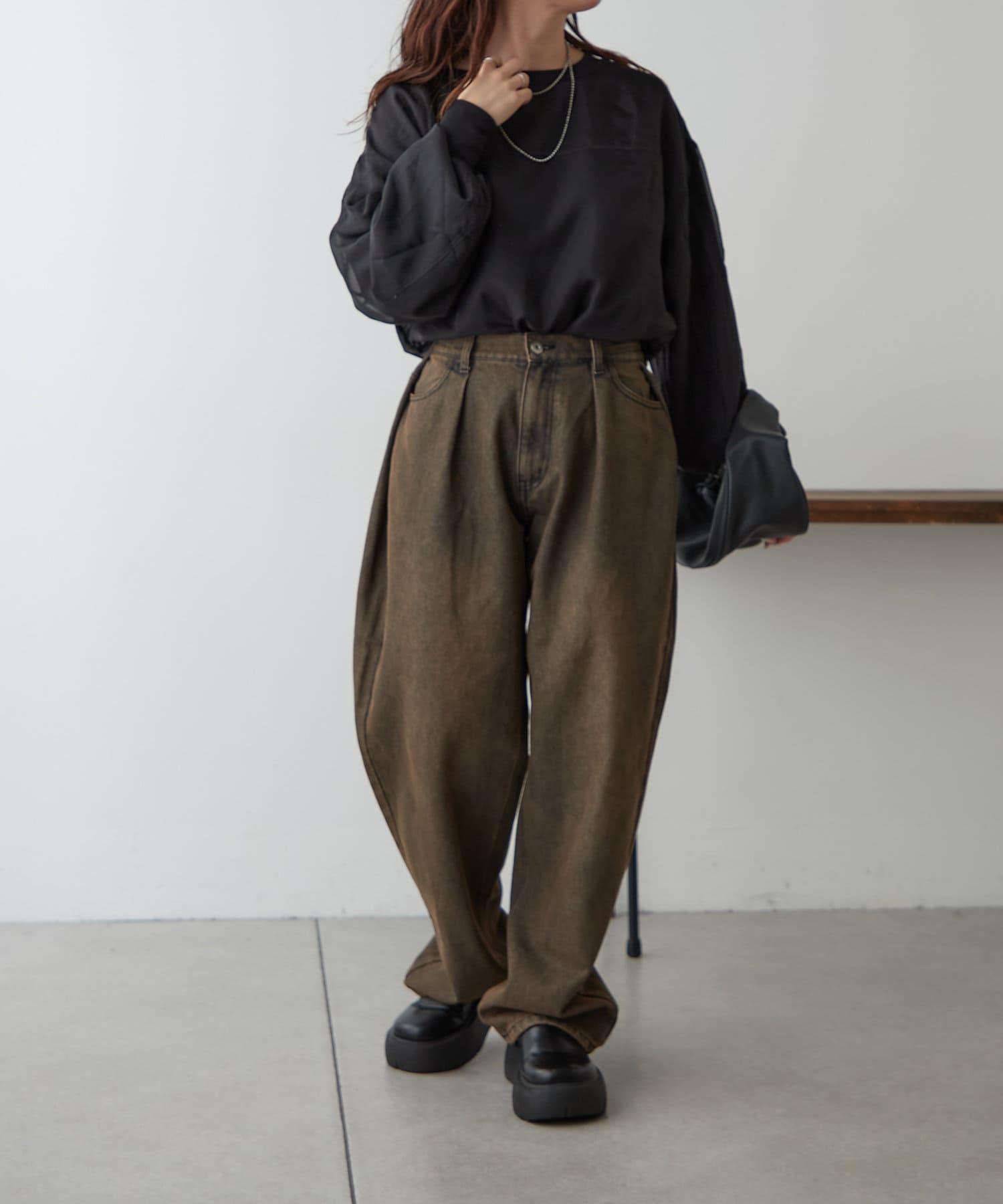 ・中のトップスだけをインしてシアー部分はアウトで着てあげるとこなれた印象に!