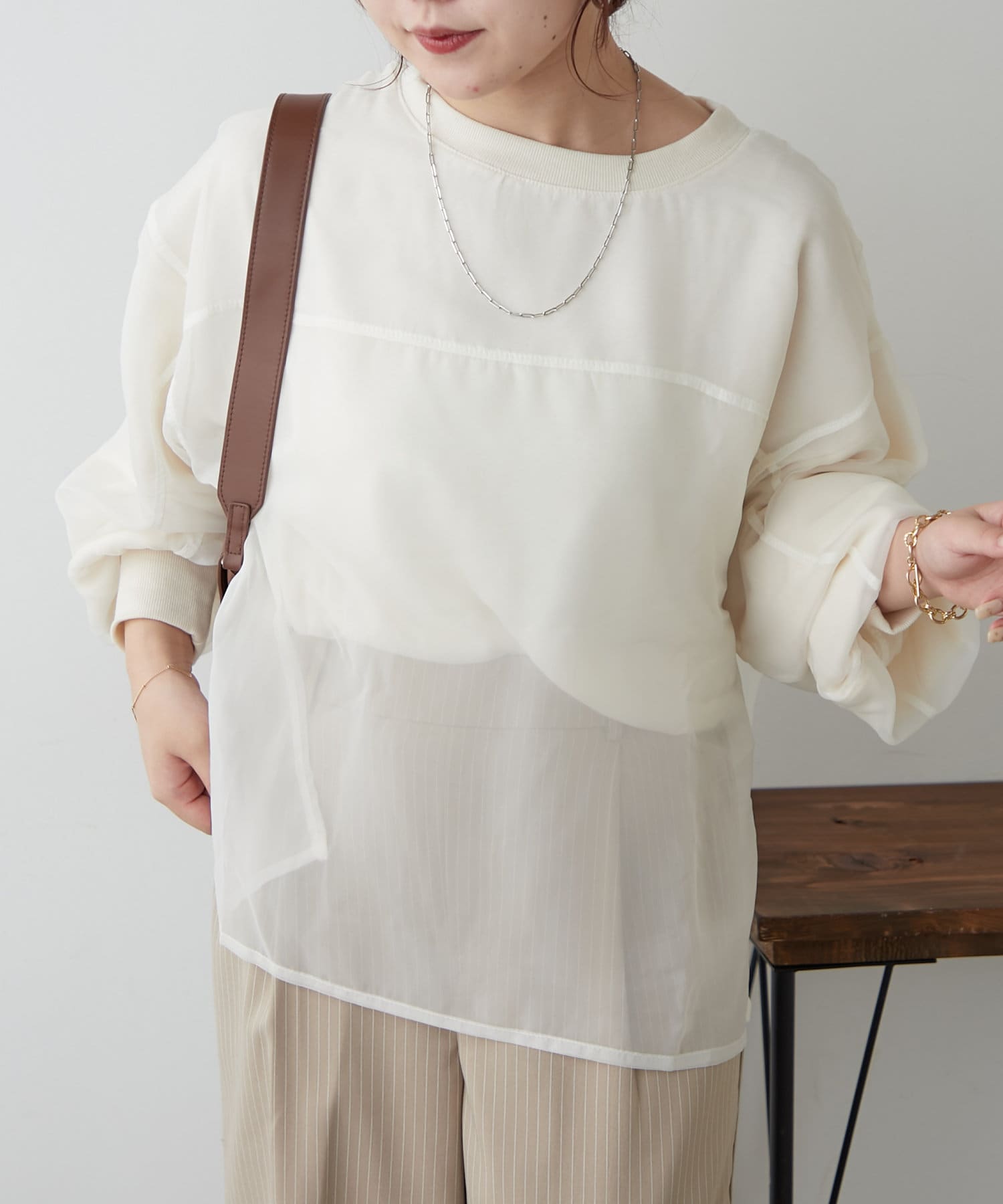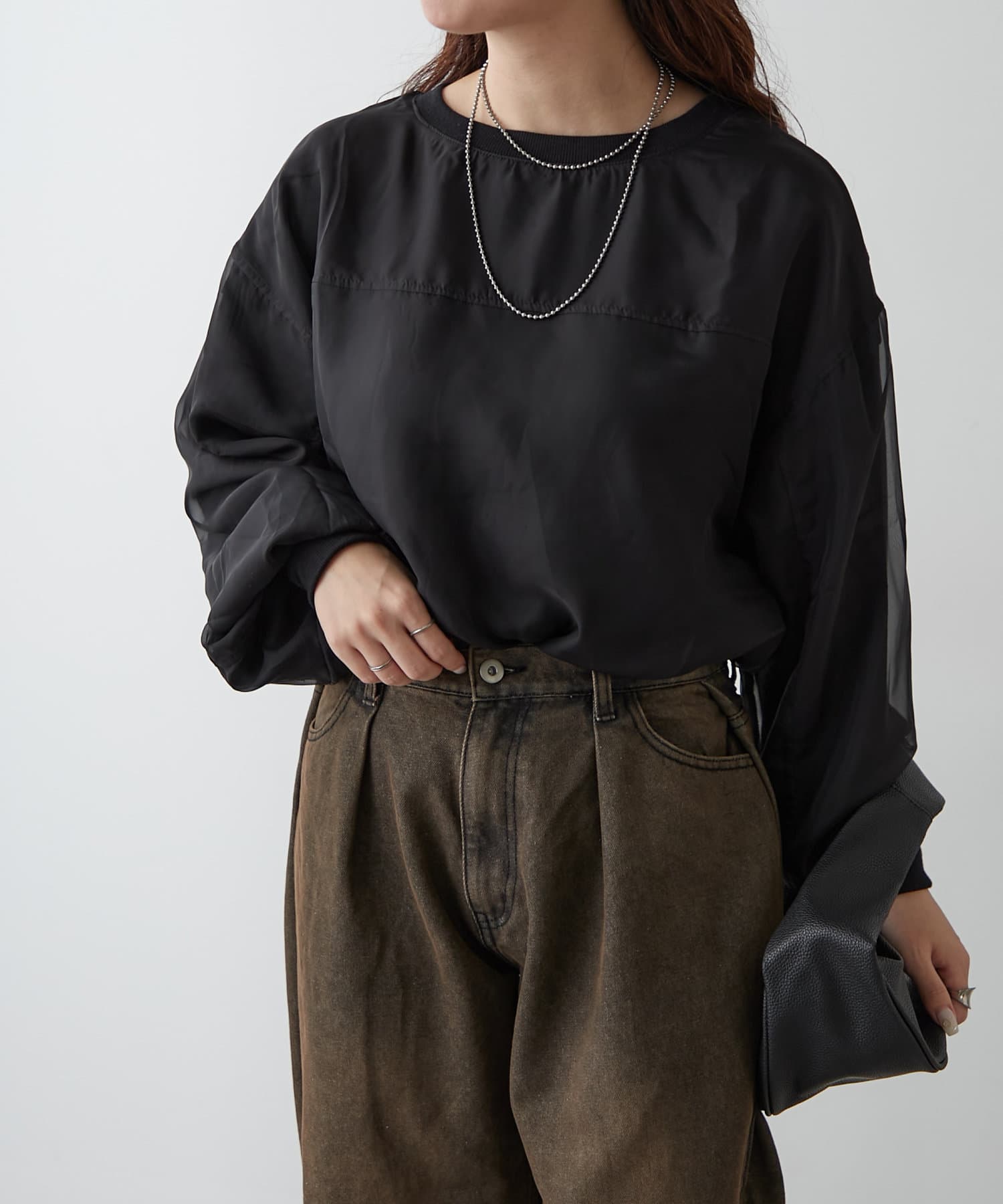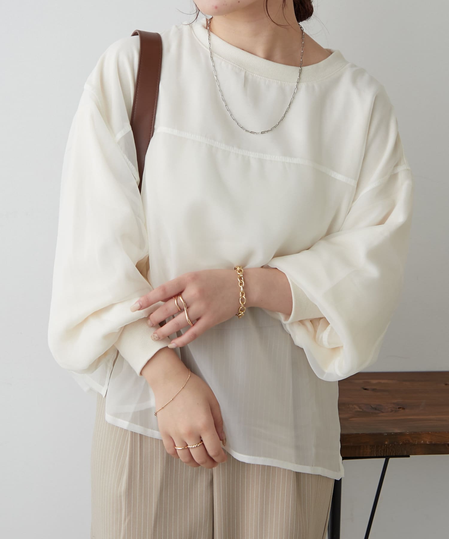 ・シアー素材のレイヤードが秋冬でも重たく見えない嬉しいデザイン!