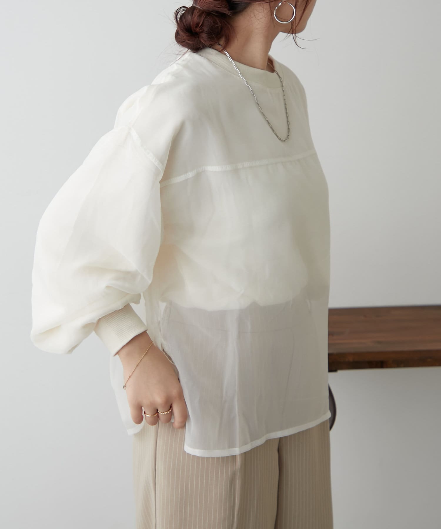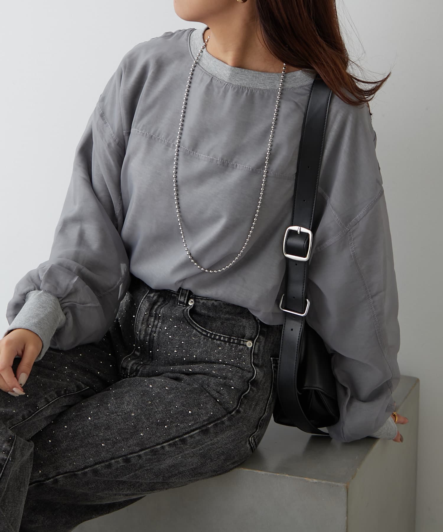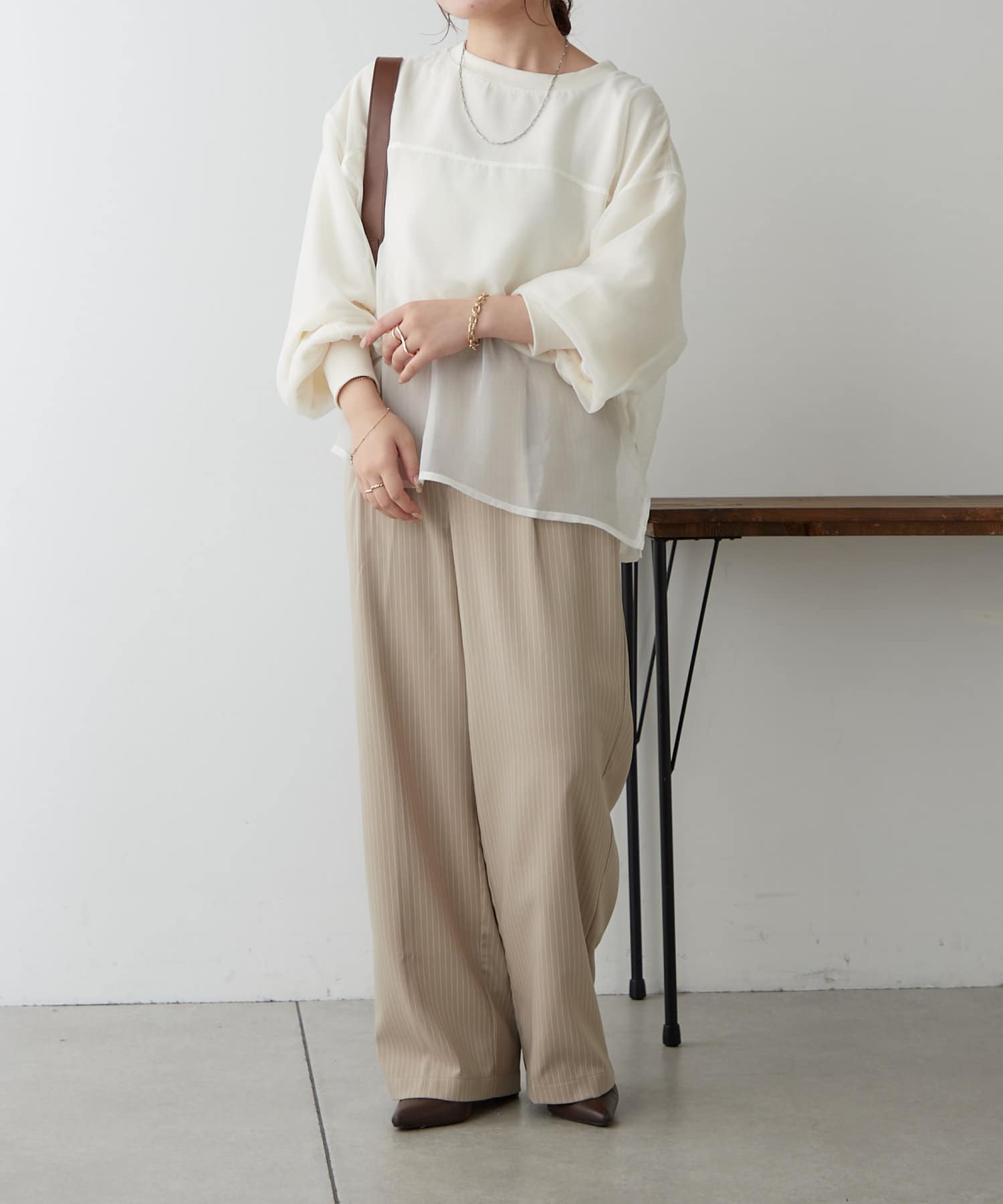 ・シアー素材のレイヤードが秋冬でも重たく見えない嬉しいデザイン!