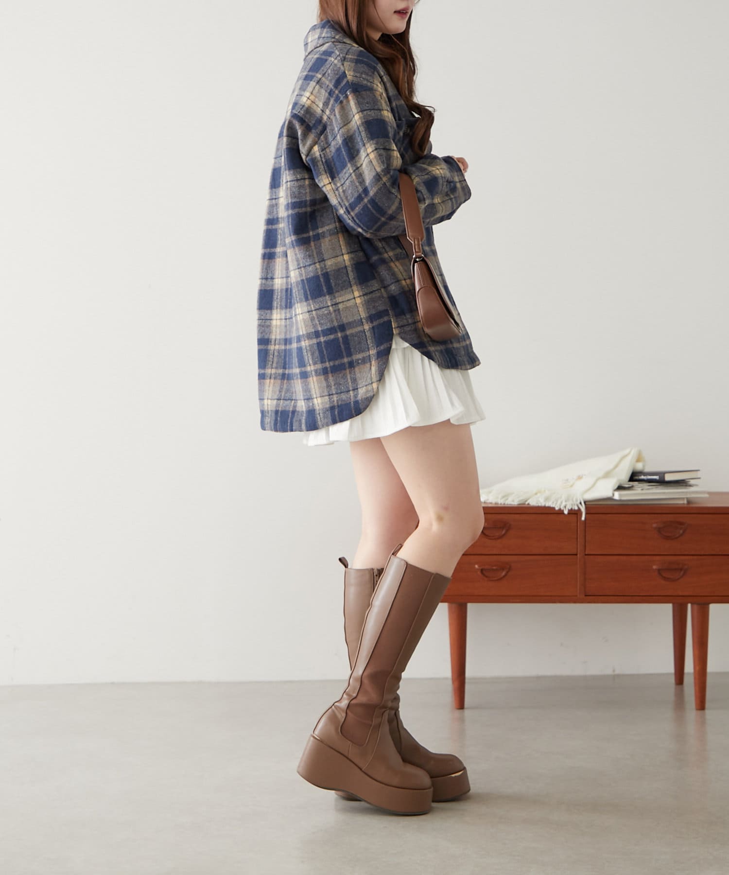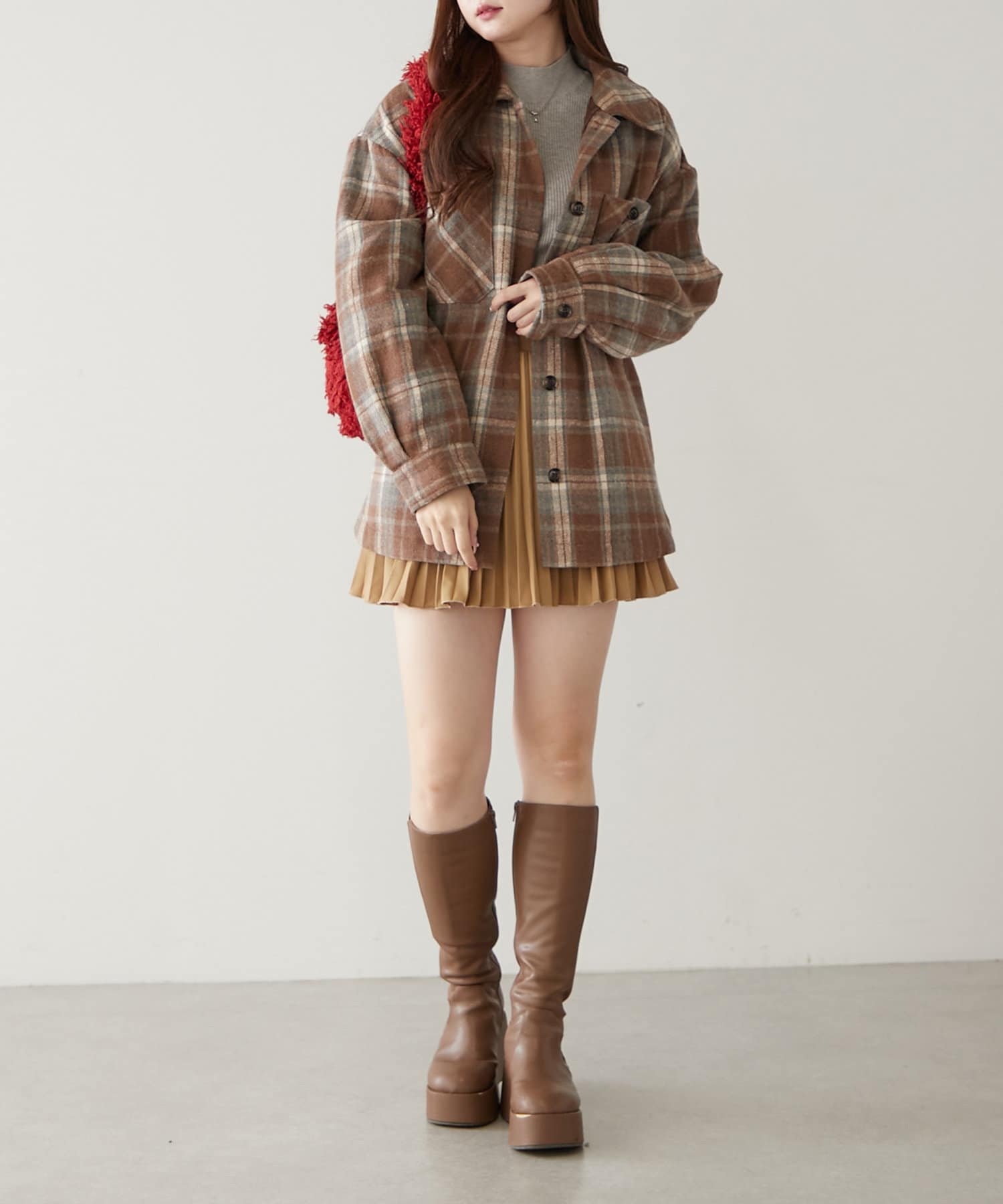 ・ミニボトムとロングブーツで韓国っぽコーデがトレンドライクでオススメ!