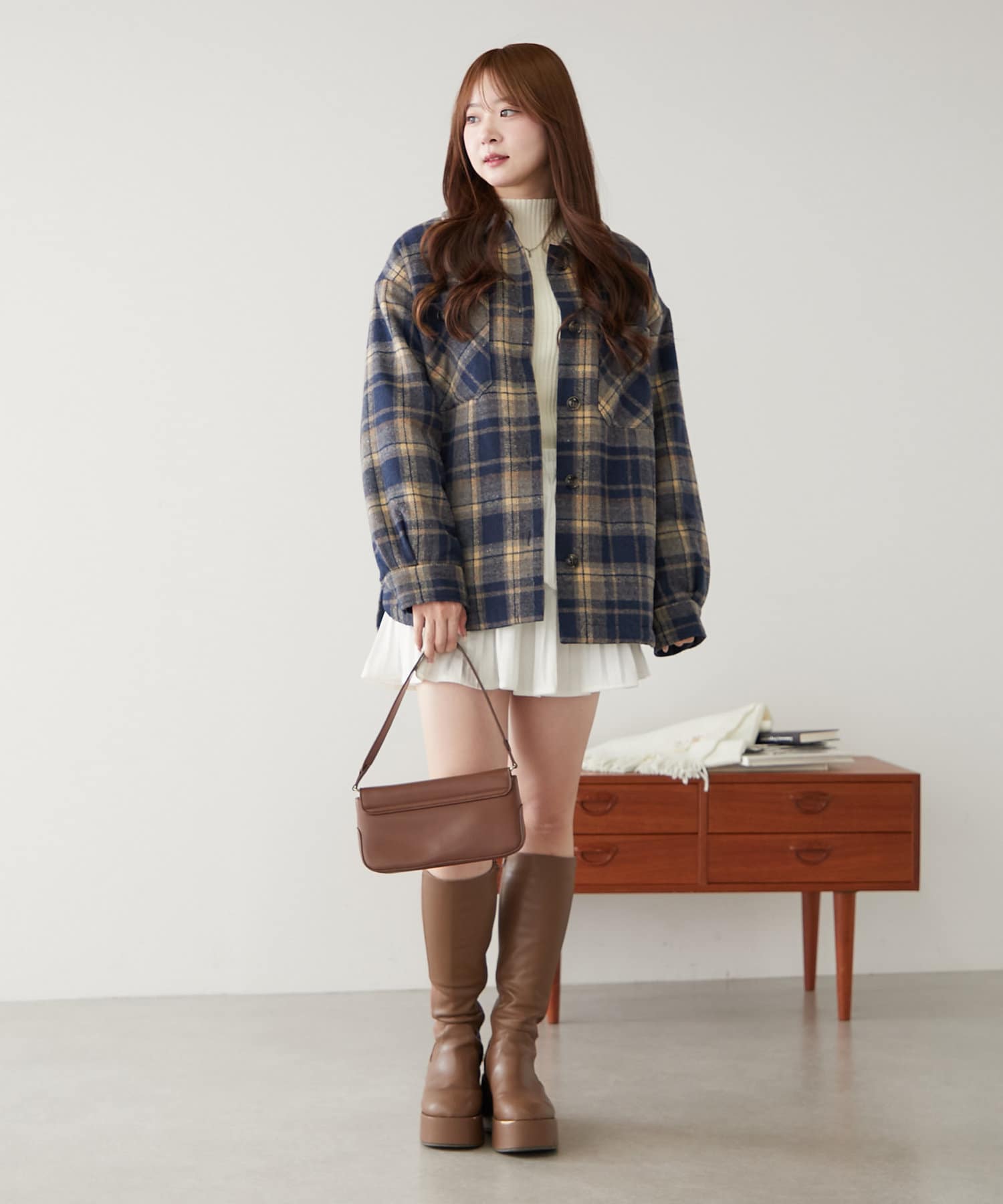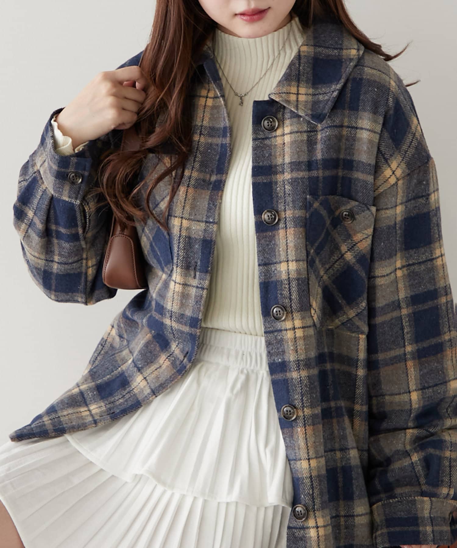 ・秋冬ムード高まるチェック柄のシャツジャケット。